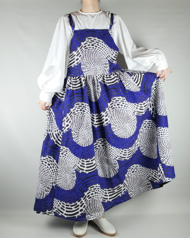 スカート部分にたっぷりとギャザーを使ったサロペットスカートになります。フレアーも入れ、女性らしいシルエットに仕立てました。 シンプルな身頃のシルエットなのでタイトなトップスや大きめのトップスなどでもコーディネートがしやすくなっています。 又、肩紐を2.5cm感覚で3段階まで釦で調節して頂けますのでお好みの長さでお楽しみ下さい。 スカートの裾上げにもご対応しております。 ♢長身様(170cm前後)対応商品♢ こちらの商品は170cm前後のお客様にもご対応商品となっております。 ・申込み方法とサイズ修正方法・ 購入時の備考欄にて「身長◯◯センチ対応」とご記入下さい。ご身長を参考に肩紐の釦位置をつけ直して肩ヒモを伸ばさせて頂きます。 Size F(M.L共通) 身幅・102cm 身頃丈(前身頃)・27cm スカート丈・88cm 写真モデル身長160cm ※ なるべく実物に近い色で撮影し表示しております。しかし、商品画像の画面上の色はお使いのパソコン環境により、実物とは若干異なる場合があります。ご理解の上、ご注文下さいませ。尚、上記事由での返品・交換はお受け出来ません。 ※ サイズなどの違いにより、写真の服の柄とは若干柄の出方が異なる場合がございます。 ※ 始めは色落ちする場合がありますので、生地を洗濯する場合は他のものと必ず分けて洗って下さい。 ※ 光沢のあるタイプは1度洗濯をすると、光沢は落ちます。 ※ アフリカでは日本ほど厳しい品質基準がありませんので、染めムラやプリントの不良がよく見受けられます。こういったムラがあることをご了承の上、お求めくださいませ。 ※ 商品の発送は翌日から七日ほどかかる場合がございます。お急ぎの場合はお早めにご注文下さい。