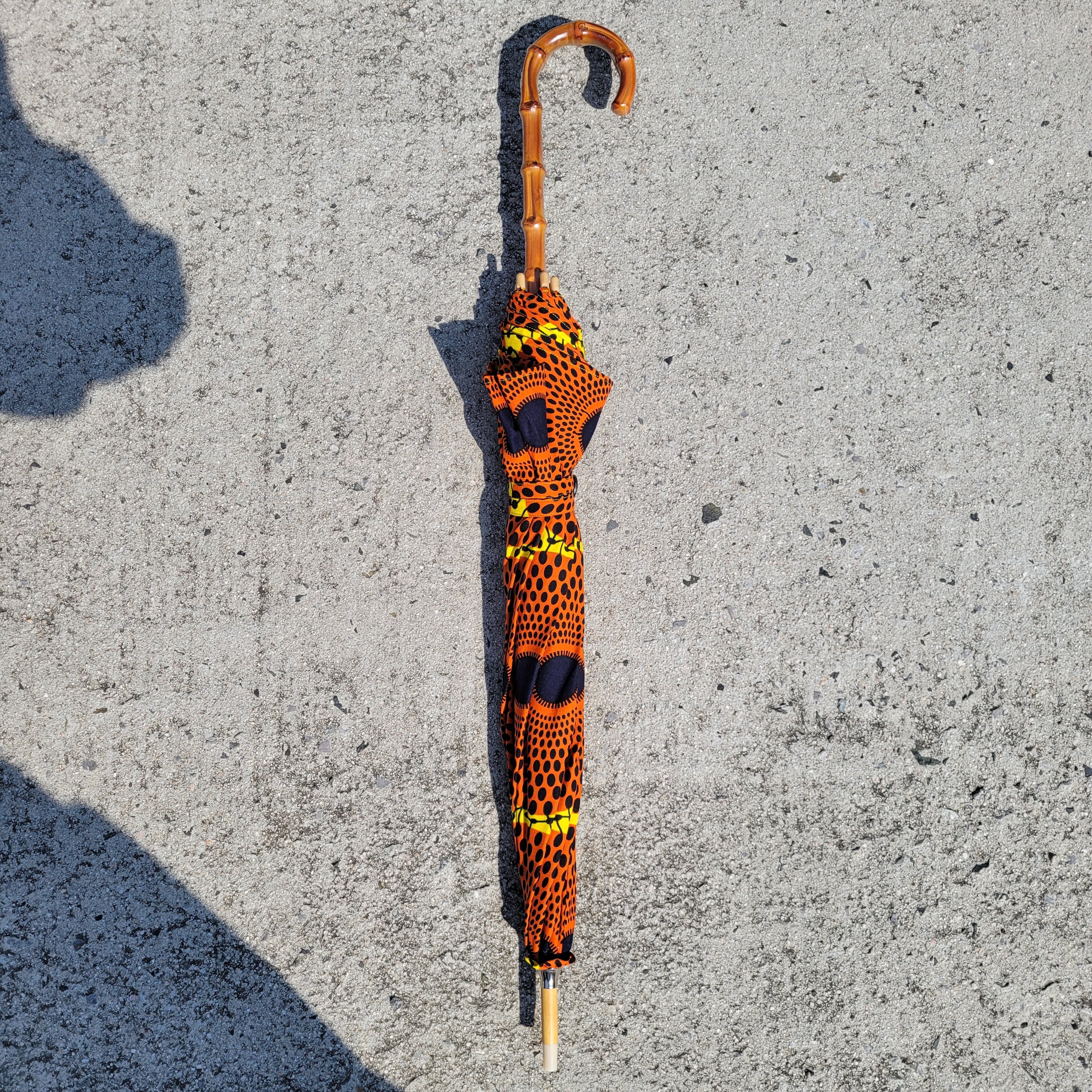 アフリカ布を使用した手動の日傘になります。