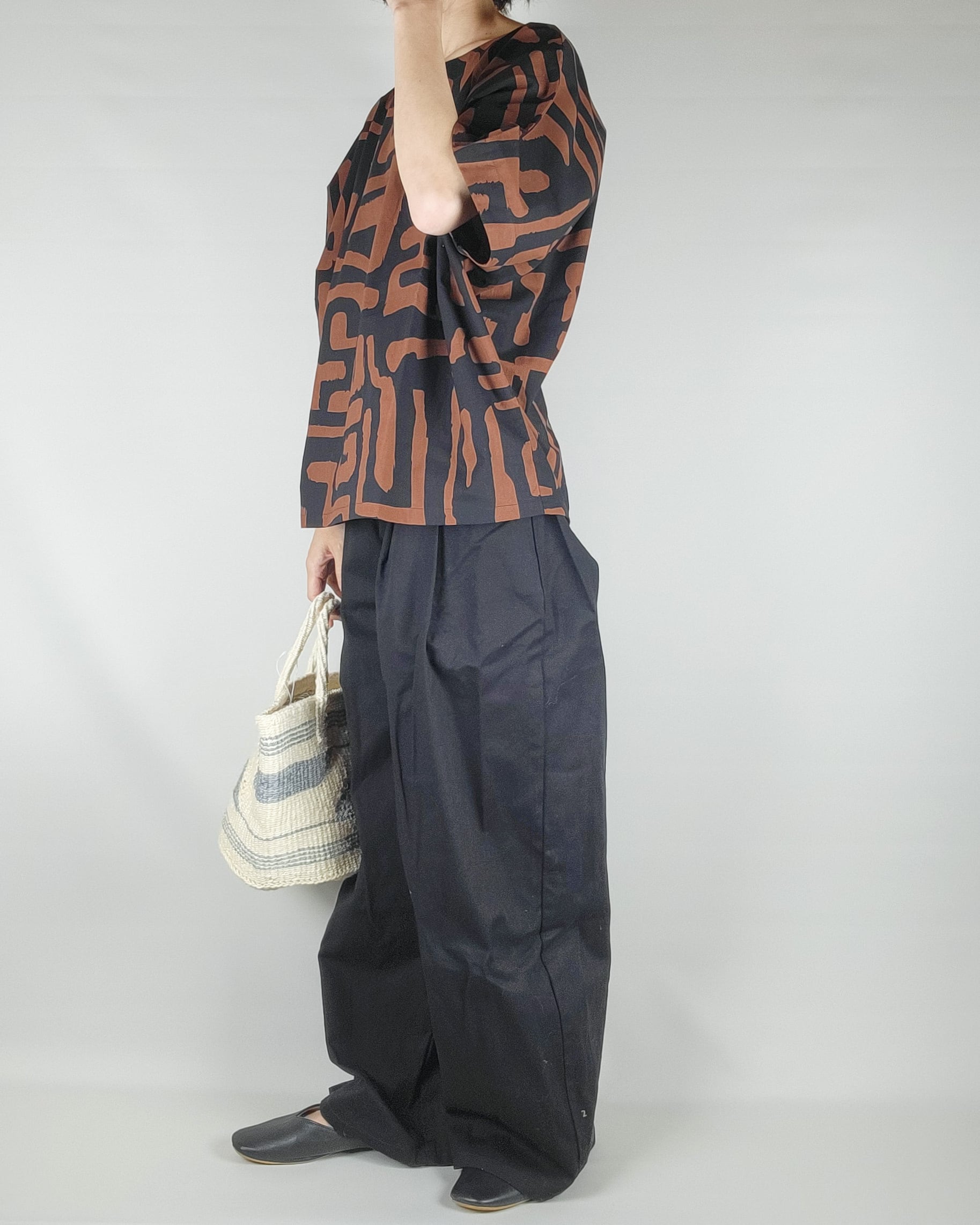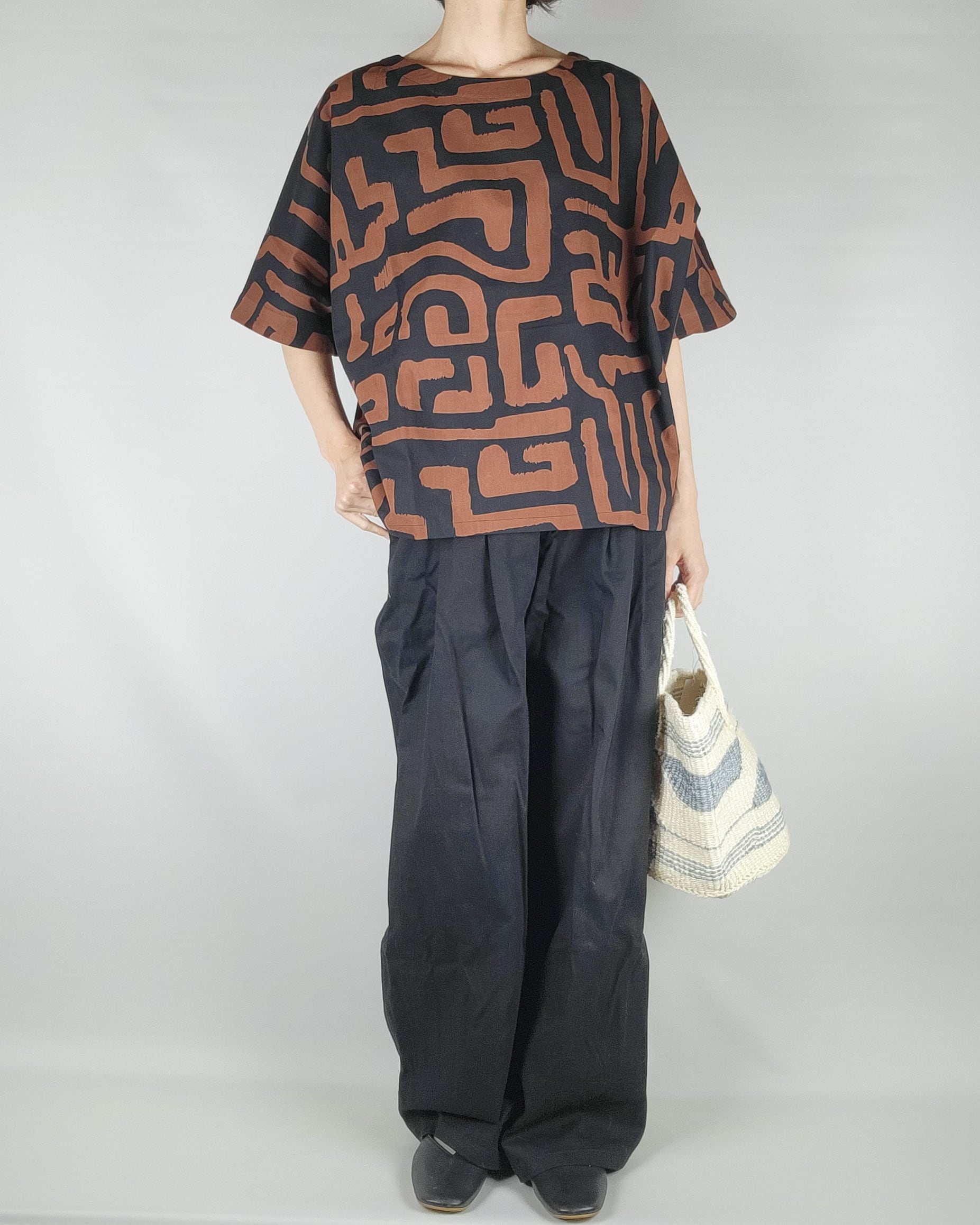 袖と見頃に繋ぎ目のないゆったりしたプルオーバーになります。シンプルなデザインなのでパンツやスカートにもコーディネートしやすいです。