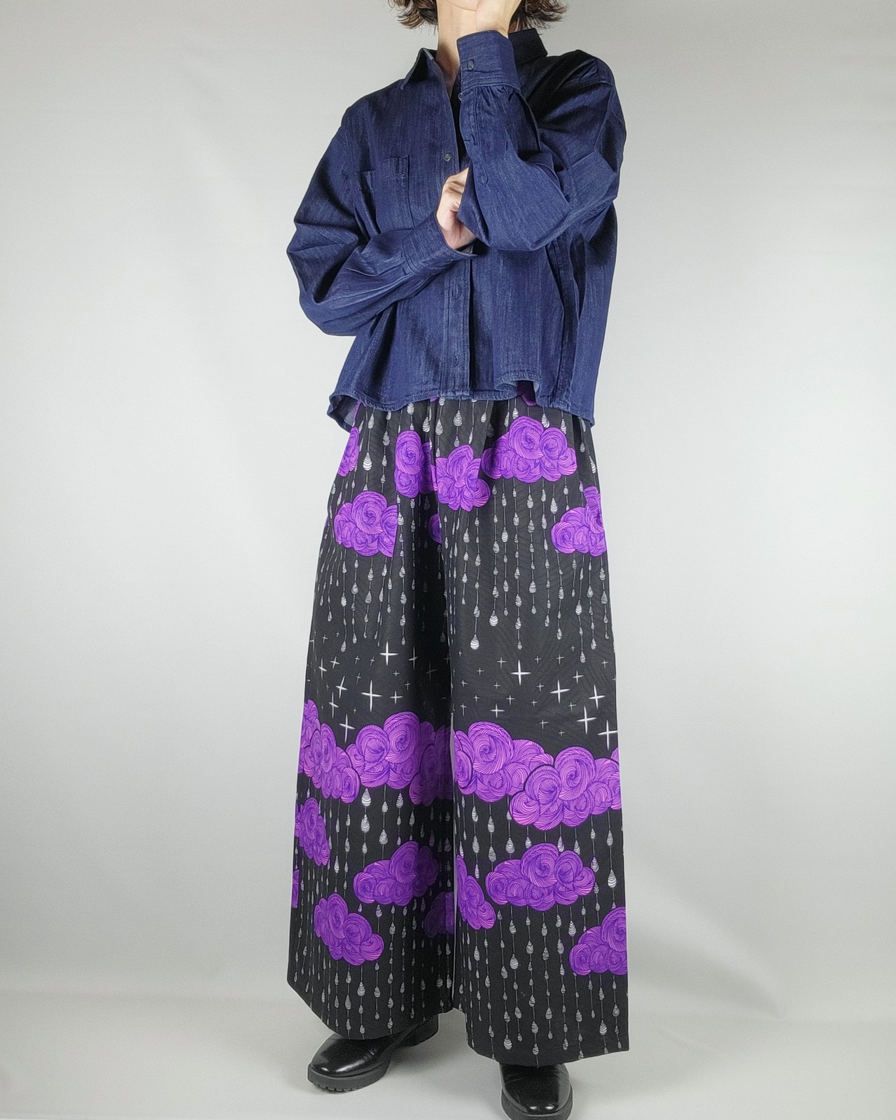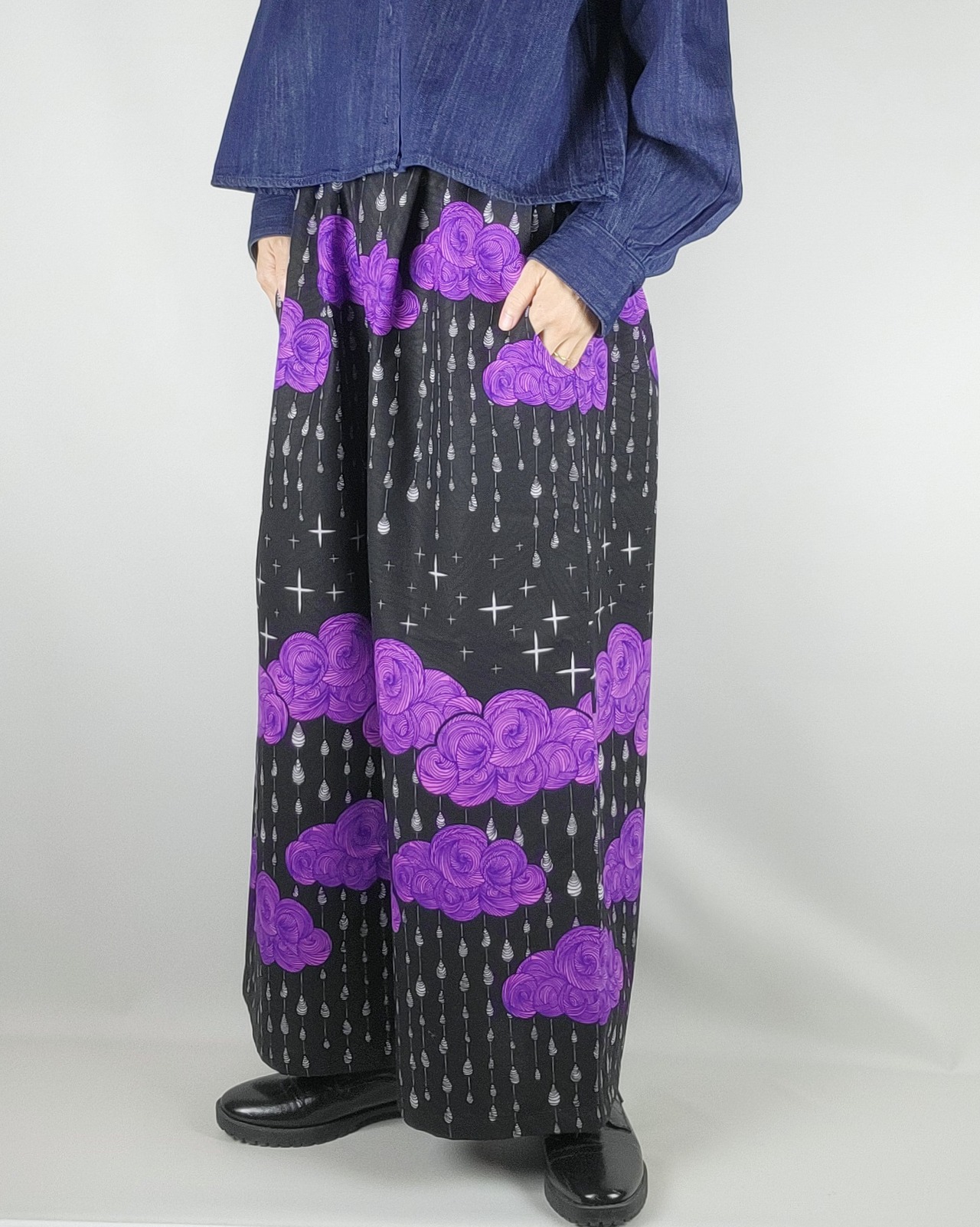 ゆったりワイドパンツ black purple rain