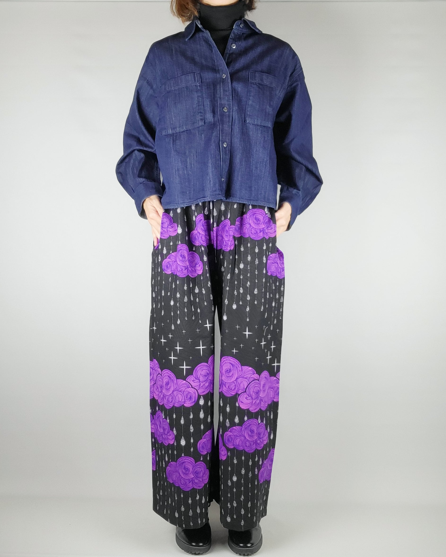 ウエストにタックを入れ、股上も深めにしたリラックス感のあるワイドパンツになっております。