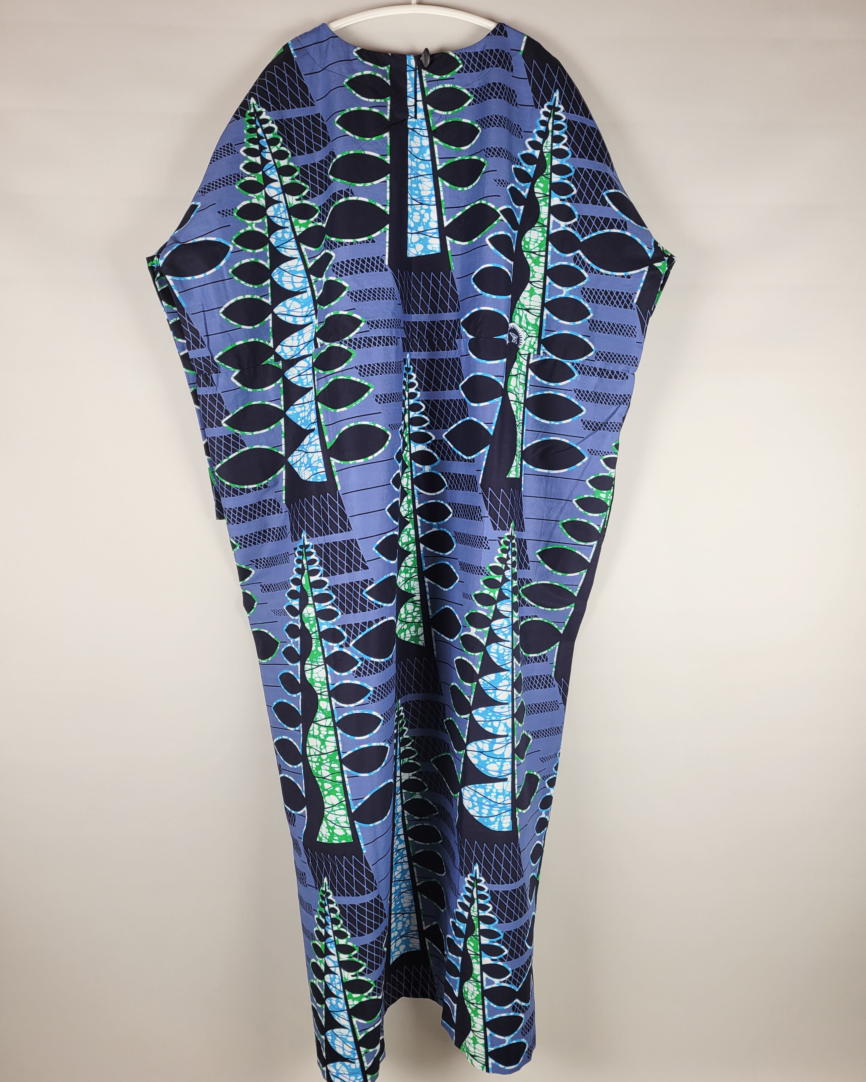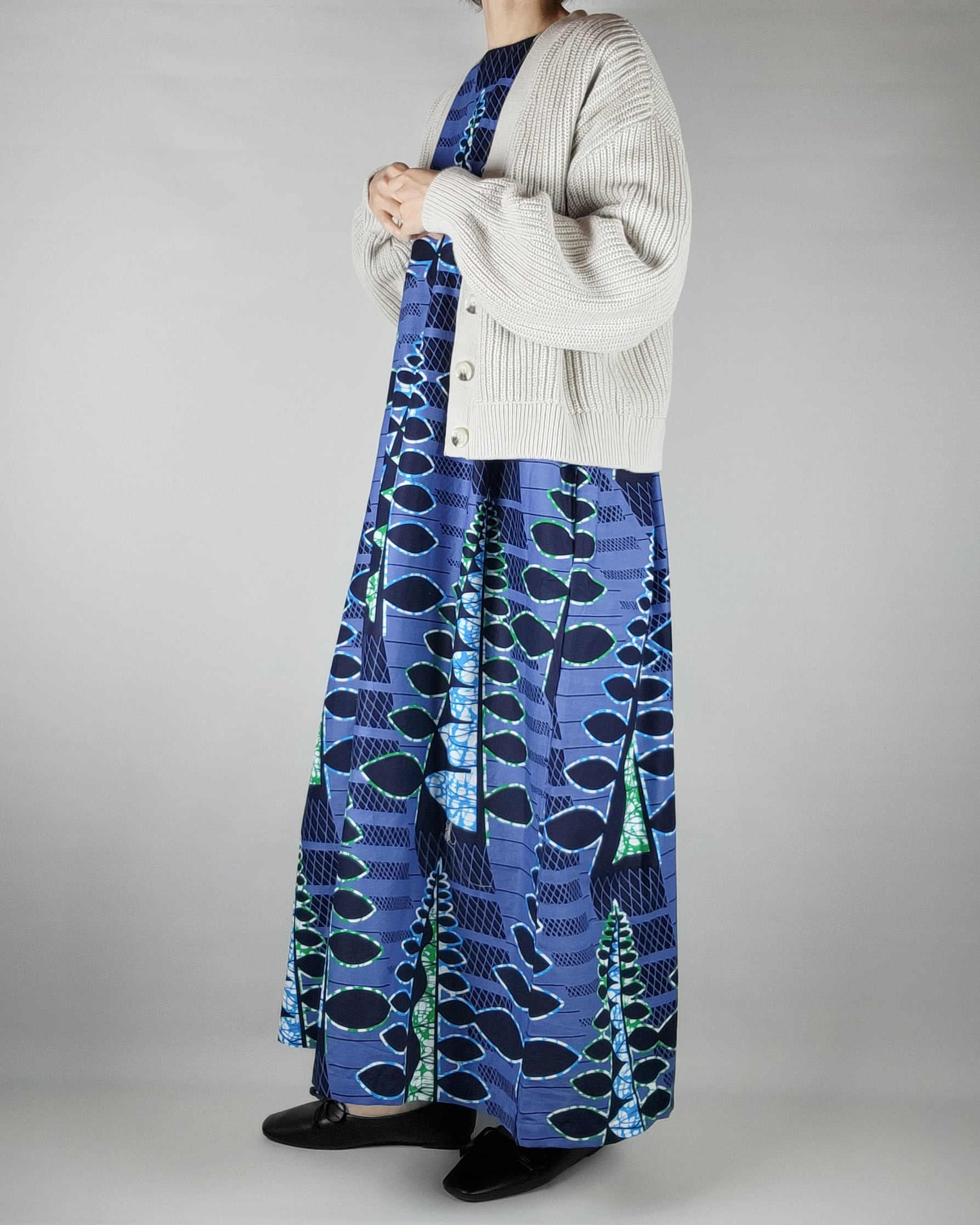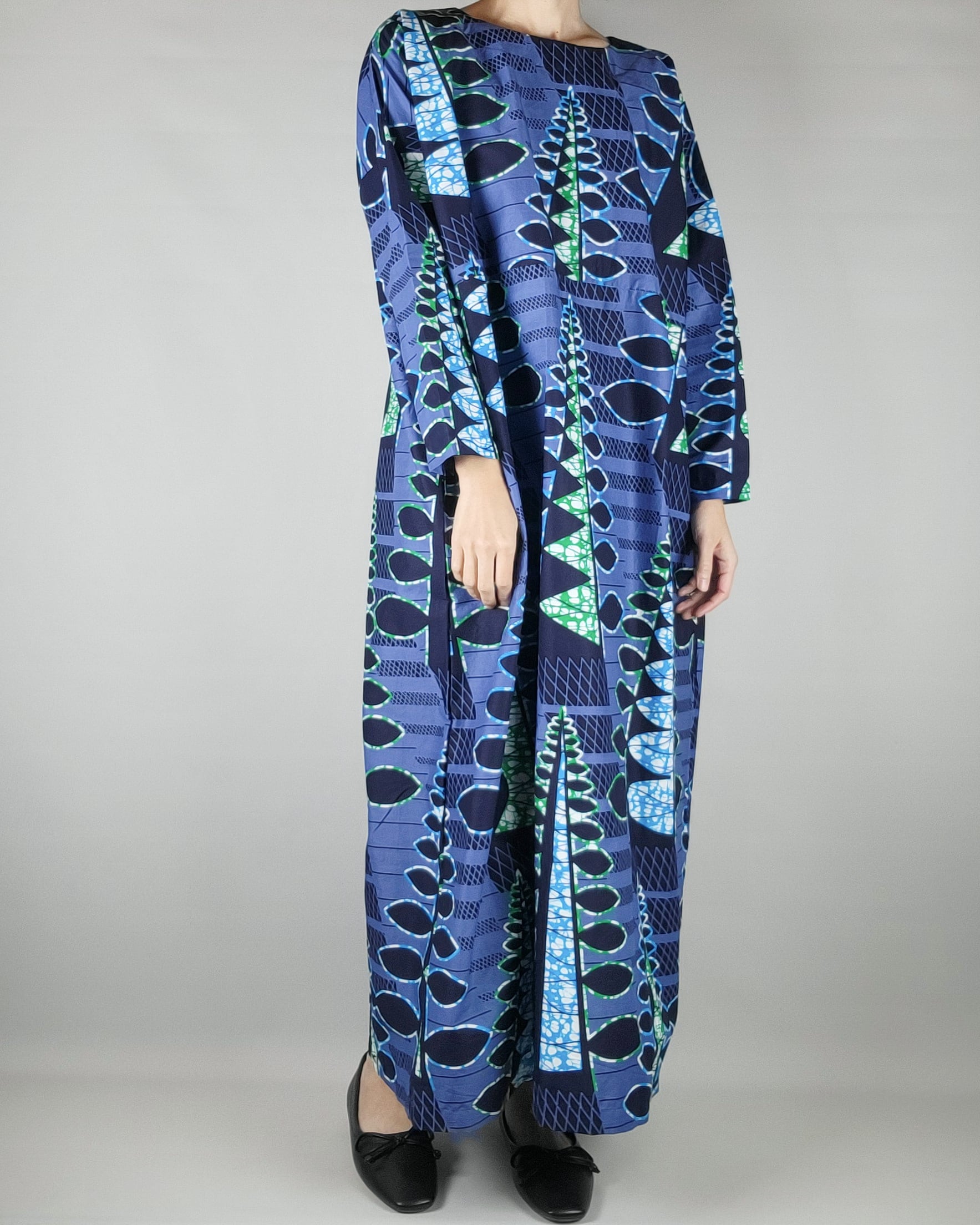 身幅と肩幅がゆったりとしたアフリカ布のロングワンピースになります。