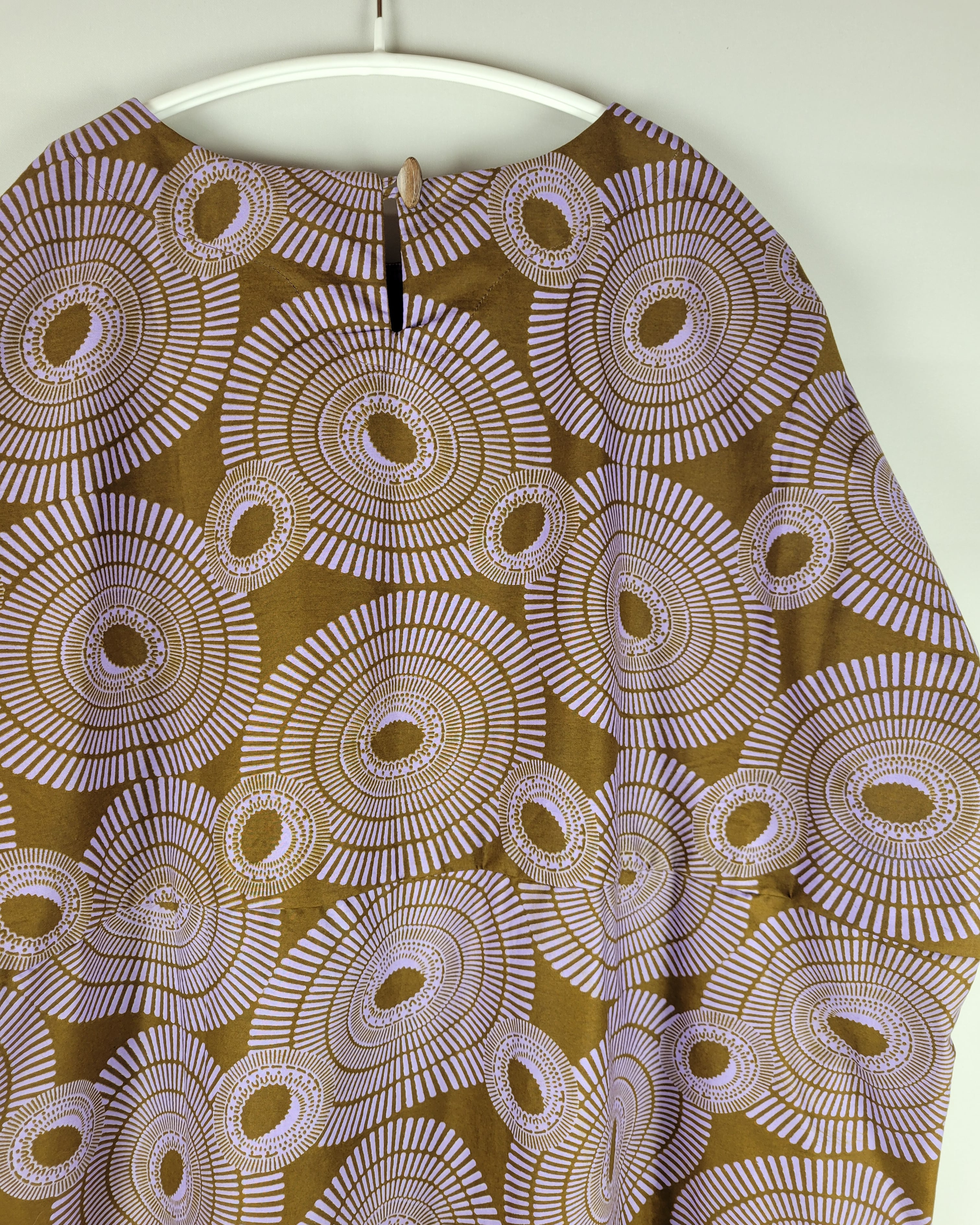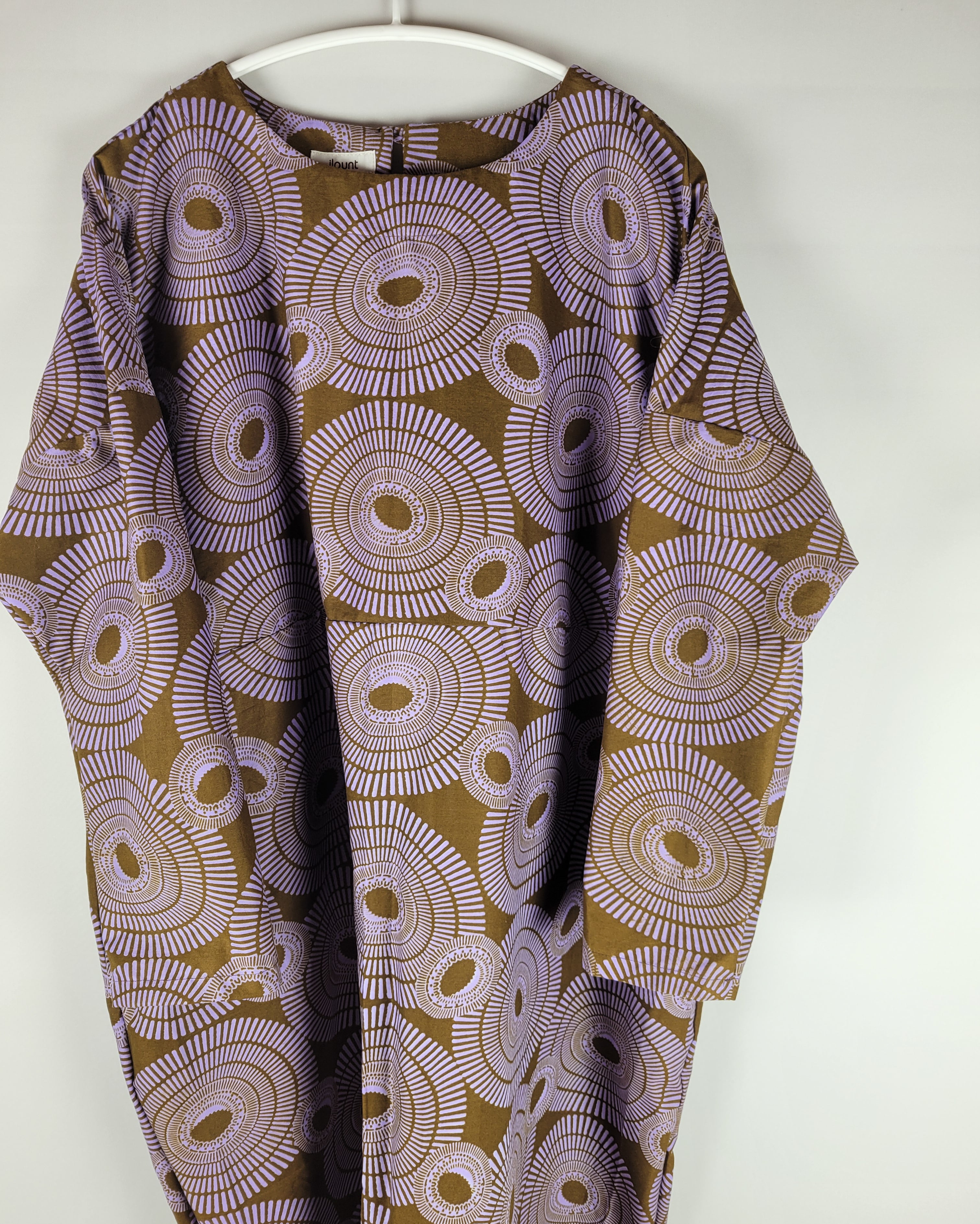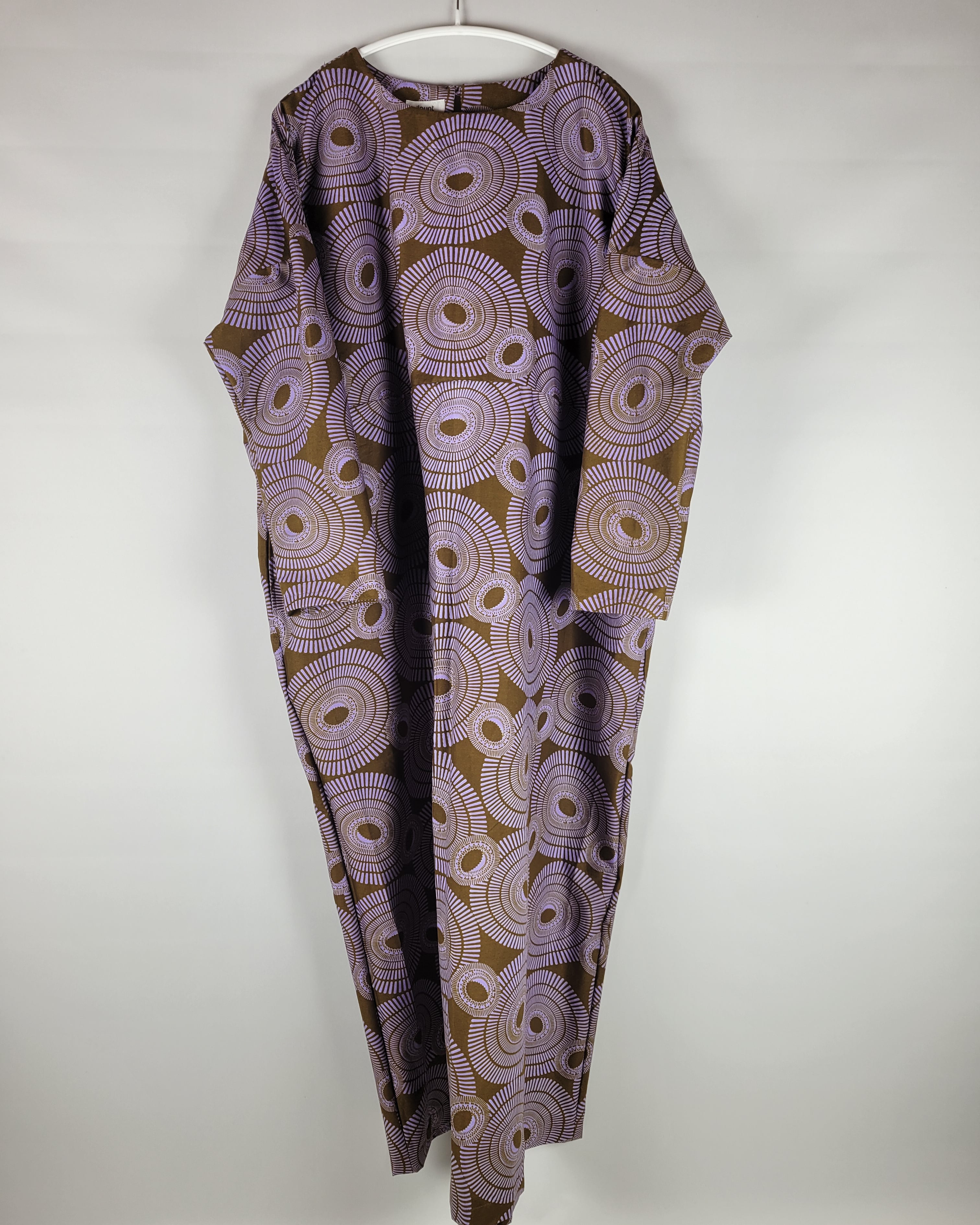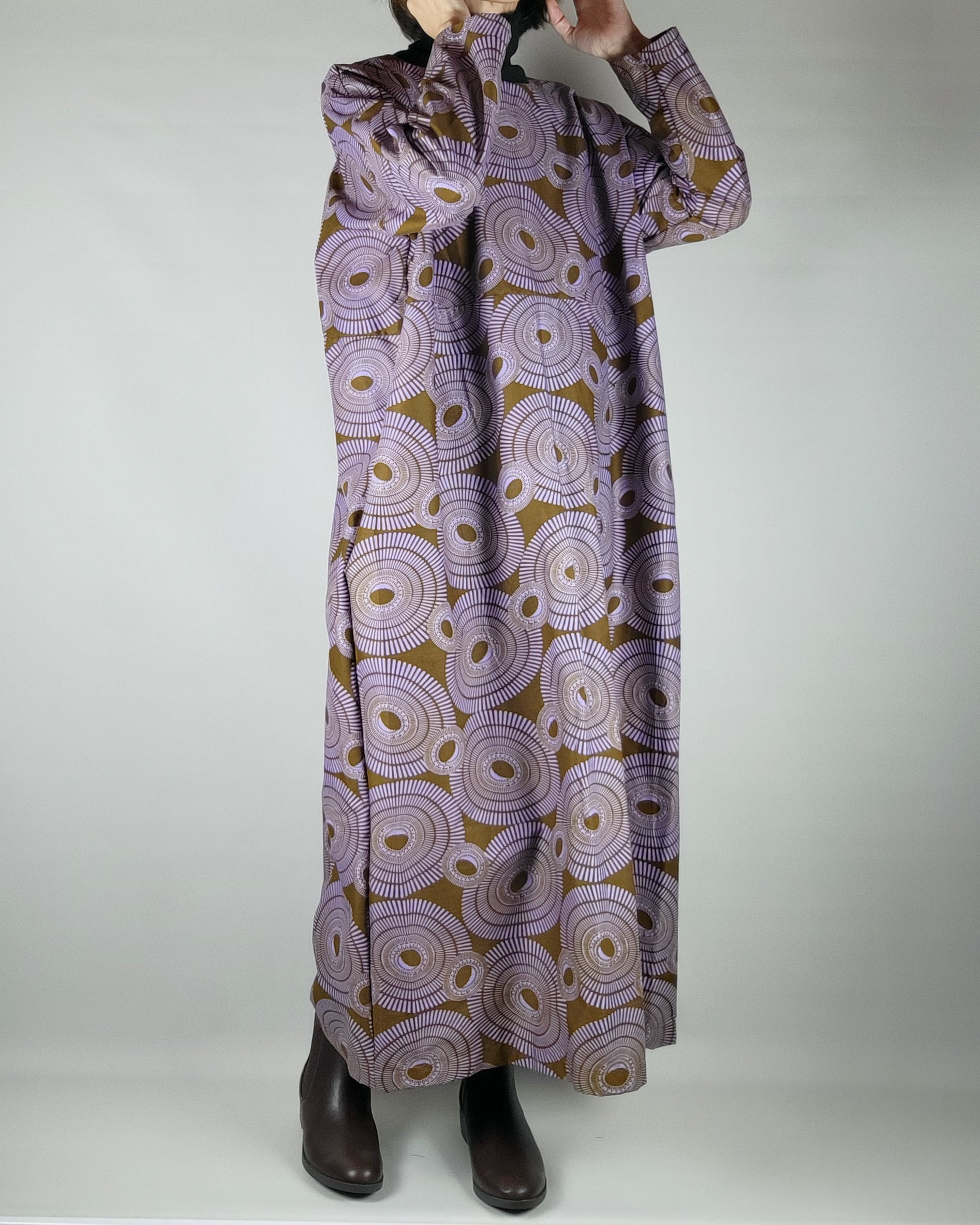 身幅と肩幅がゆったりとしたアフリカ布のロングワンピースになります。