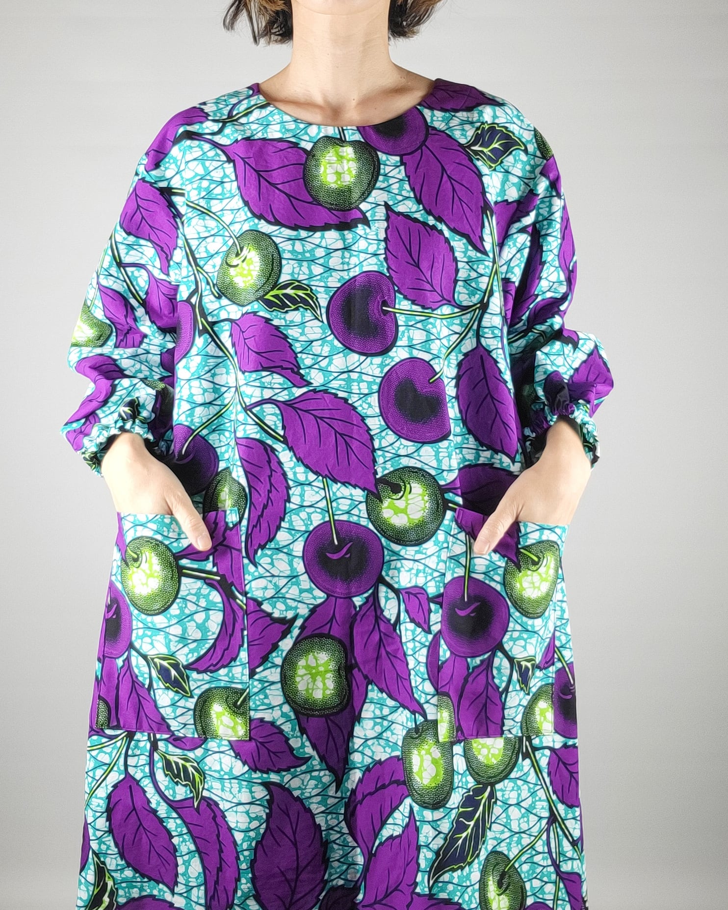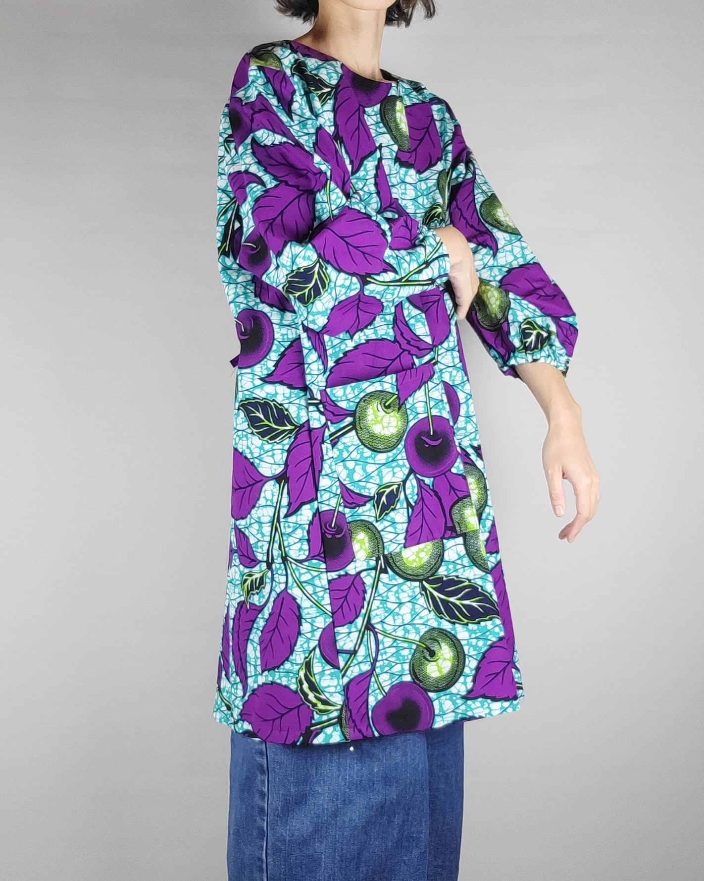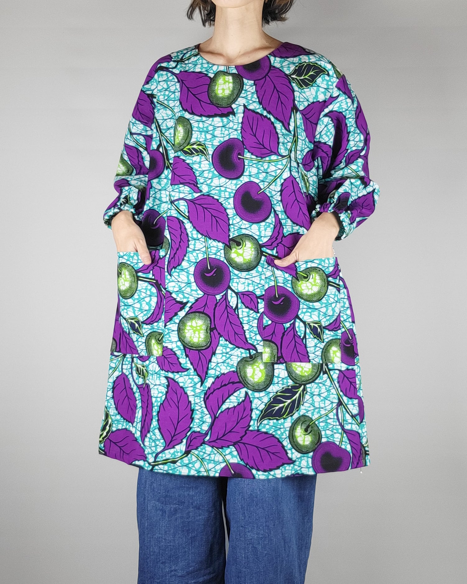 アフリカ布でお仕立てした割烹着になります。日常のホームワークを楽しくして頂けるような柄達をセレクトしています。