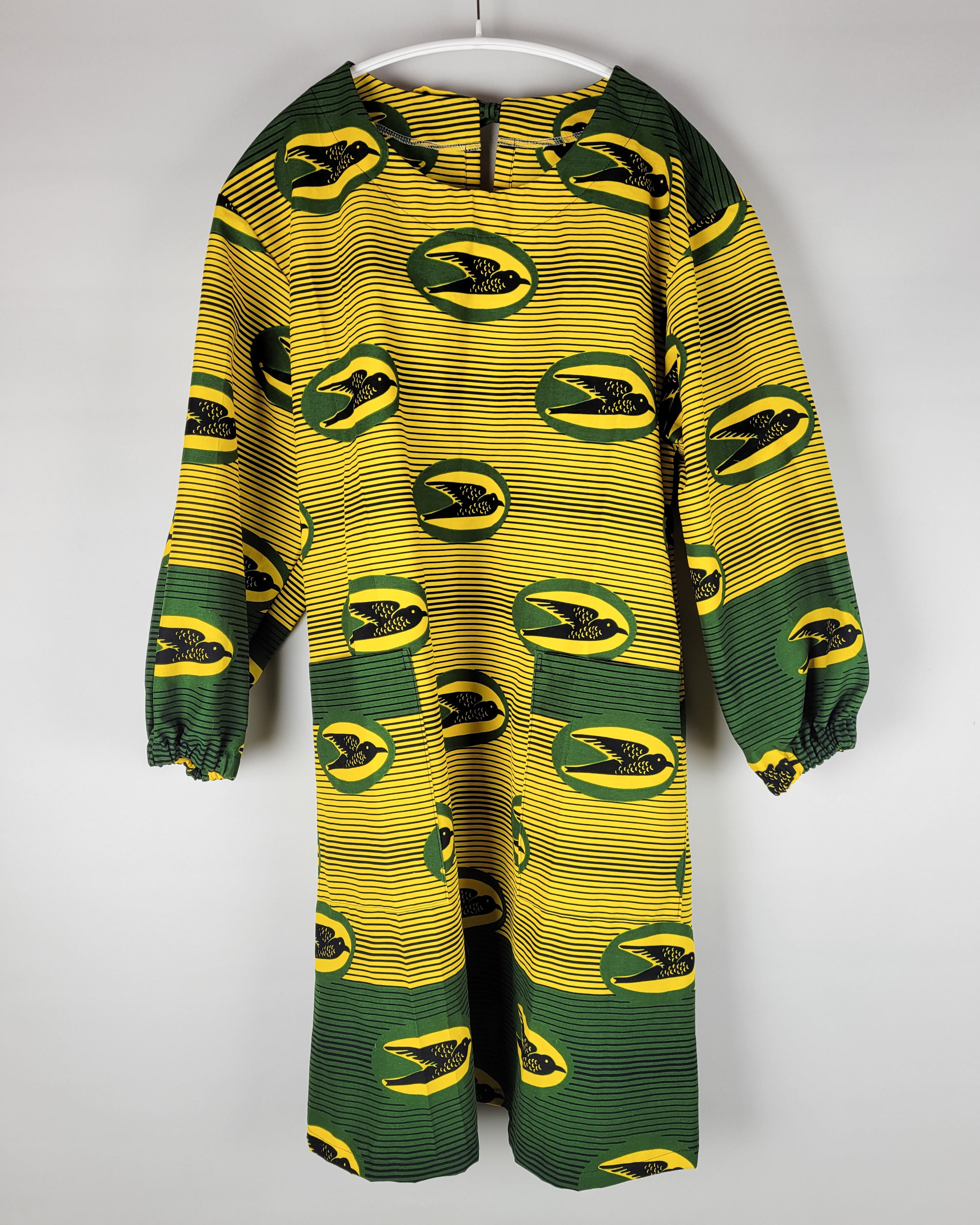 アフリカ布でお仕立てした割烹着になります。日常のホームワークを楽しくして頂けるような柄達をセレクトしています。