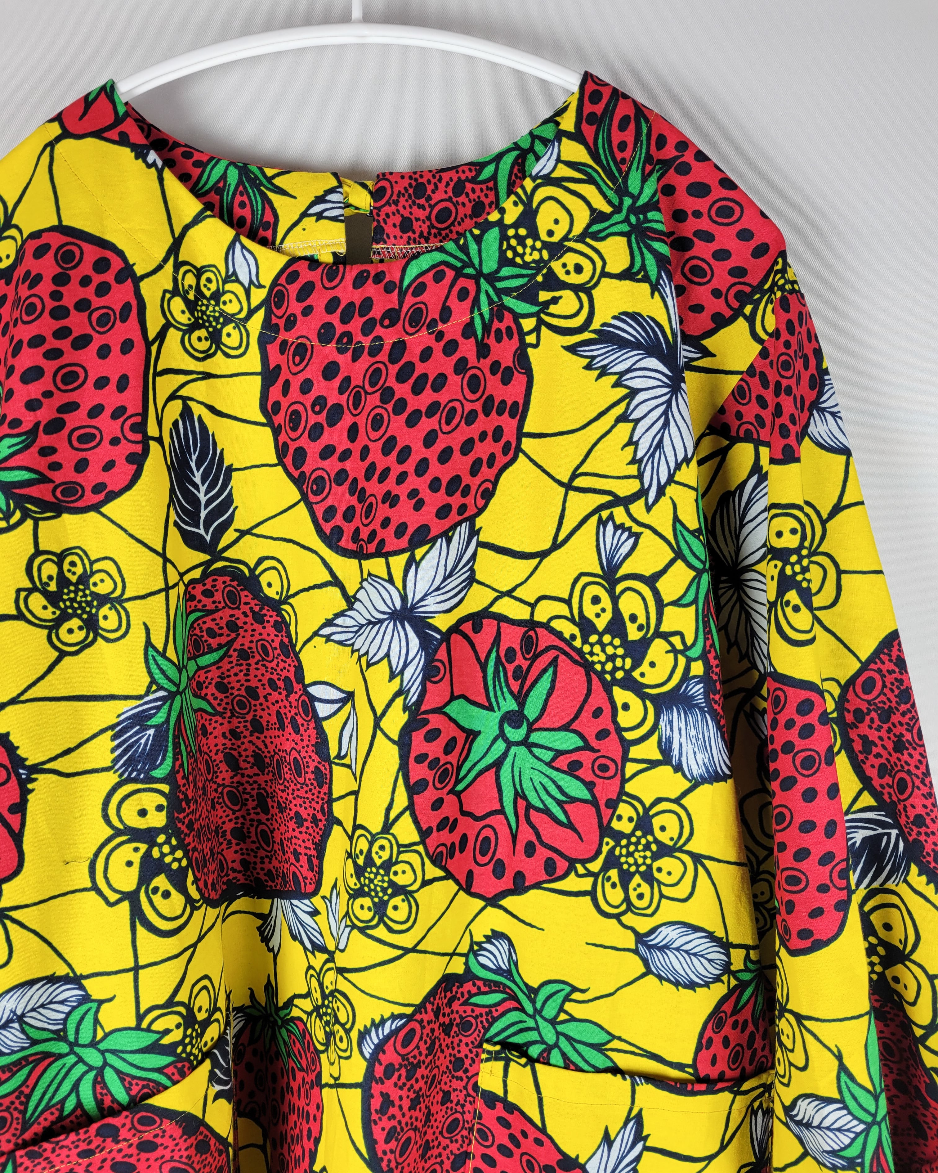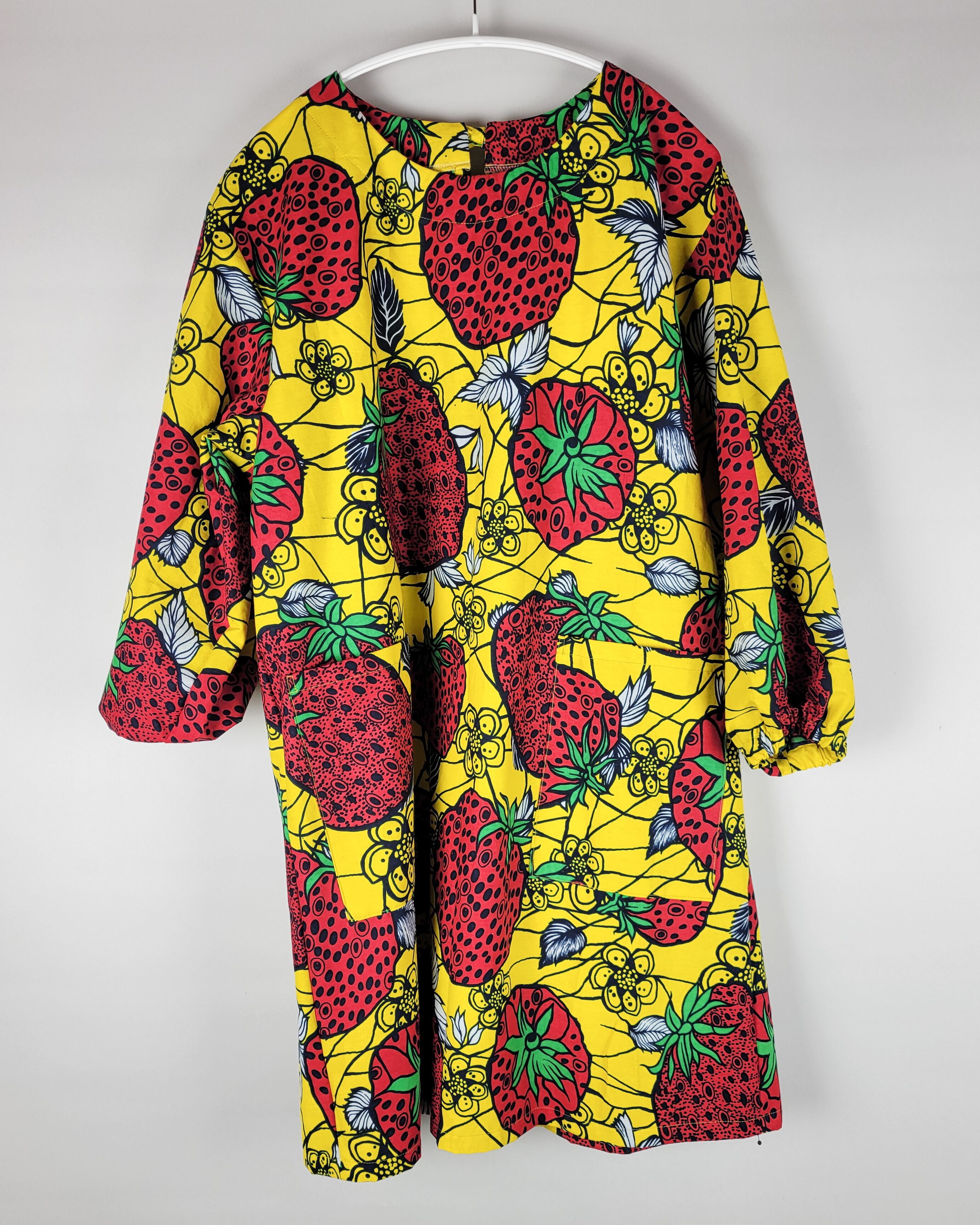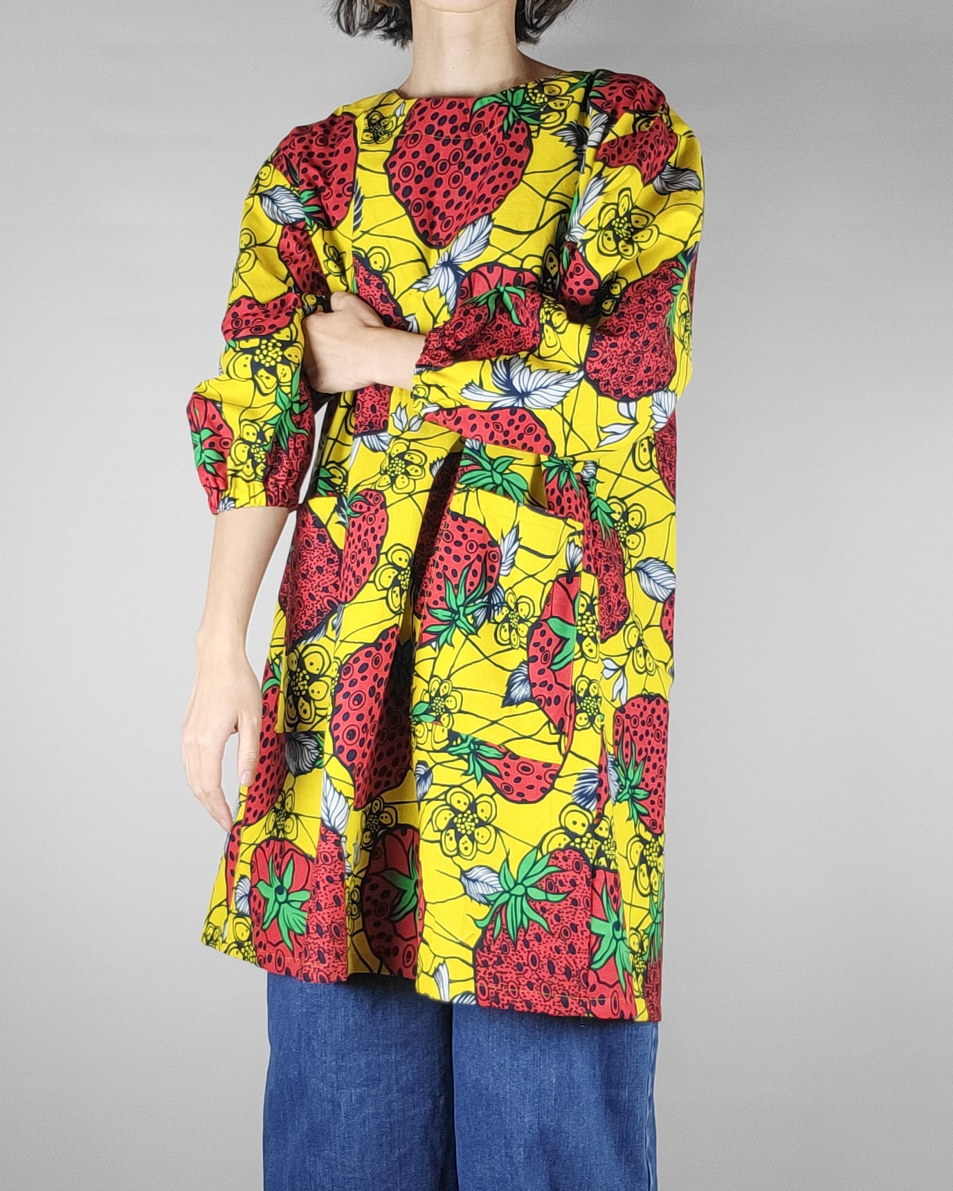 アフリカ布でお仕立てした割烹着になります。日常のホームワークを楽しくして頂けるような柄達をセレクトしています。