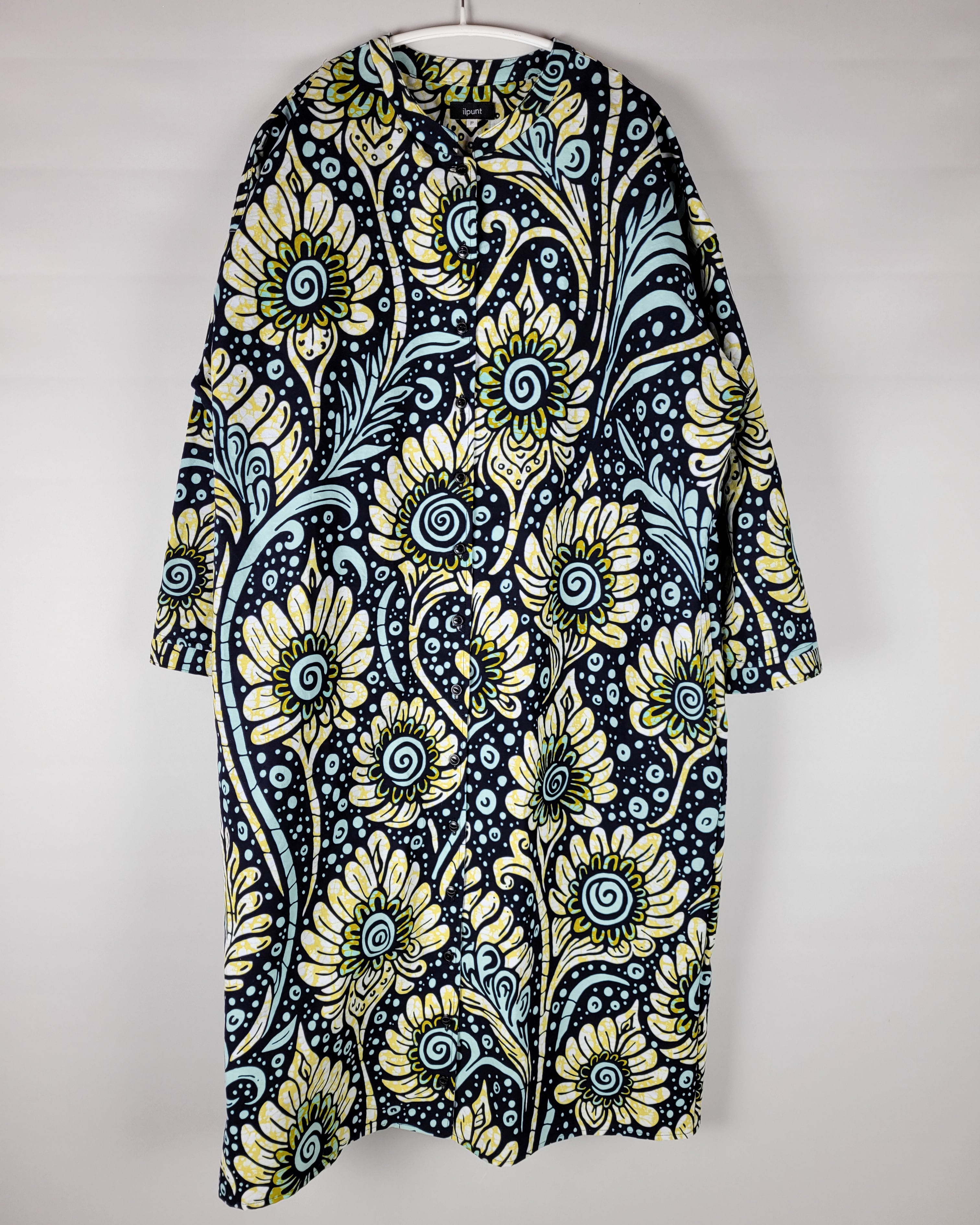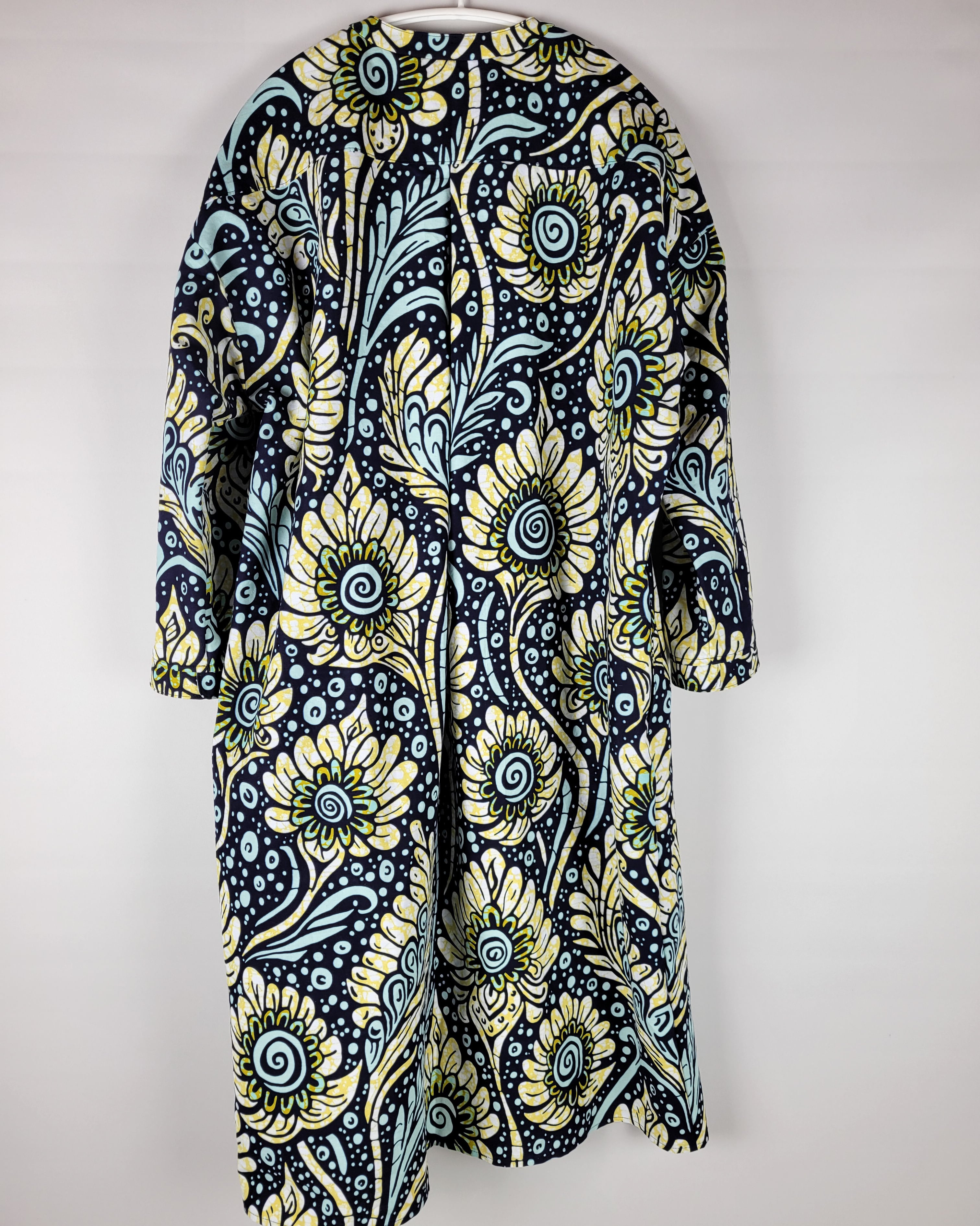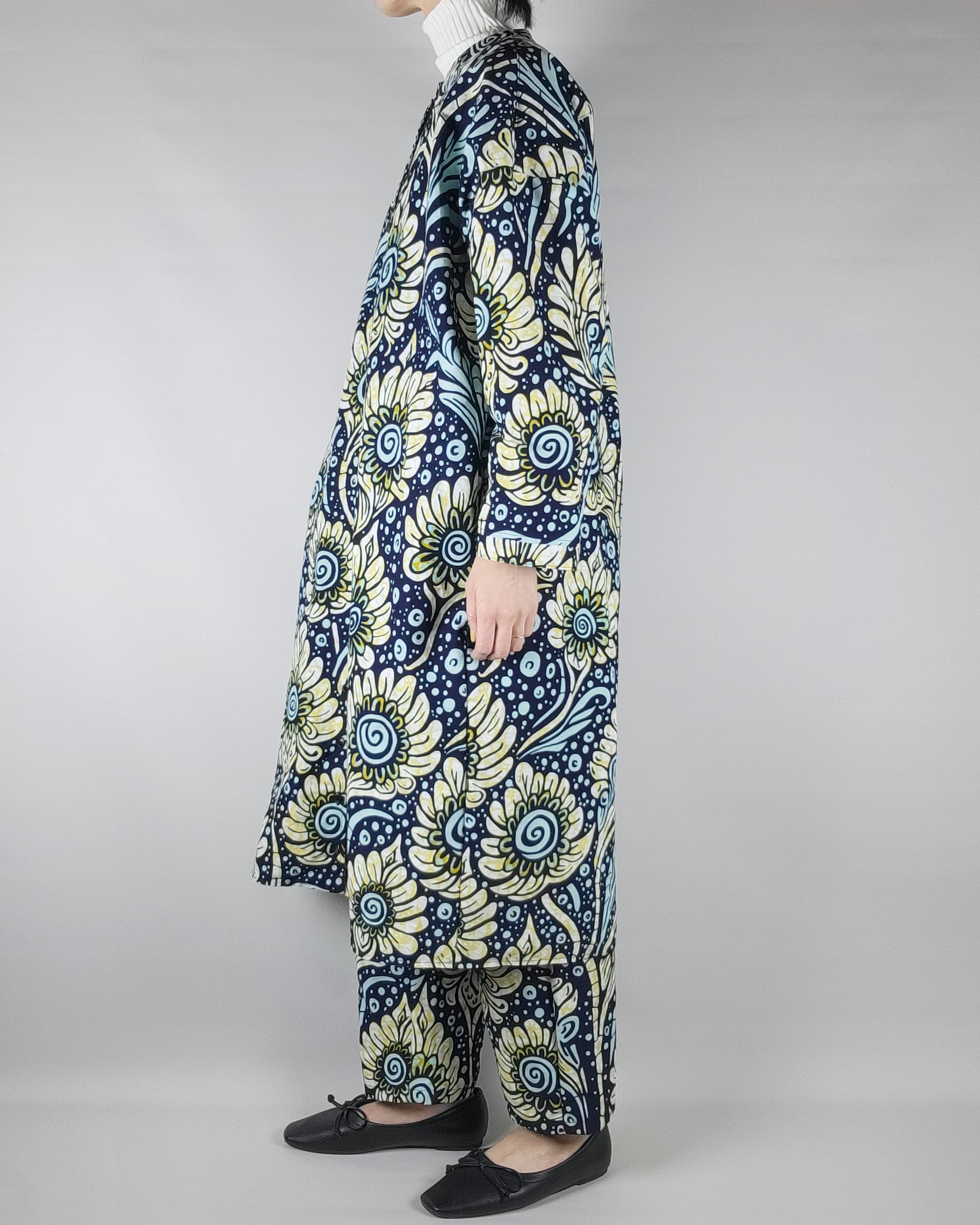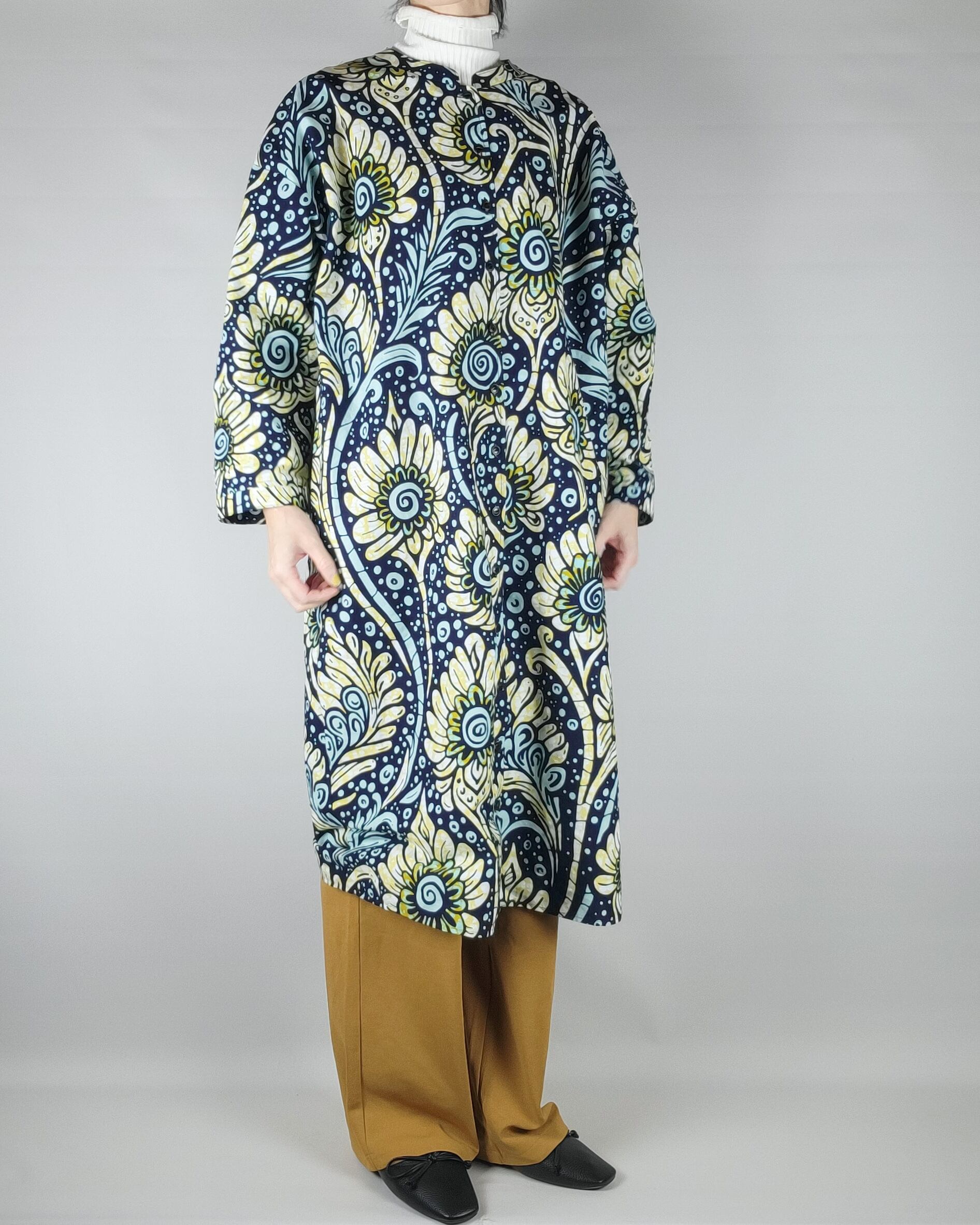 アフリカ布で仕立てたフロントオープンのワンピースになります。