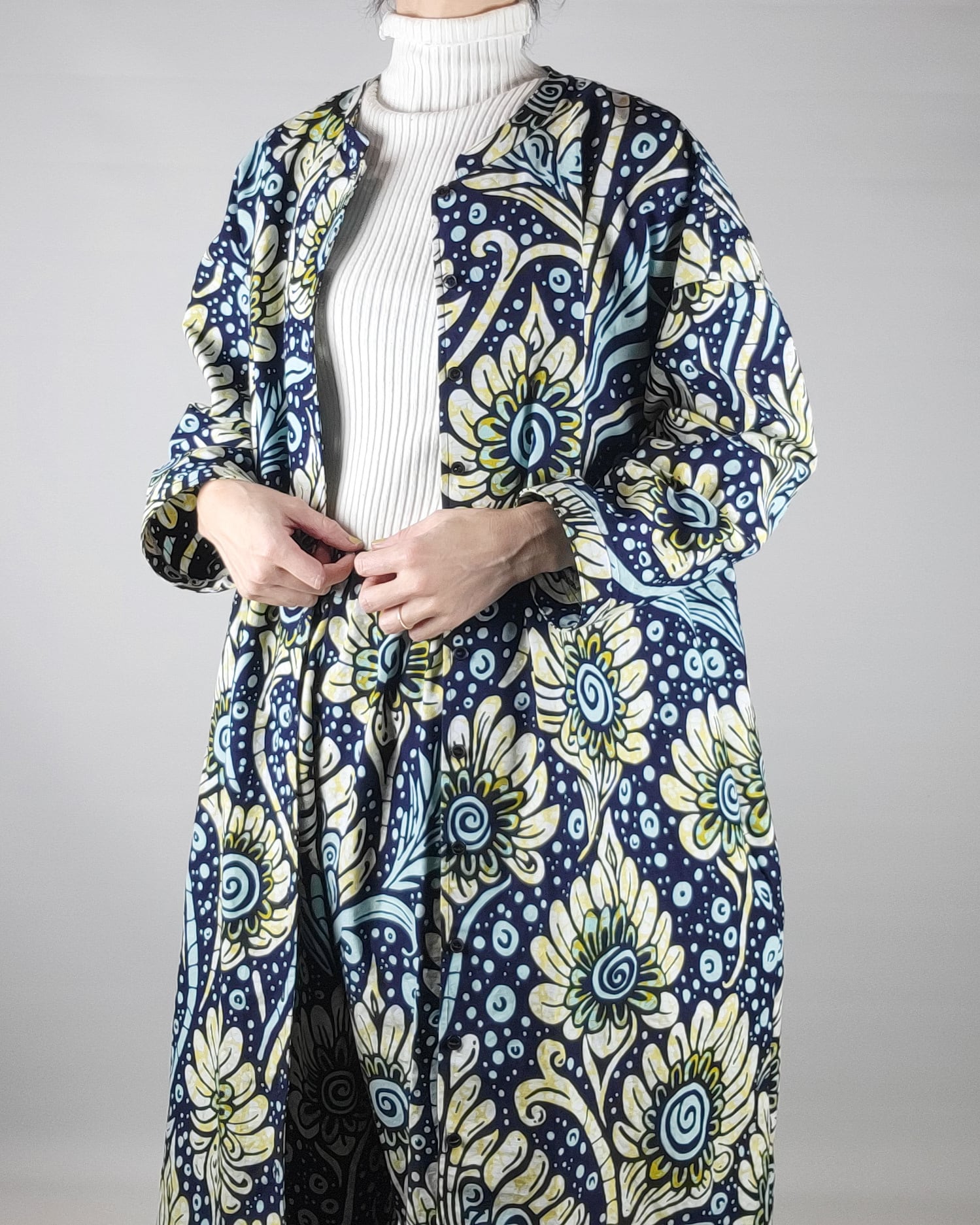 ワンピースとしても羽織りとしても着て頂けるようデザイン致しましたので様々なシーズンでコーディネートして頂けます。