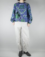 コーディネートのしやすさを重視し、ベーシックなゆとりあるシルエットで仕立てたノーカラーブラウスになります。