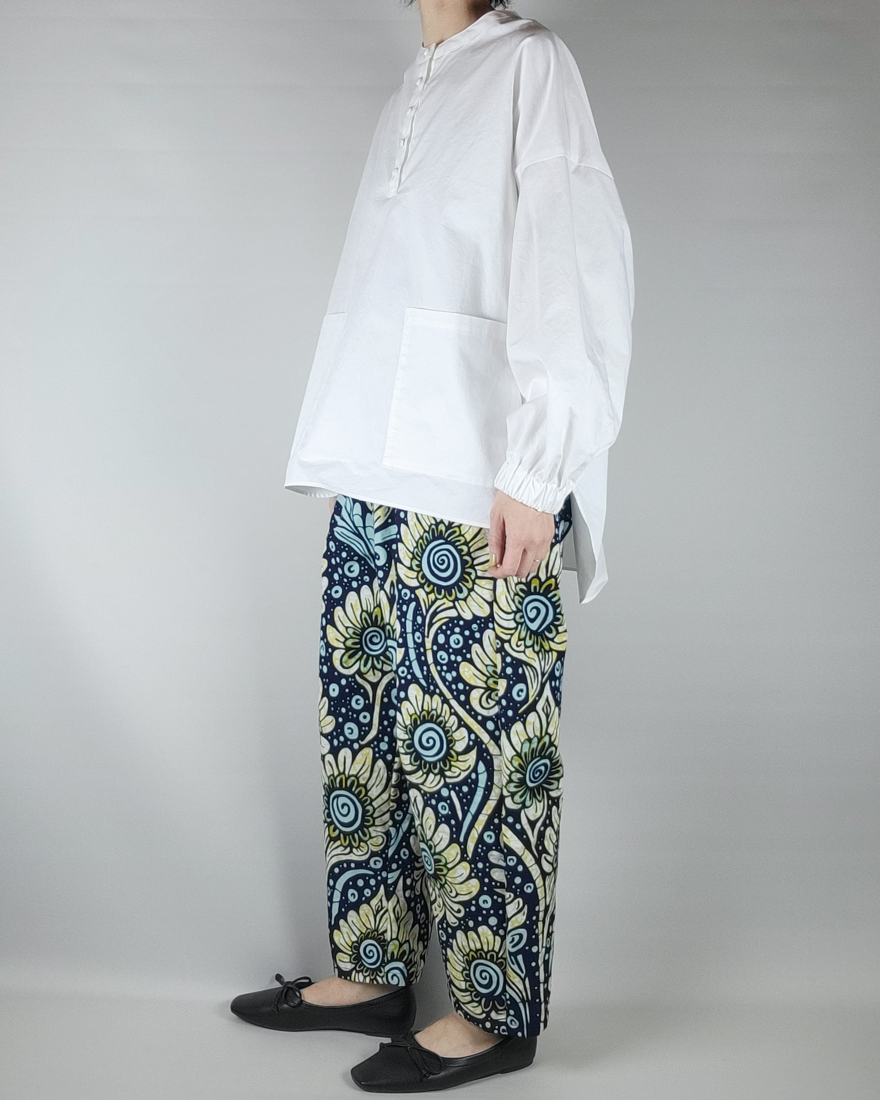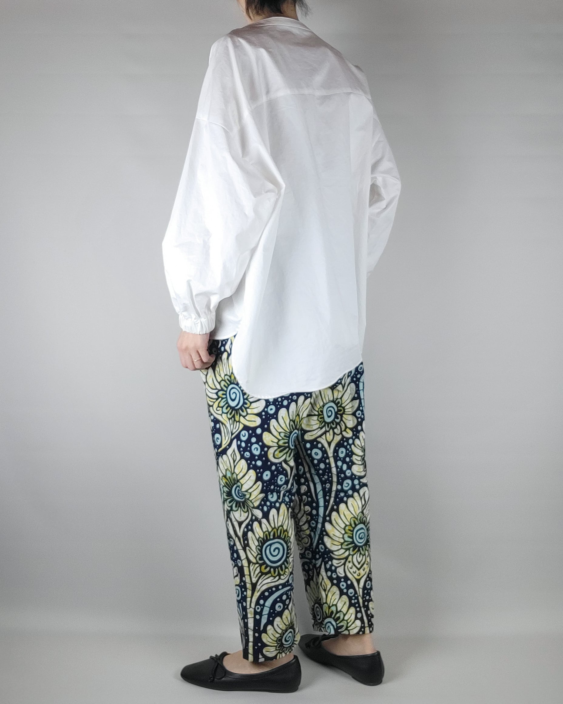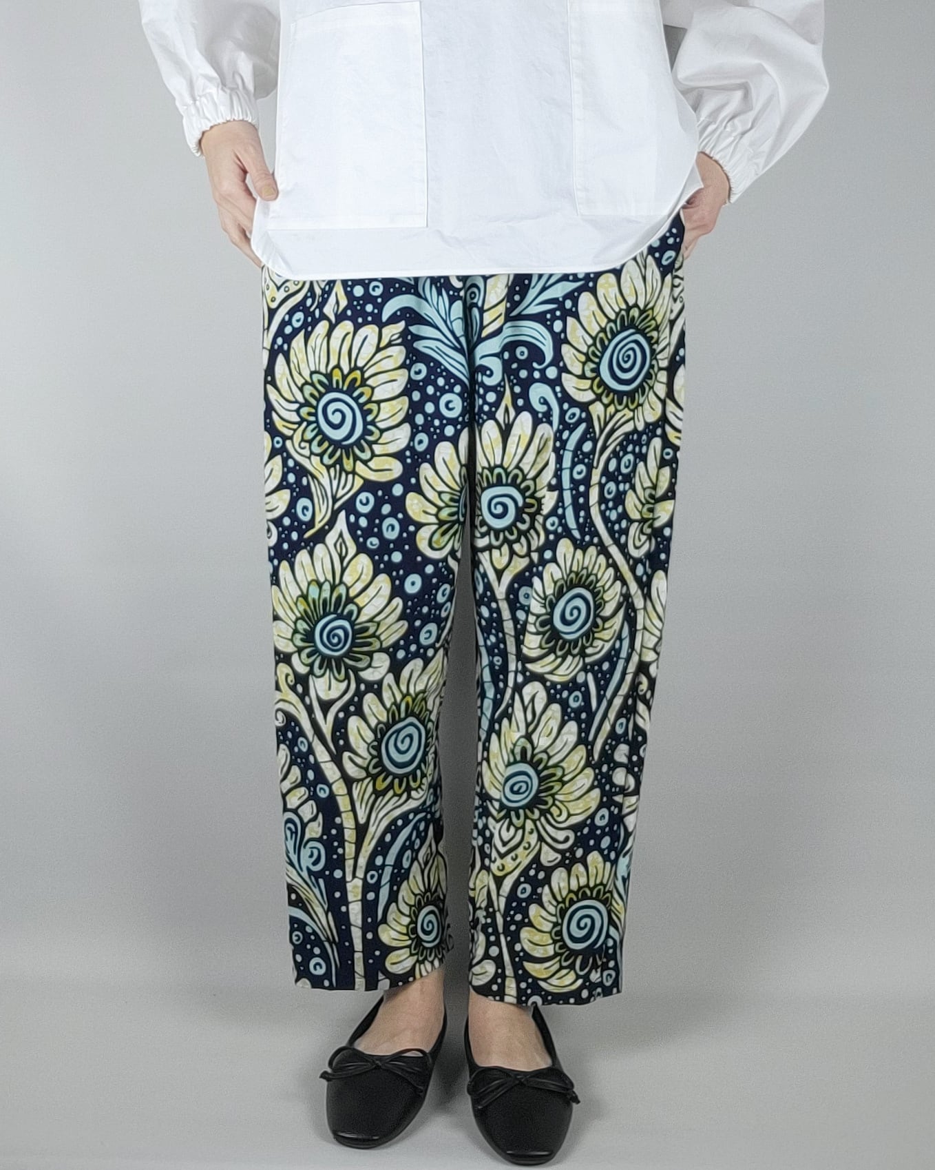 ゆったりテーパードパンツ black yellow flower