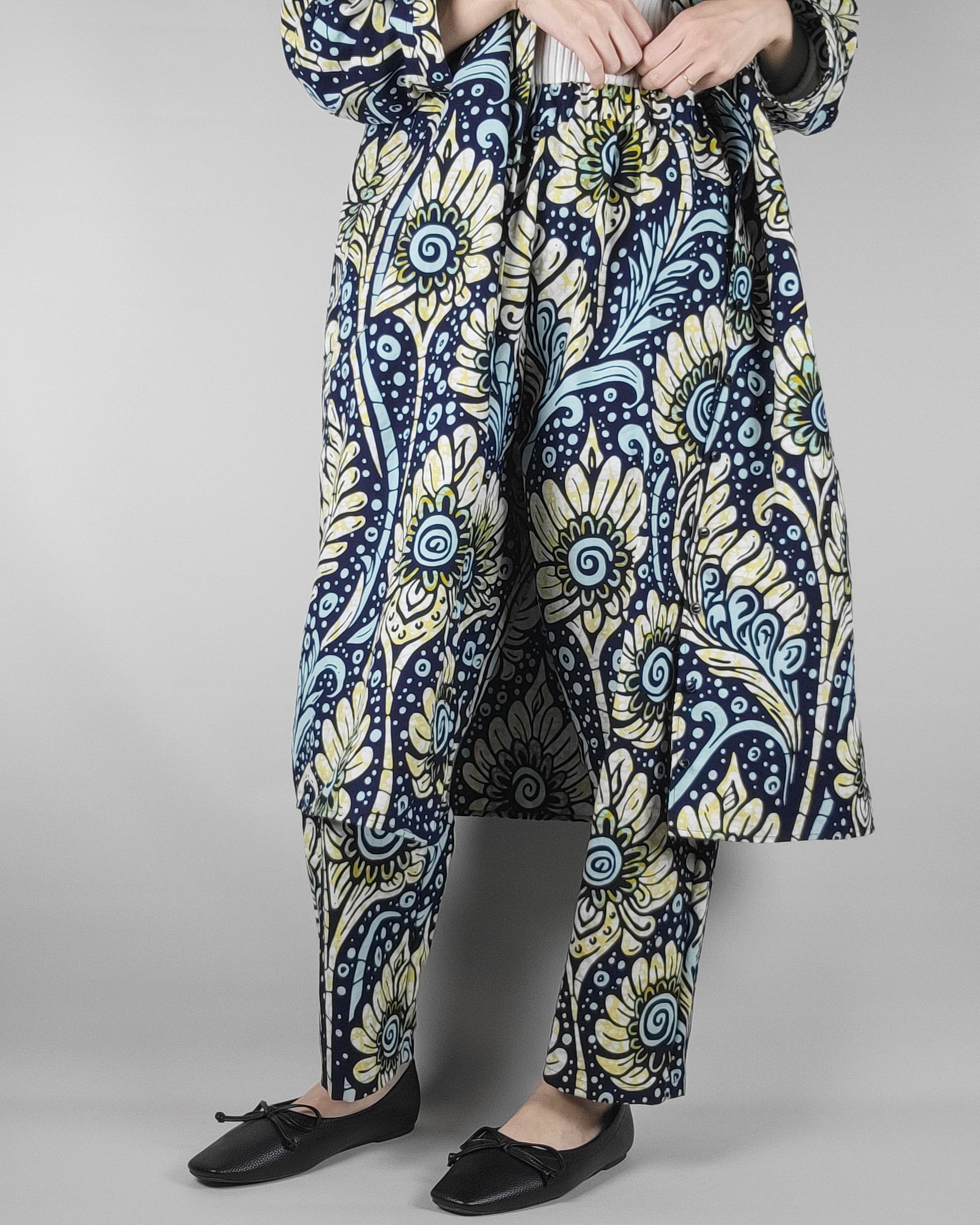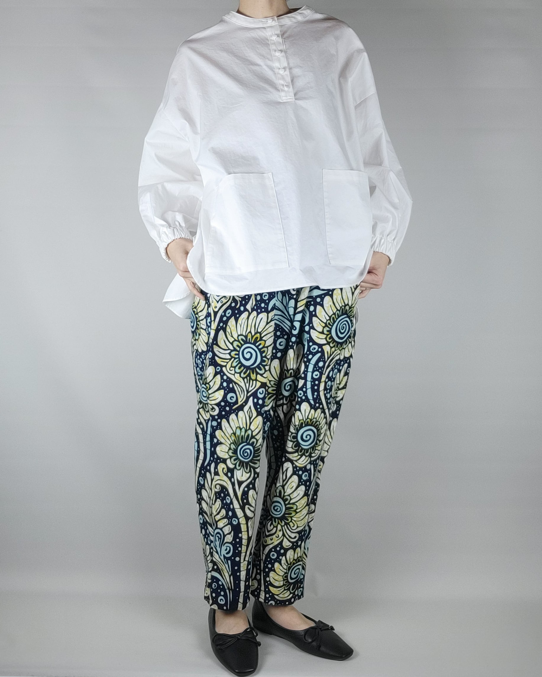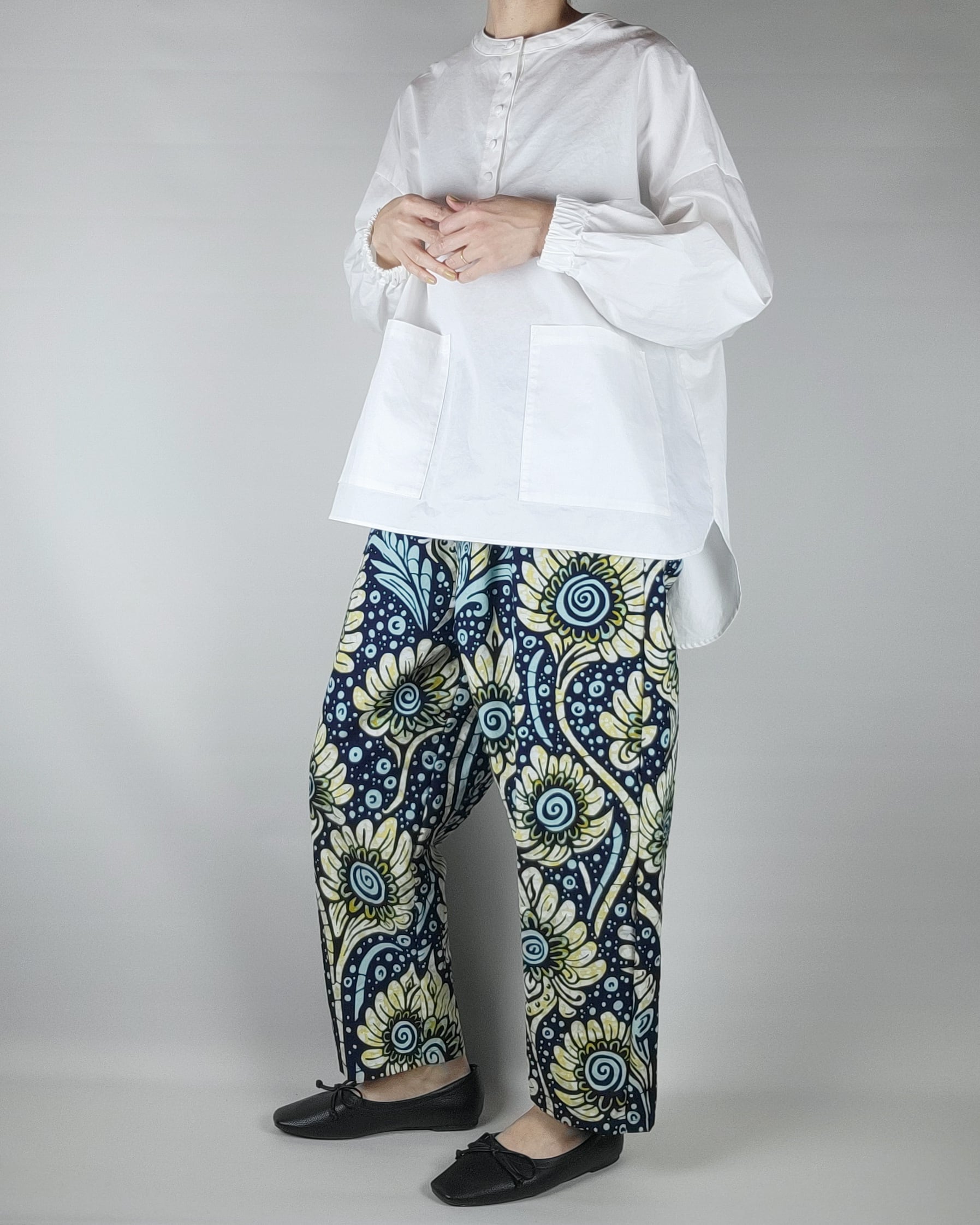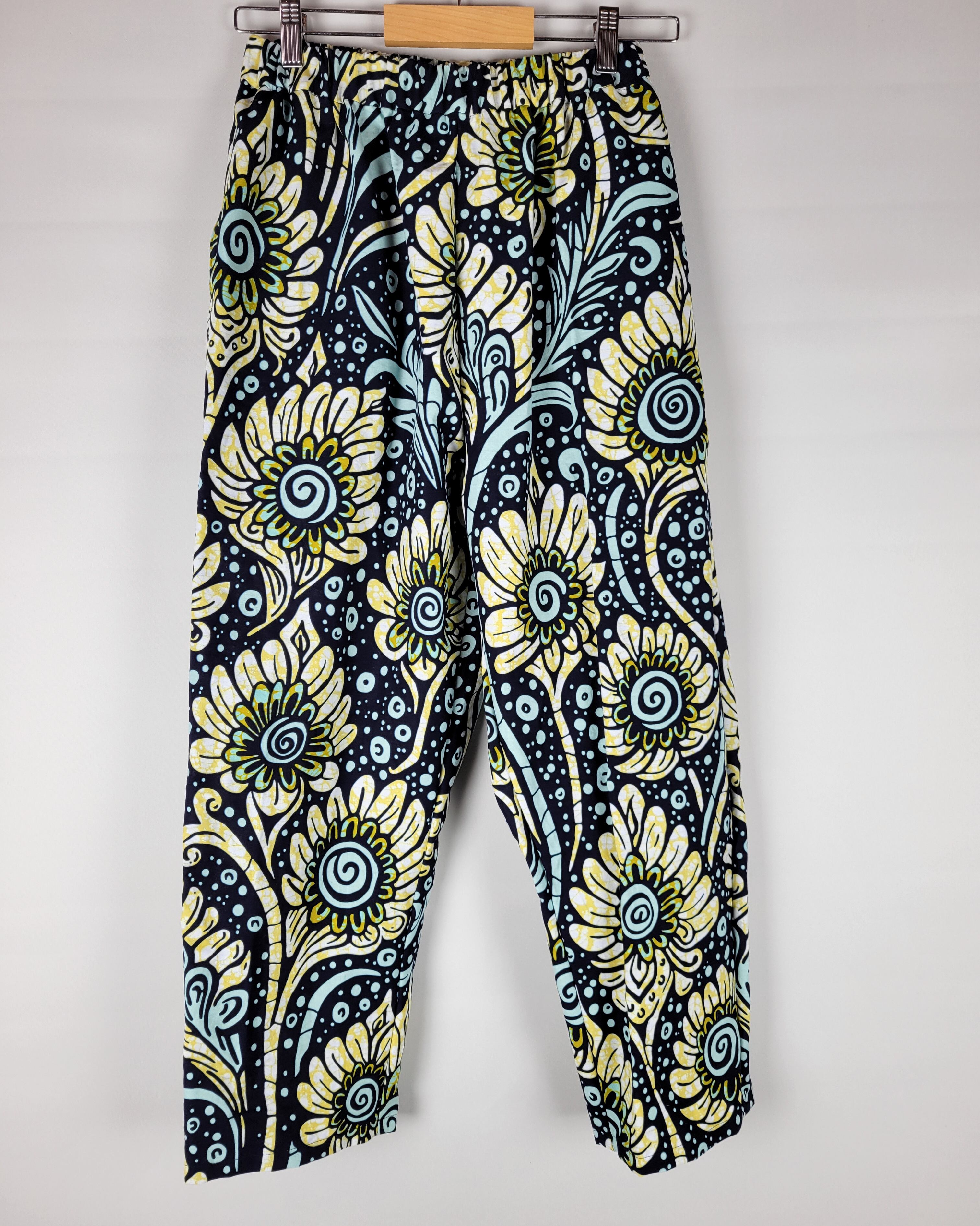 ゆったりテーパードパンツ black yellow flower