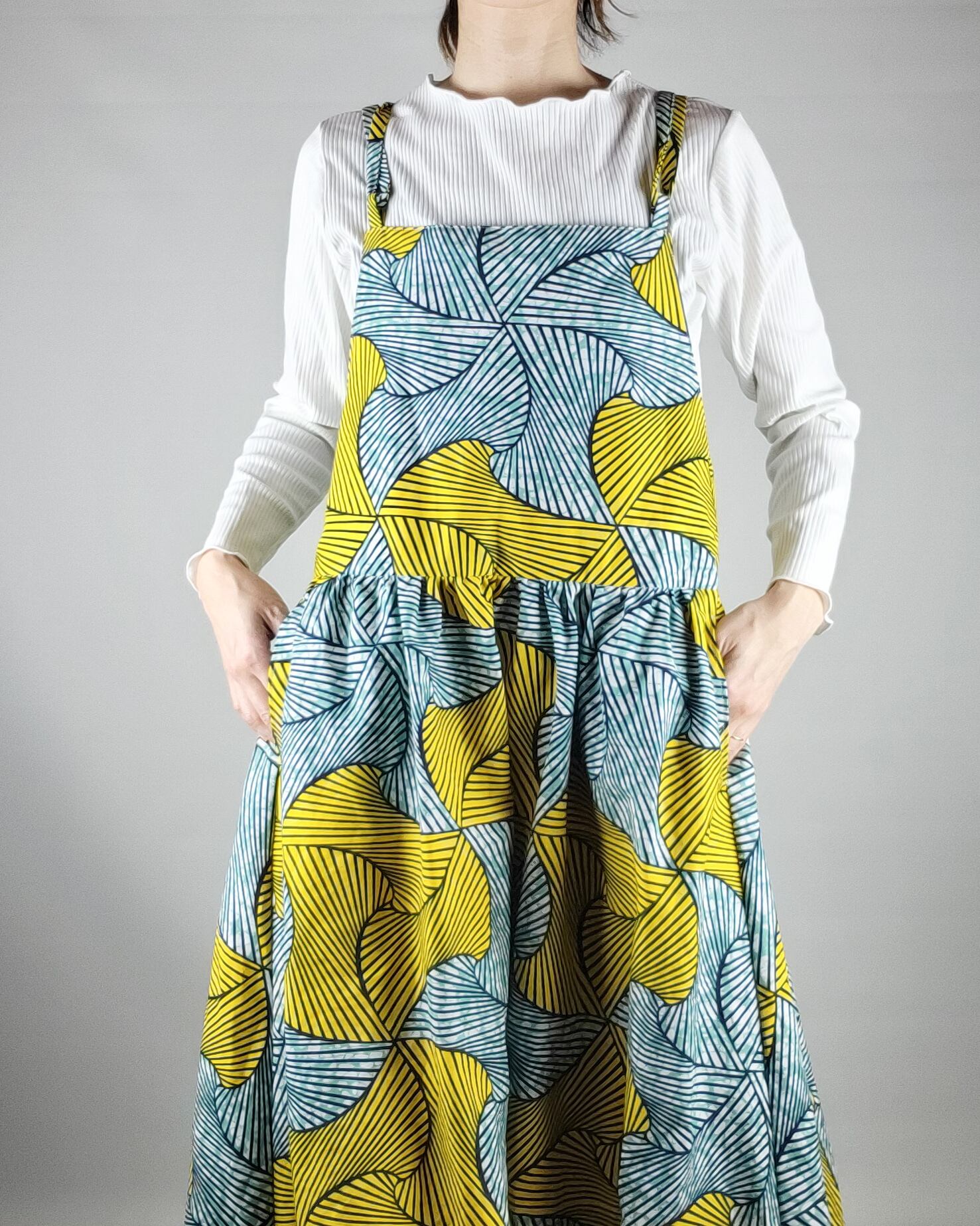 たっぷりギャザーのサロペットスカート sky blue yellow