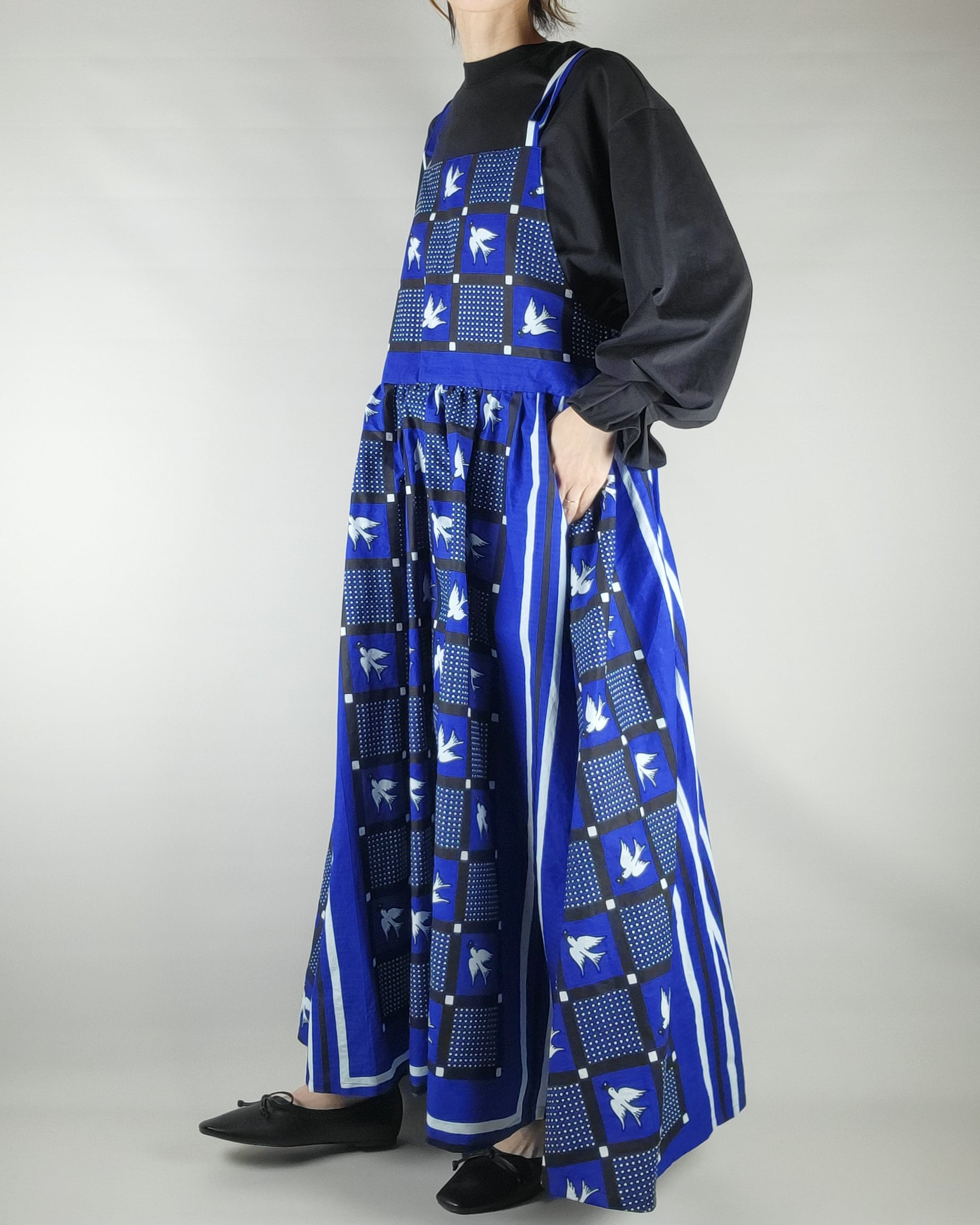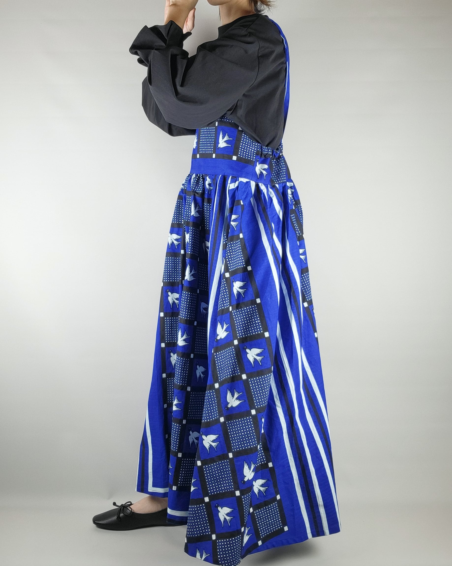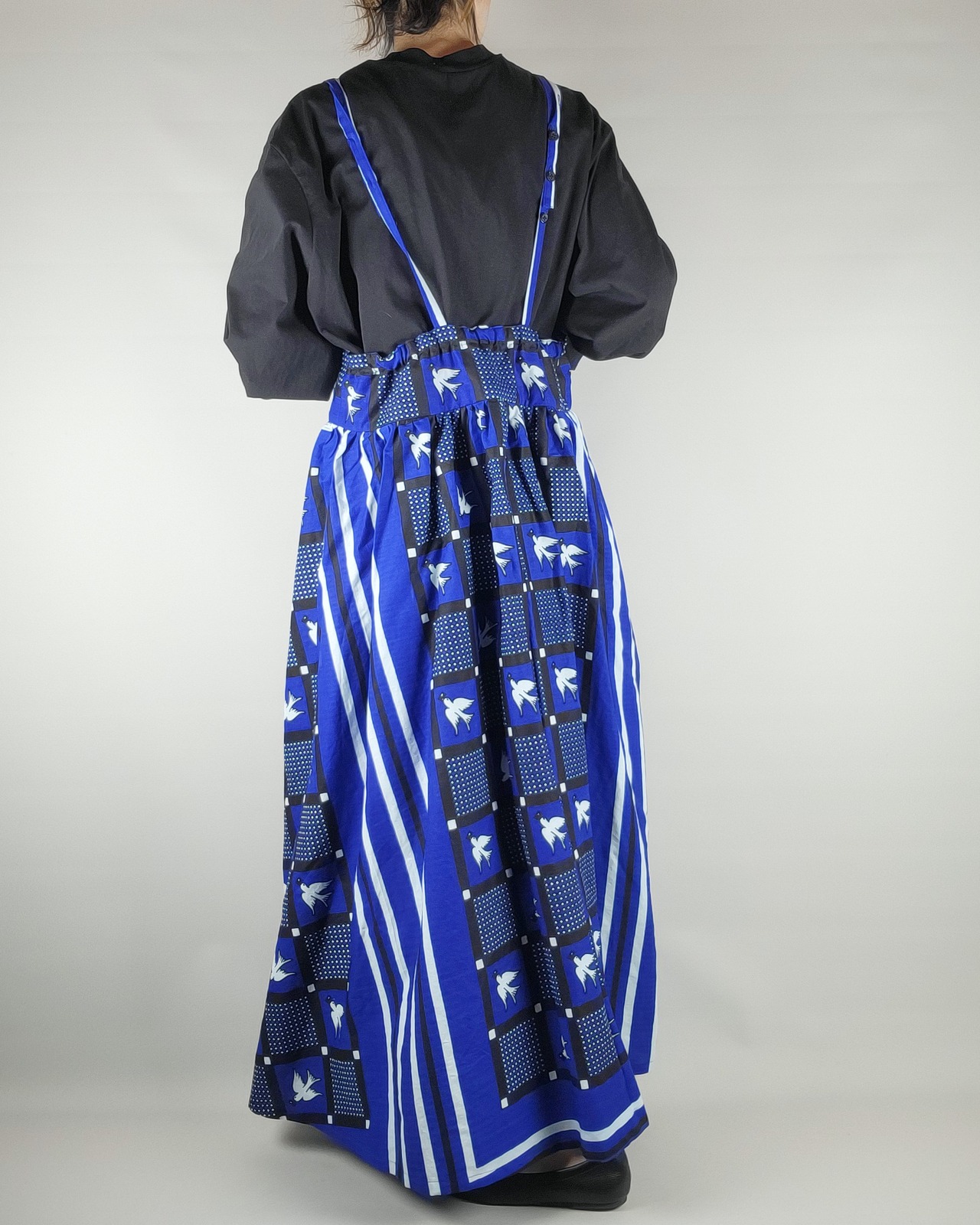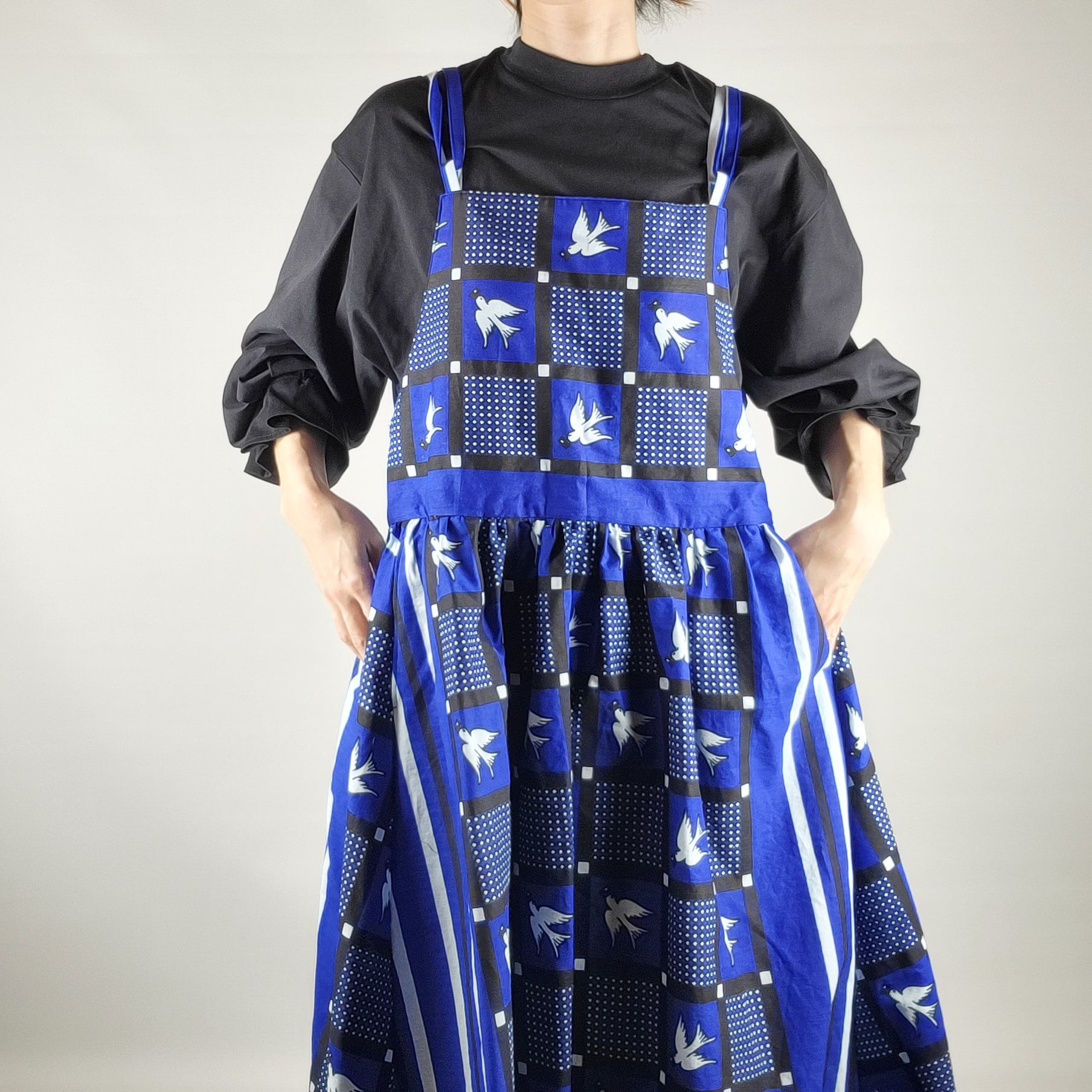 たっぷりギャザーのサロペットスカート blue bird