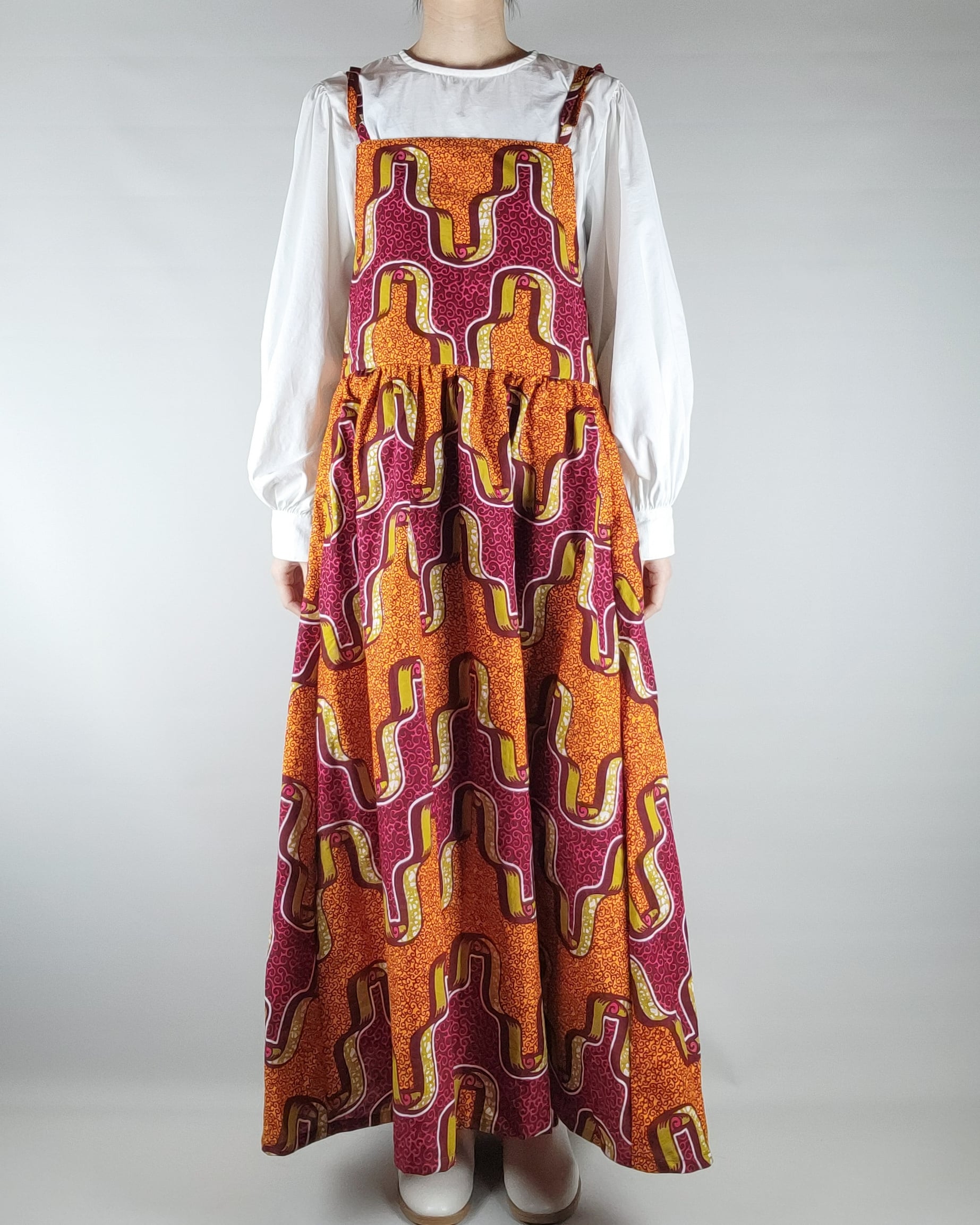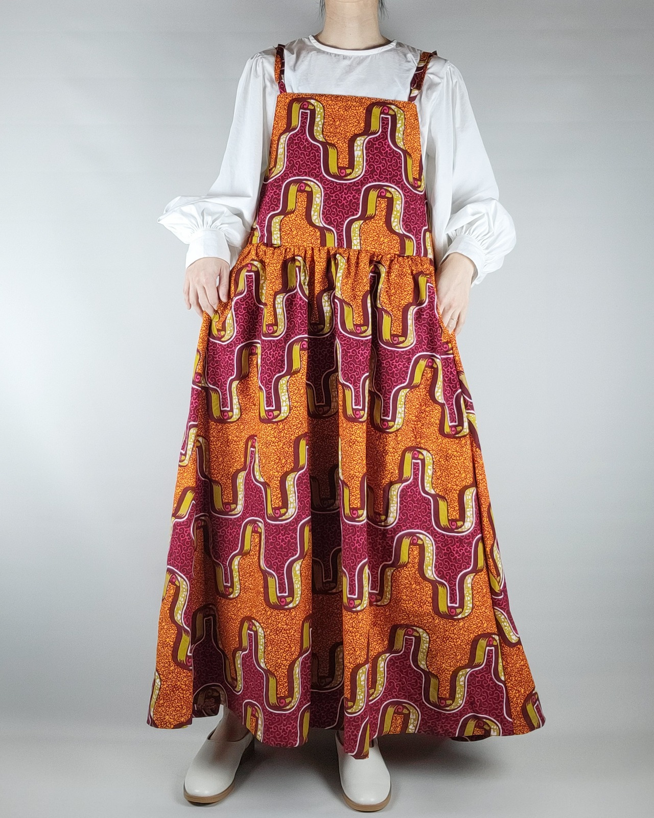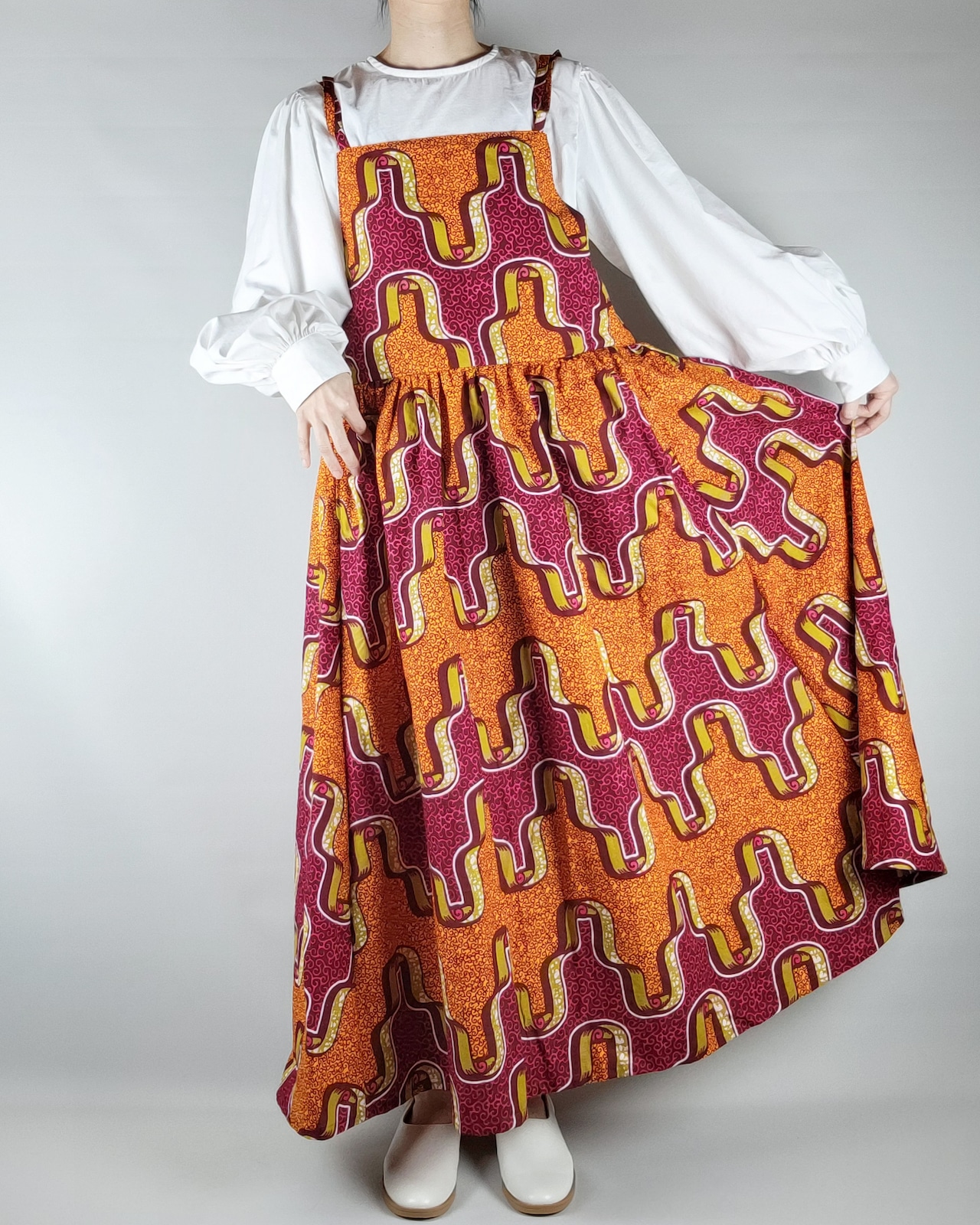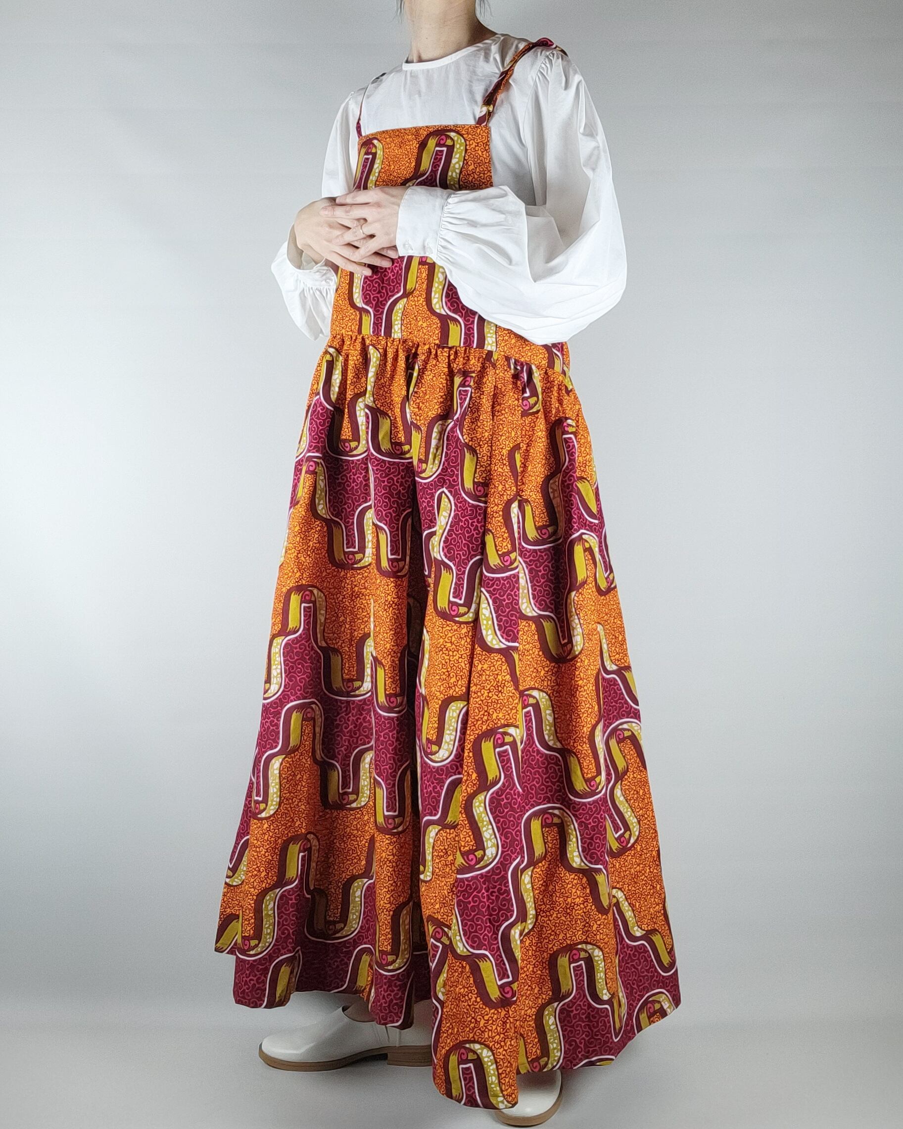 たっぷりギャザーのサロペットスカート orange red