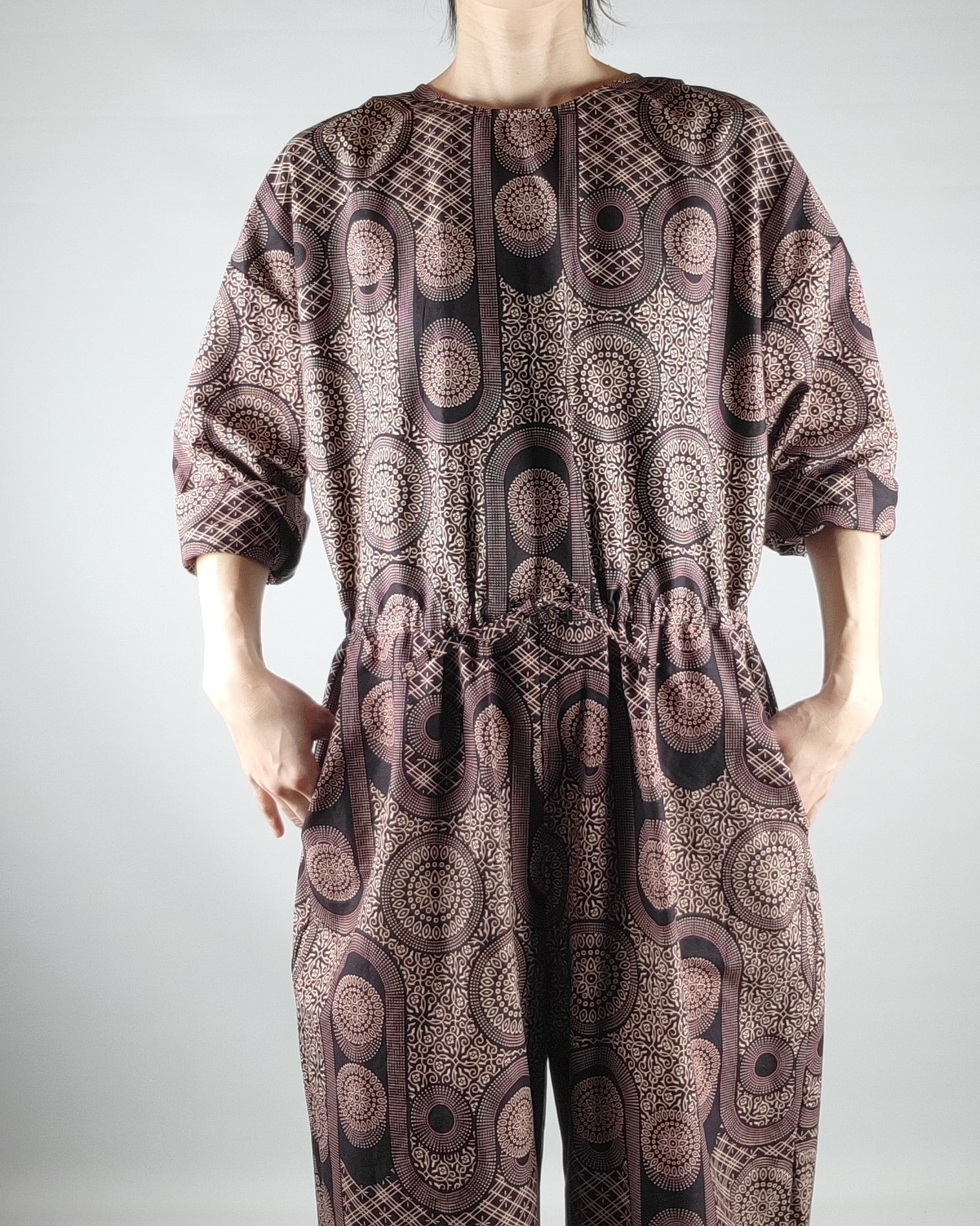 着心地にこだわったアフリカ布のオールインワンになります。