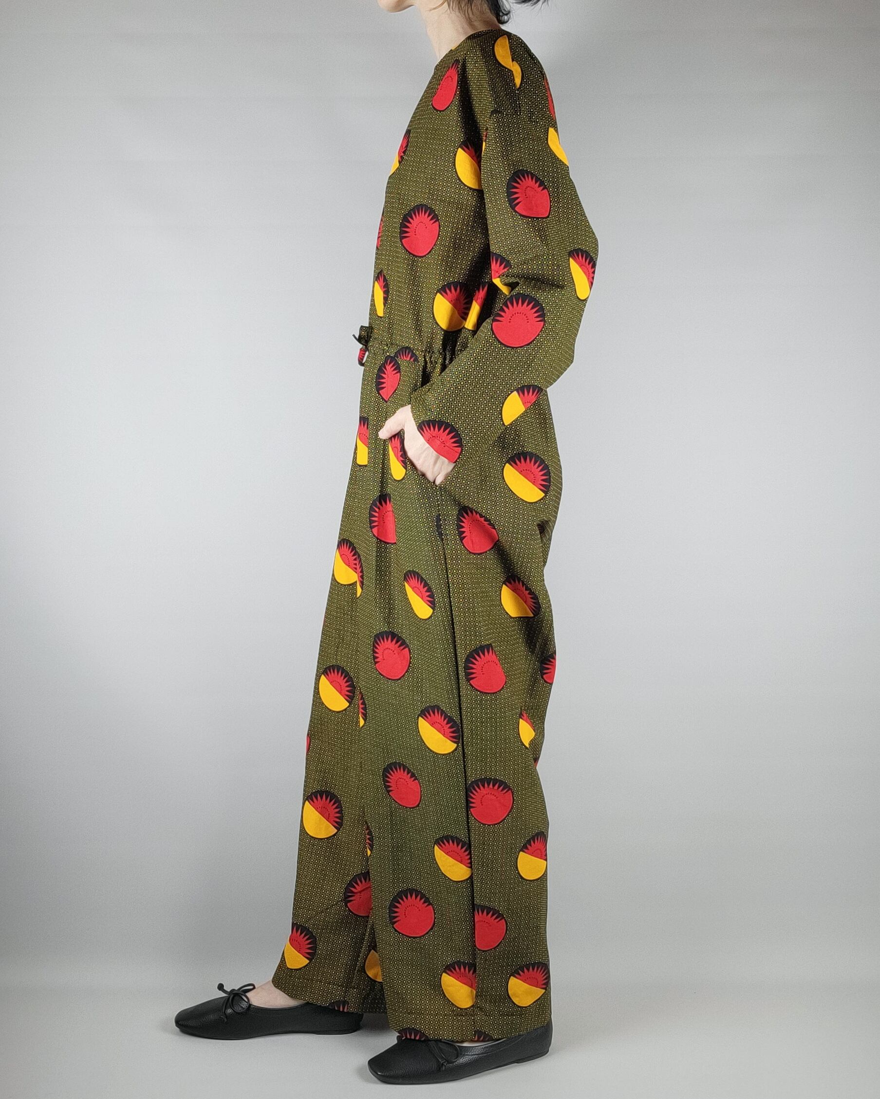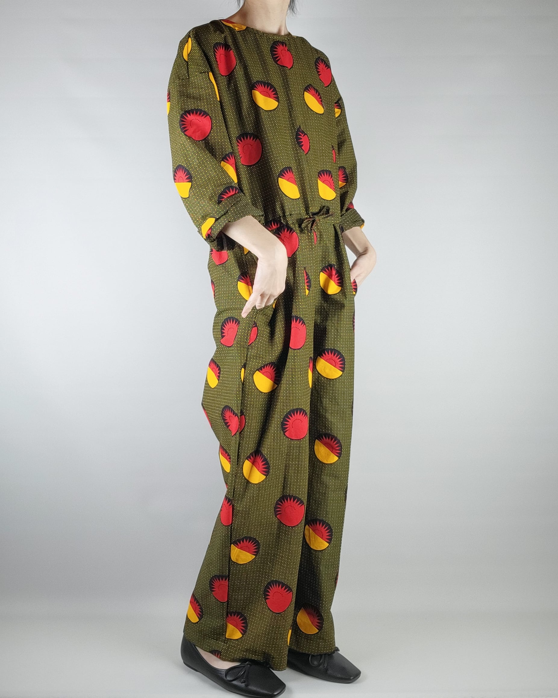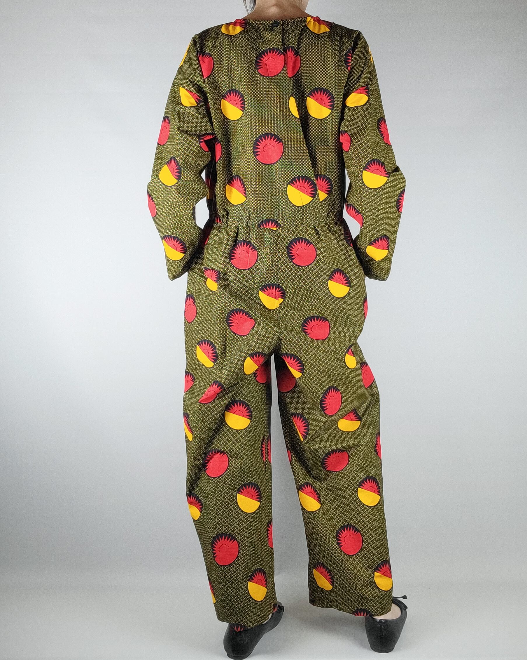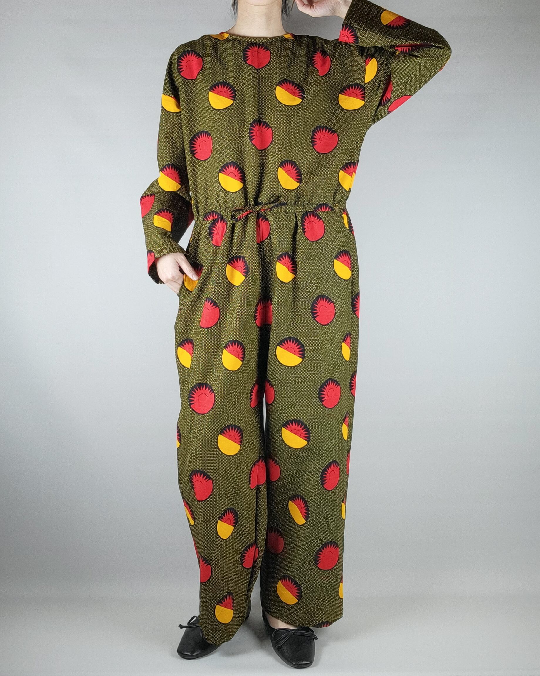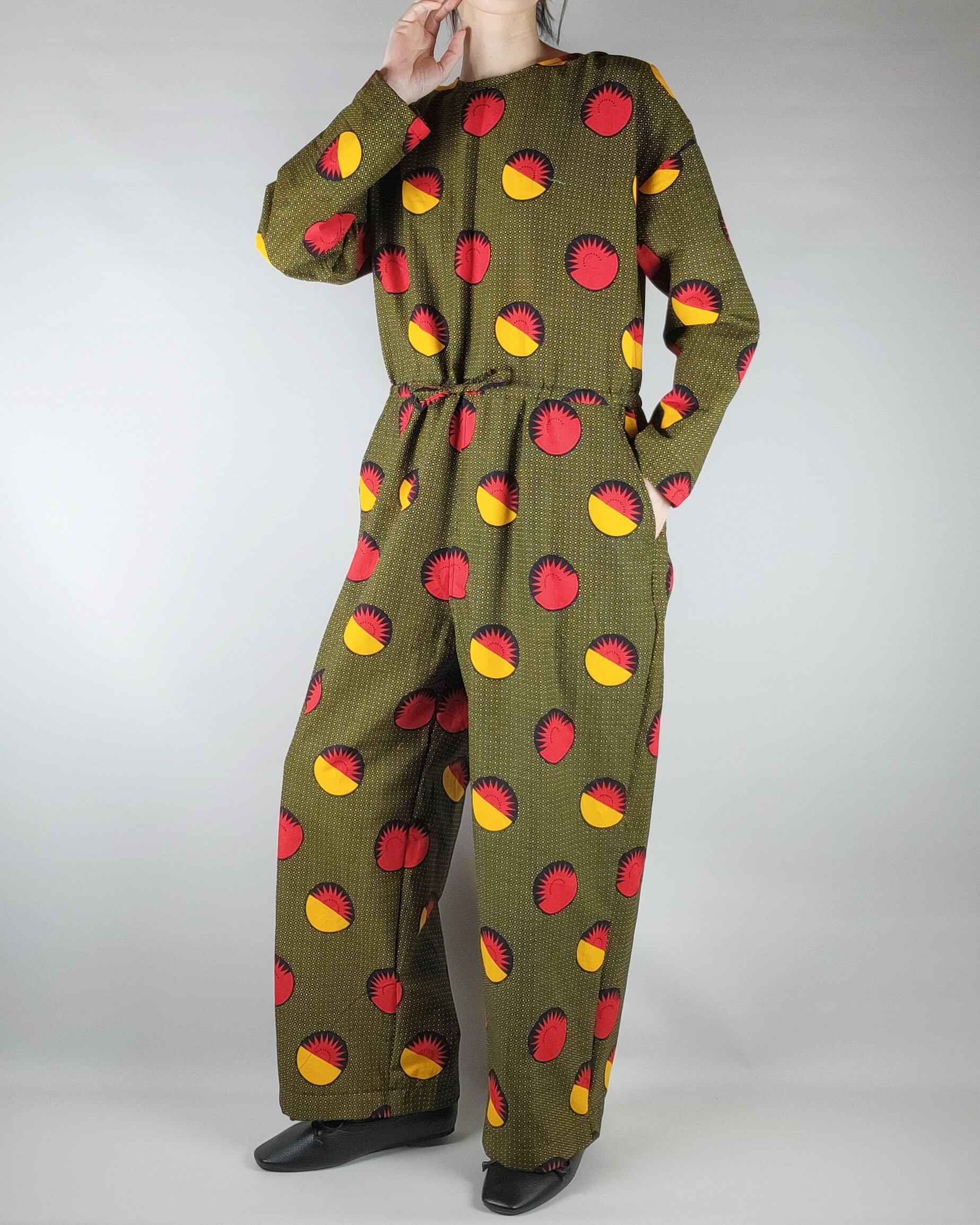 着心地にこだわったアフリカ布のオールインワンになります。