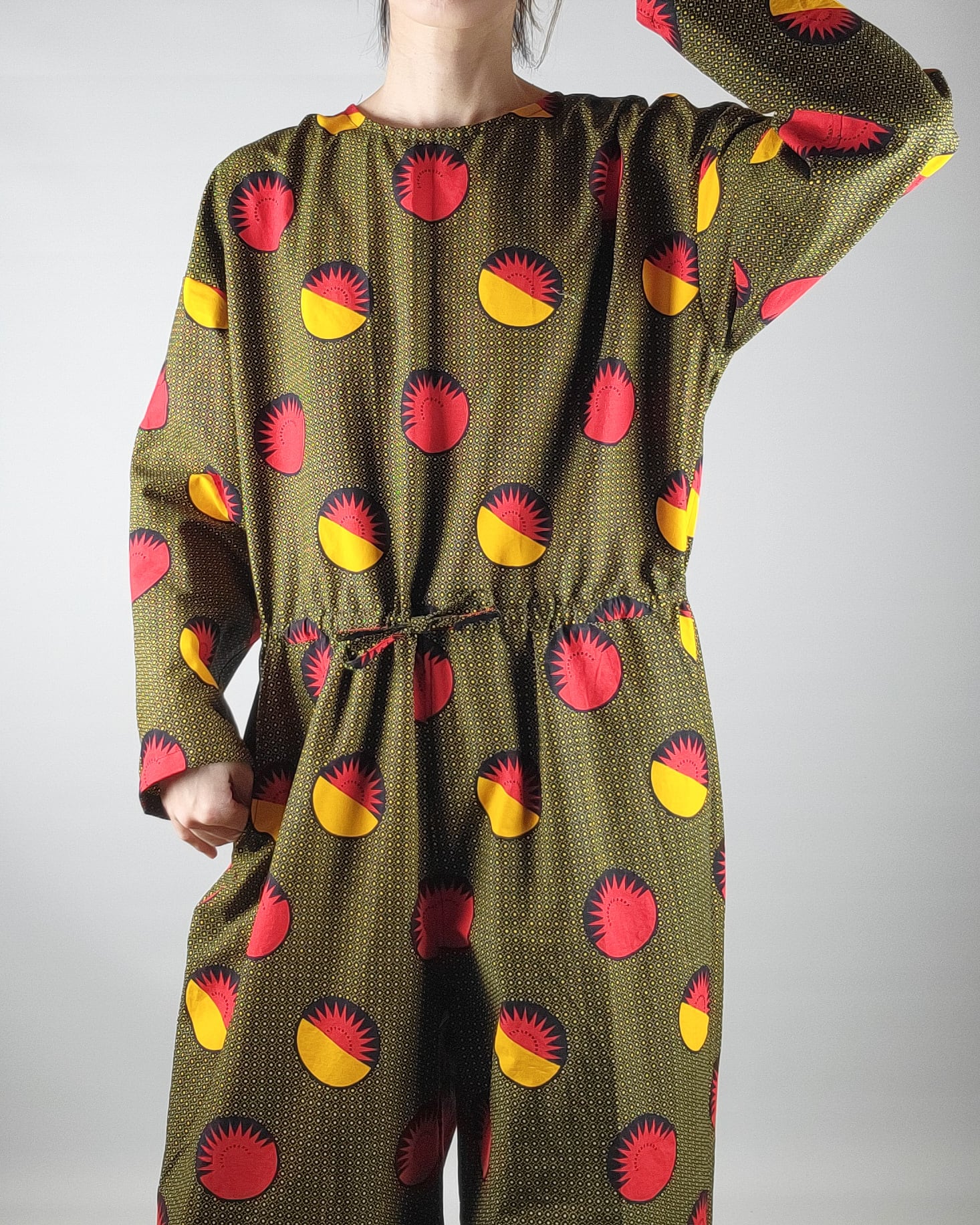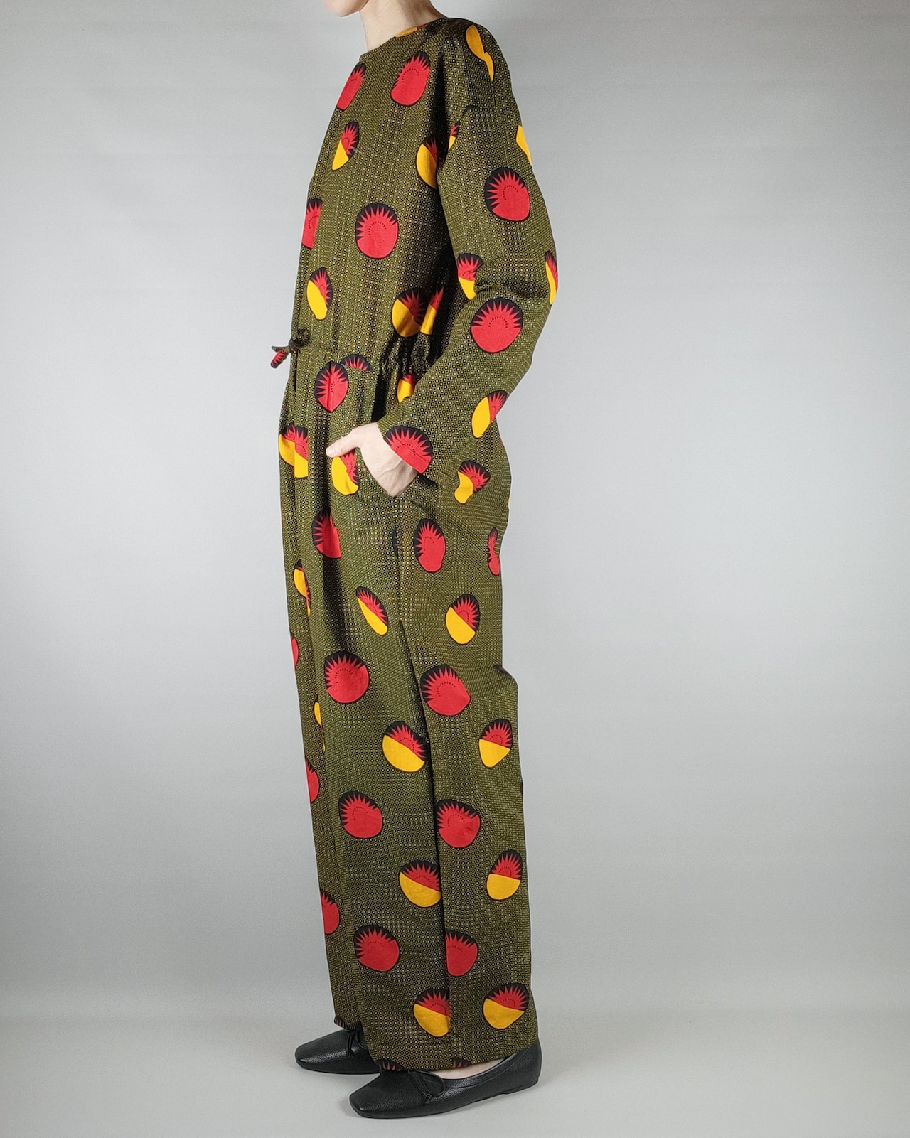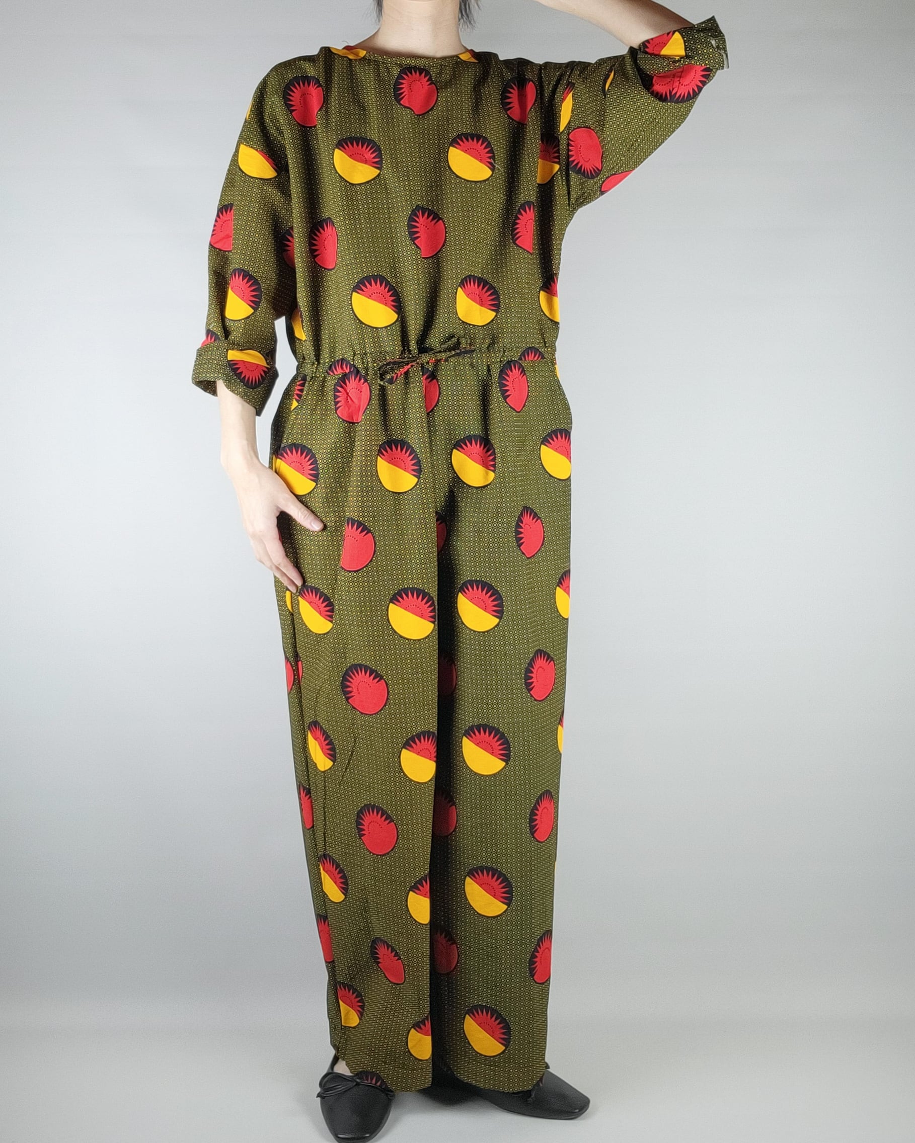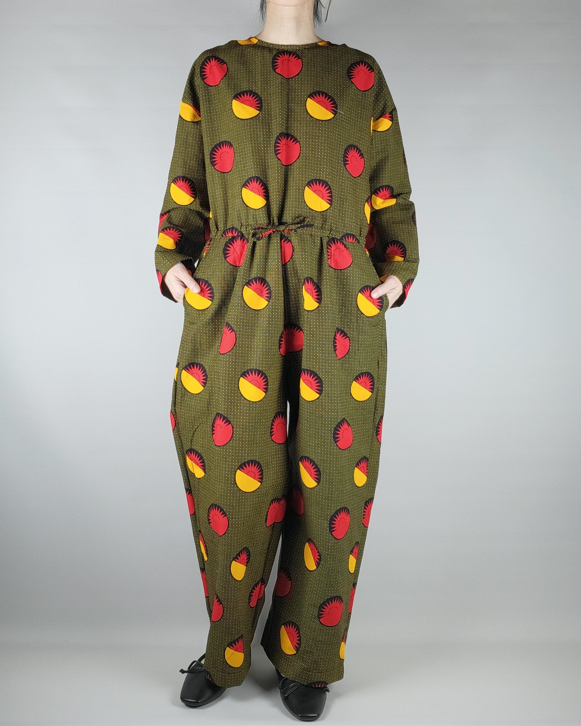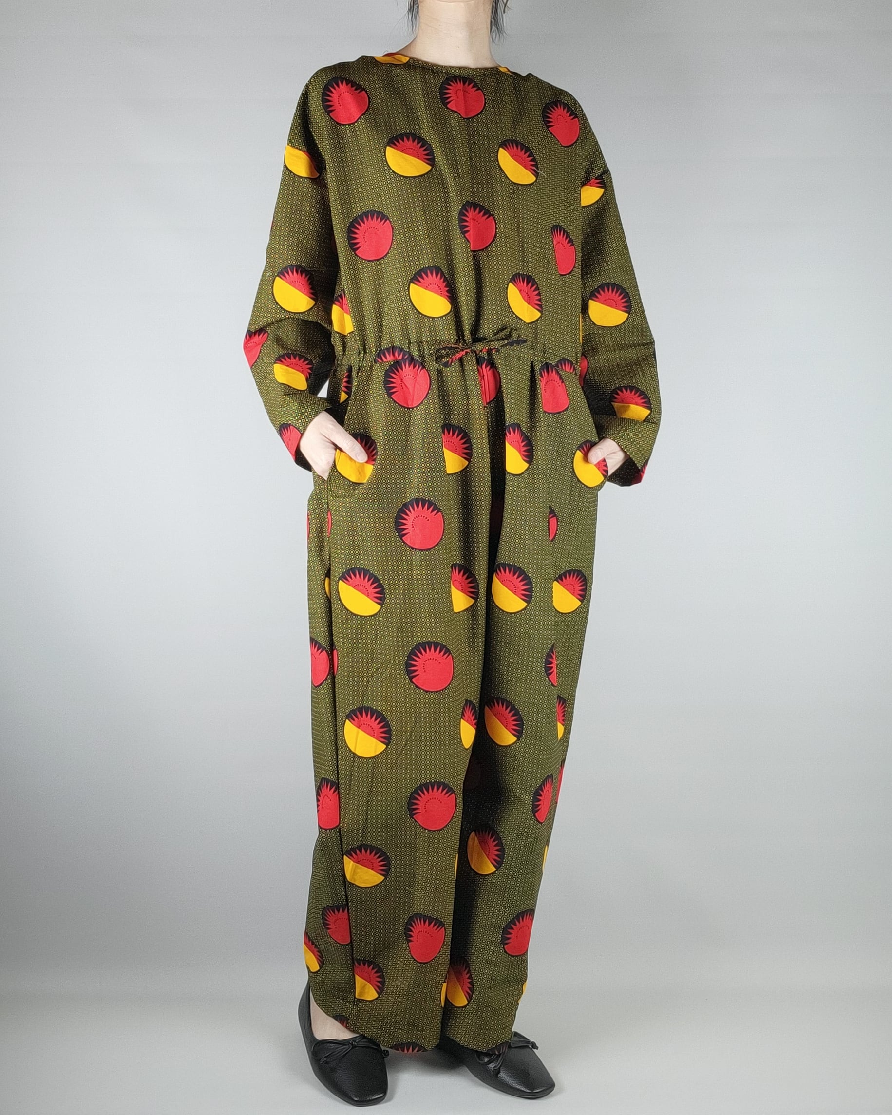 着心地にこだわったアフリカ布のオールインワンになります。