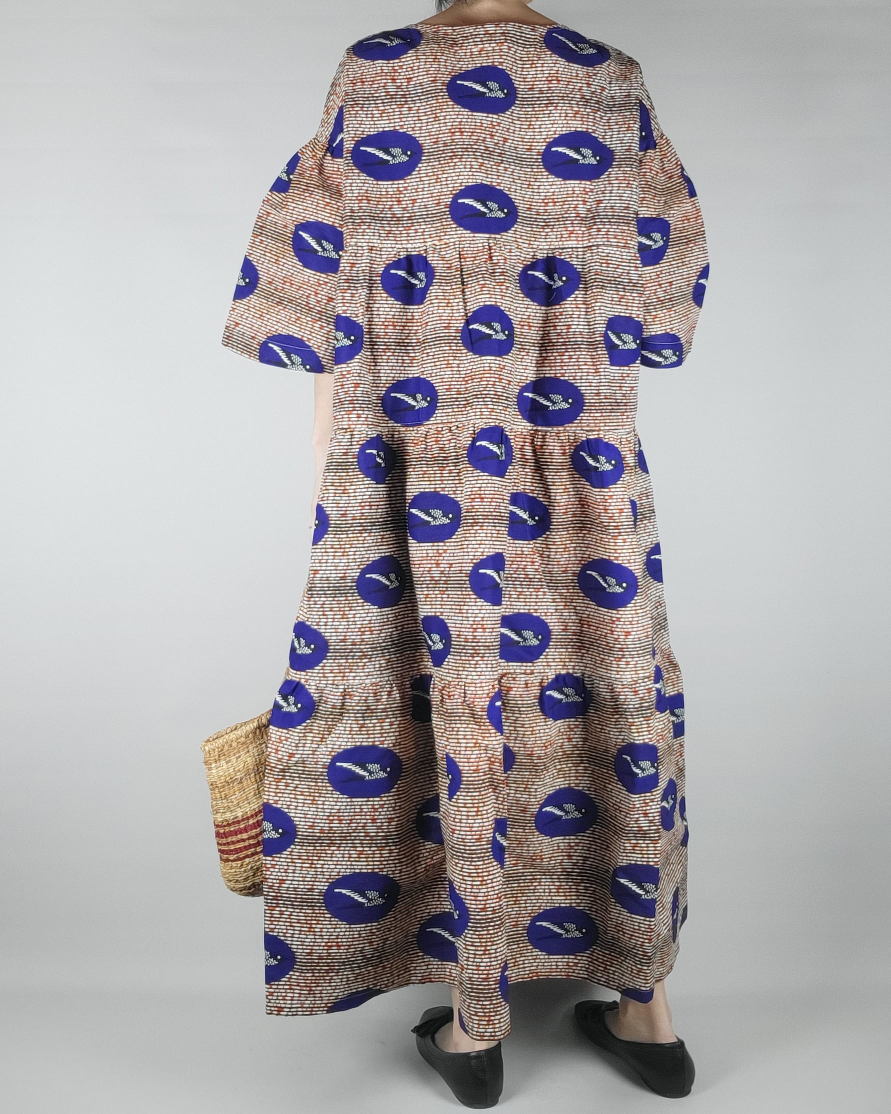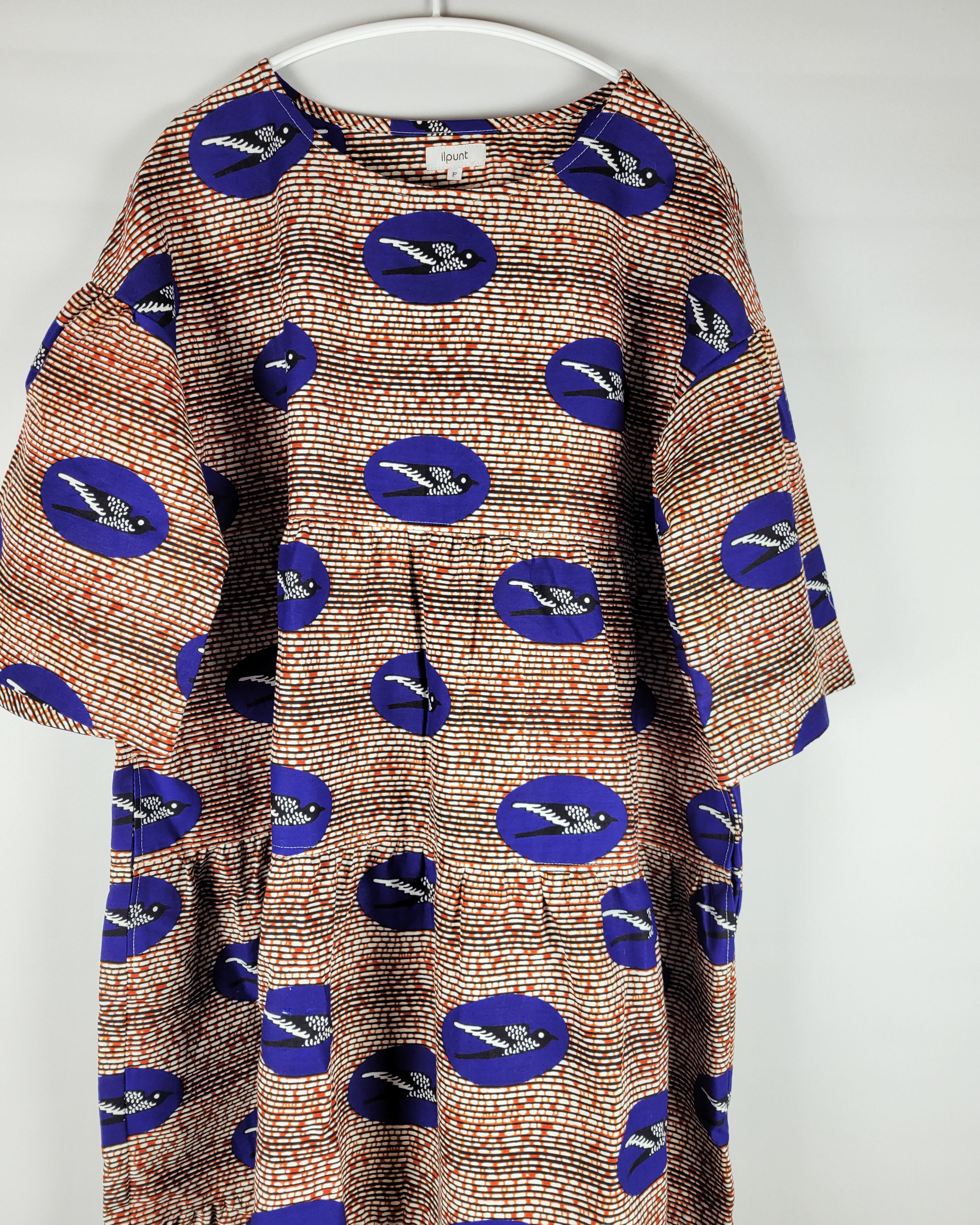 通常よりアフリカ布を贅沢に使ったオリジナルパターンのワンピースです。ゆったりとした着心地でフォーマルからデイリーまで幅広くアフリカ布の彩りをお楽しみ下さい。