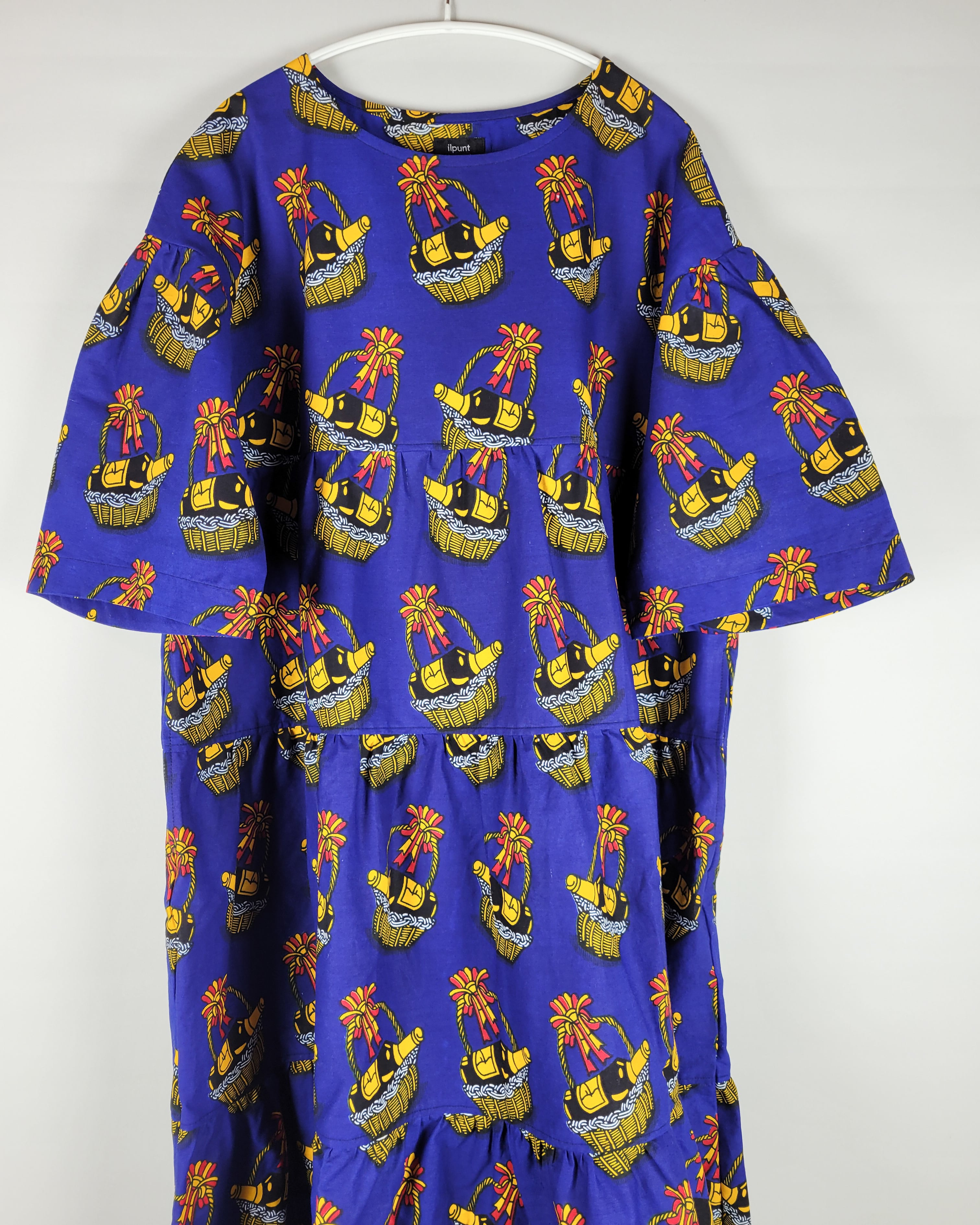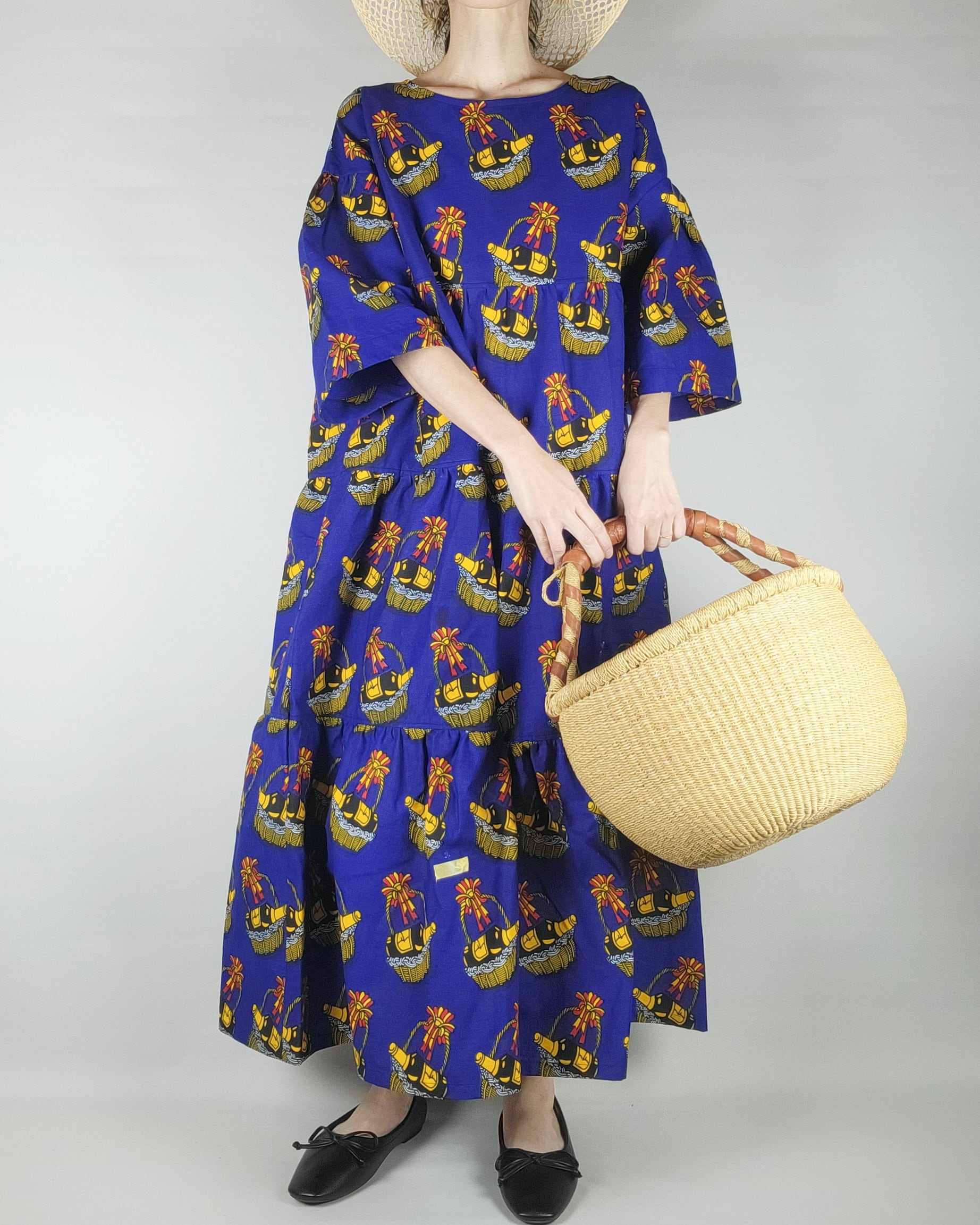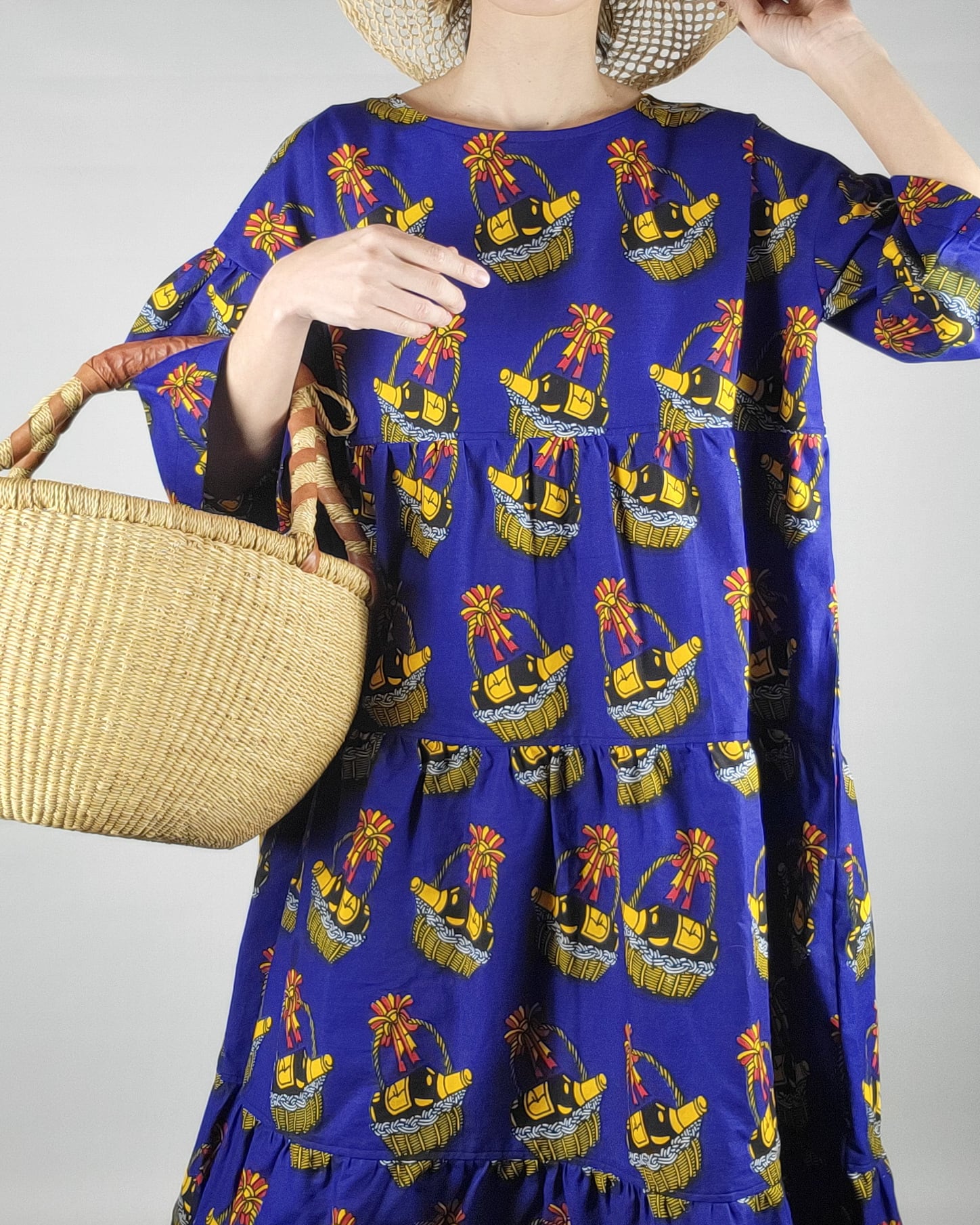 通常よりアフリカ布を贅沢に使ったオリジナルパターンのワンピースです。ゆったりとした着心地でフォーマルからデイリーまで幅広くアフリカ布の彩りをお楽しみ下さい。