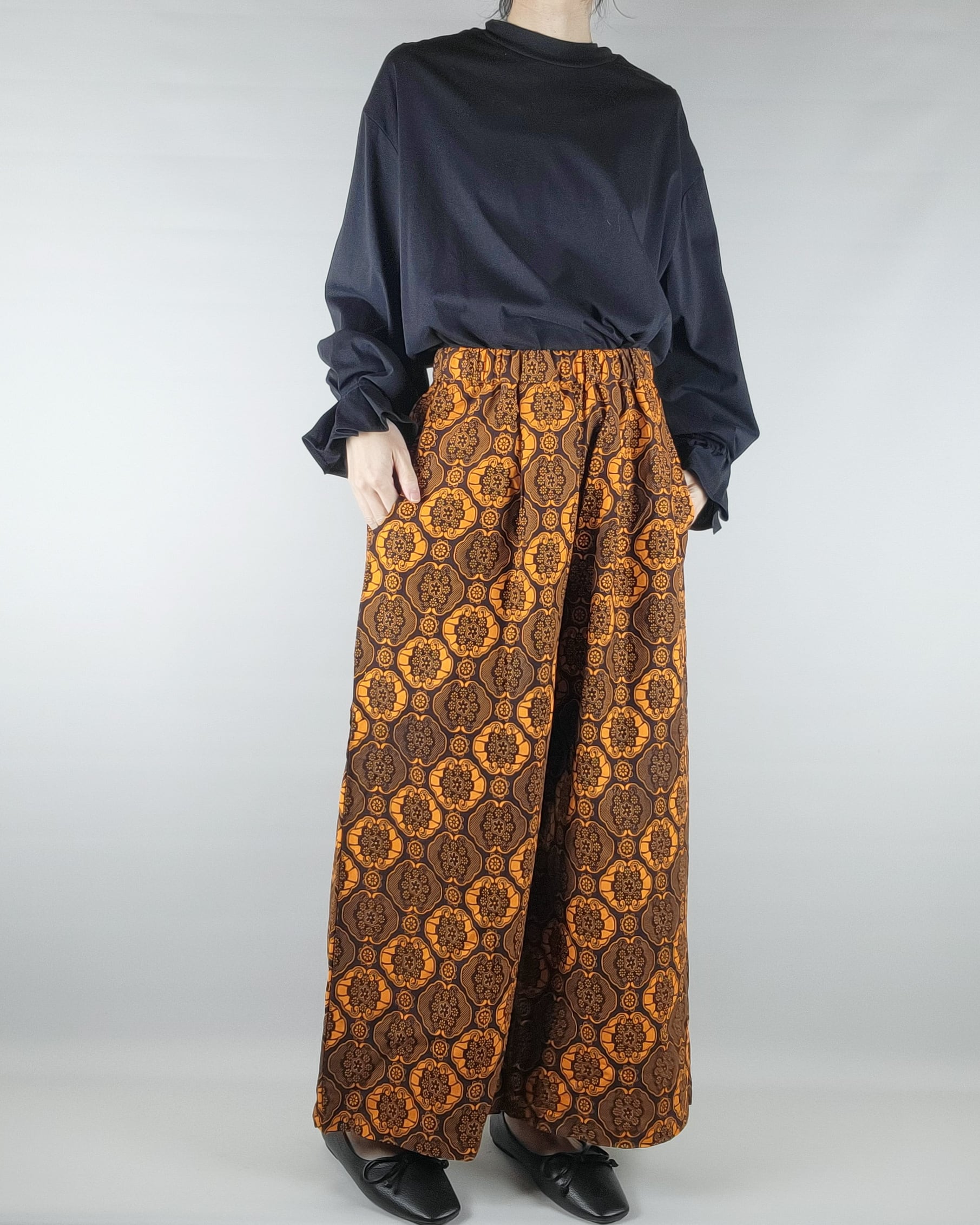 ゆったりワイドパンツ orange flower