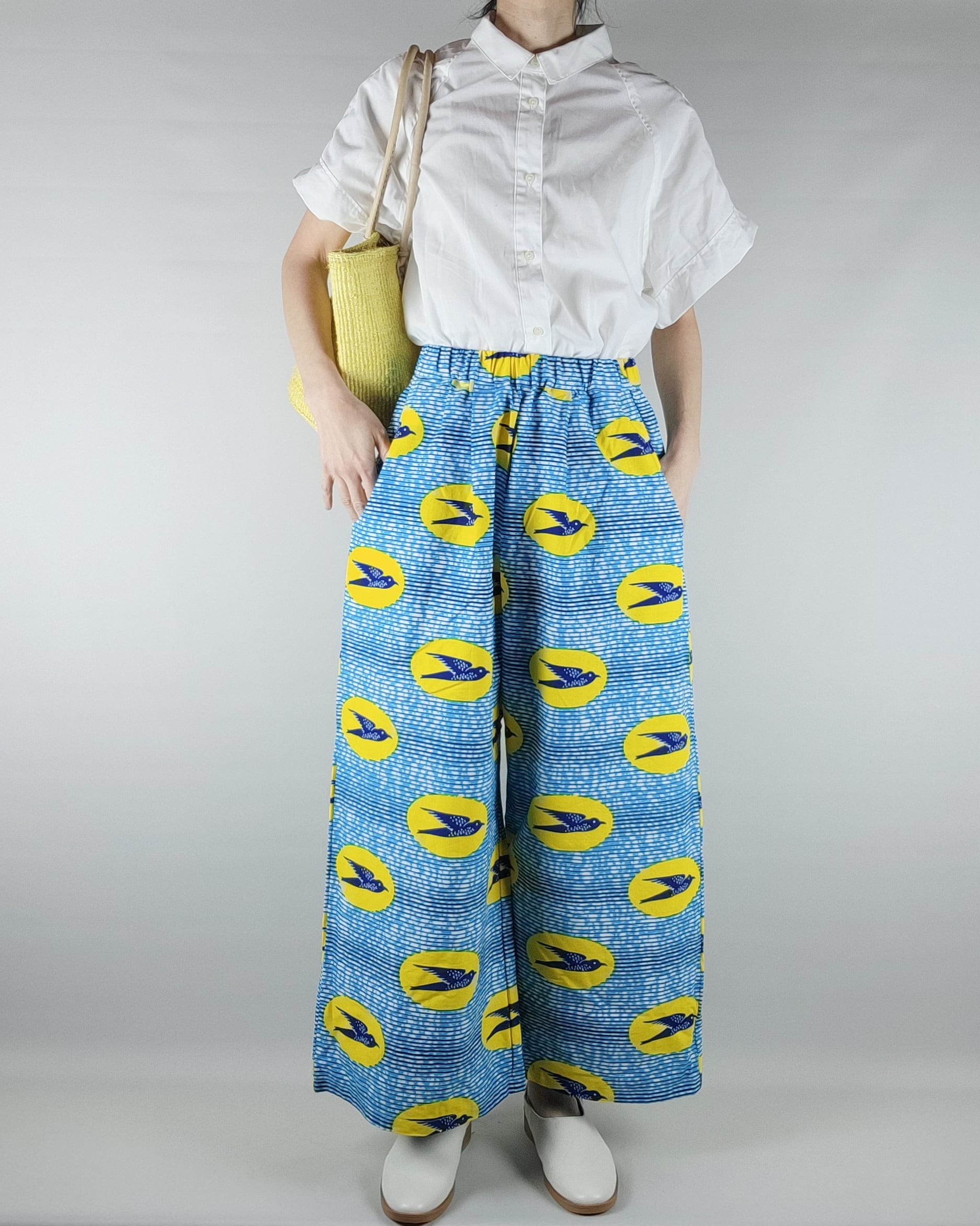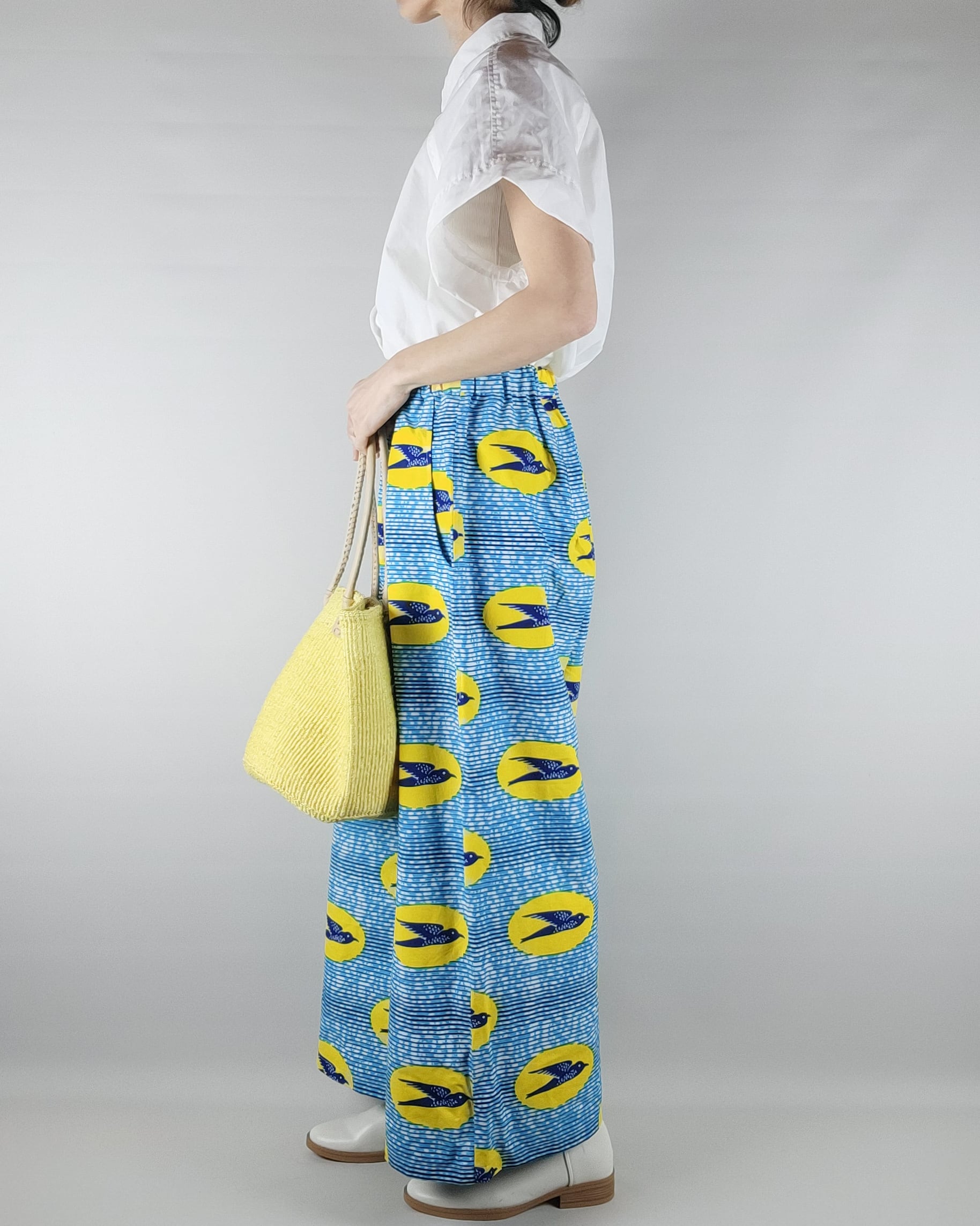 ヒップがスッキリとしている通常のワイドパンツよりヒップまわりがゆったりとしておりますので、お出かけや日常着にはもちろん、動きやすさを求めるお仕事着にもオススメです。
