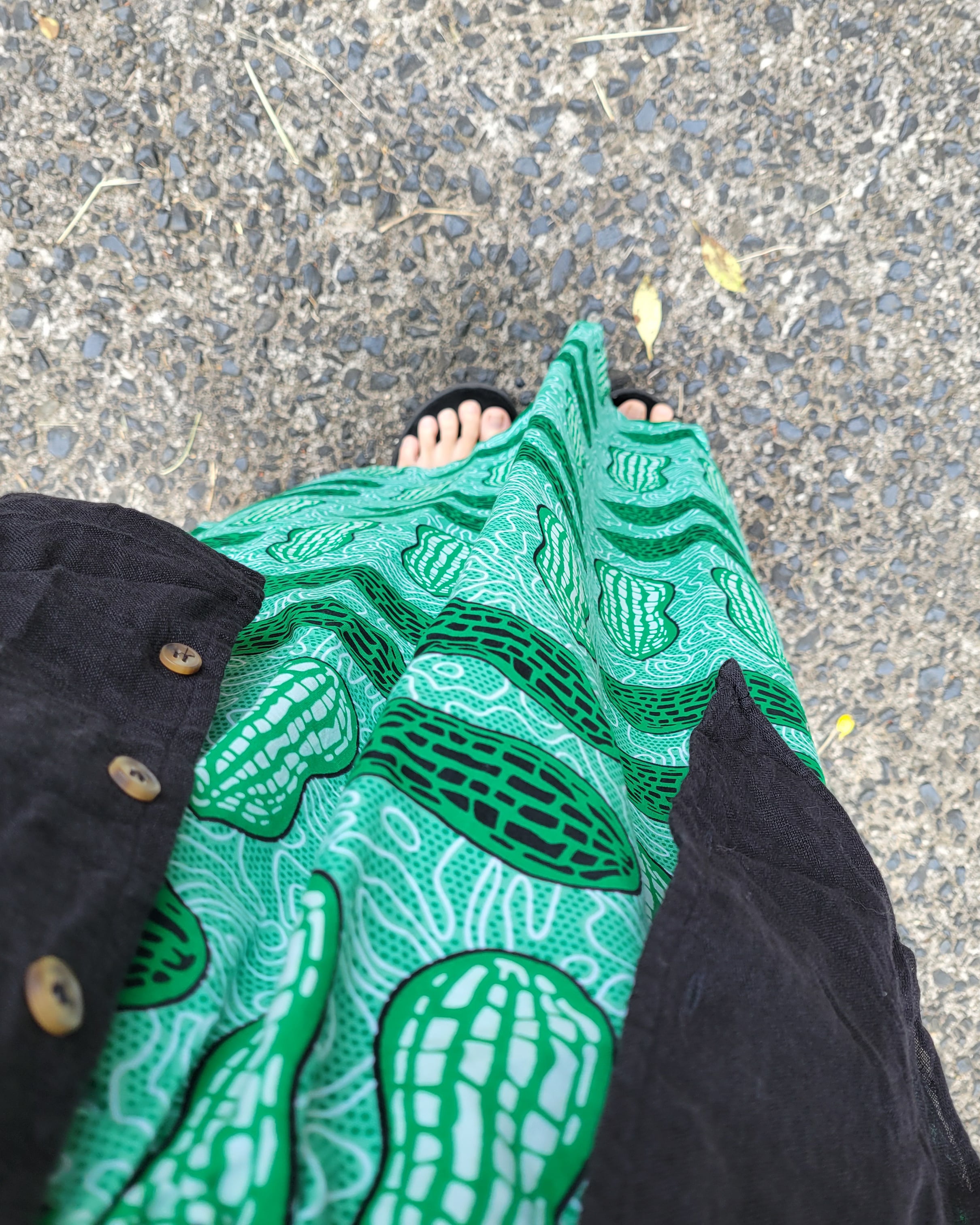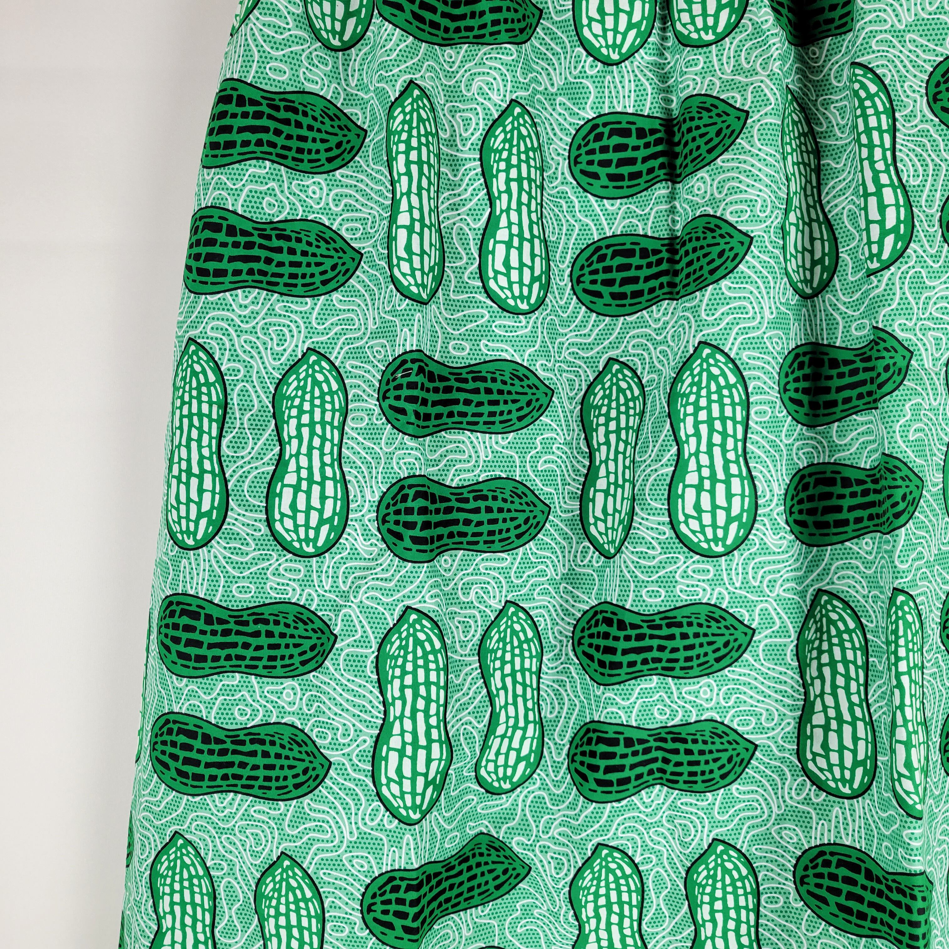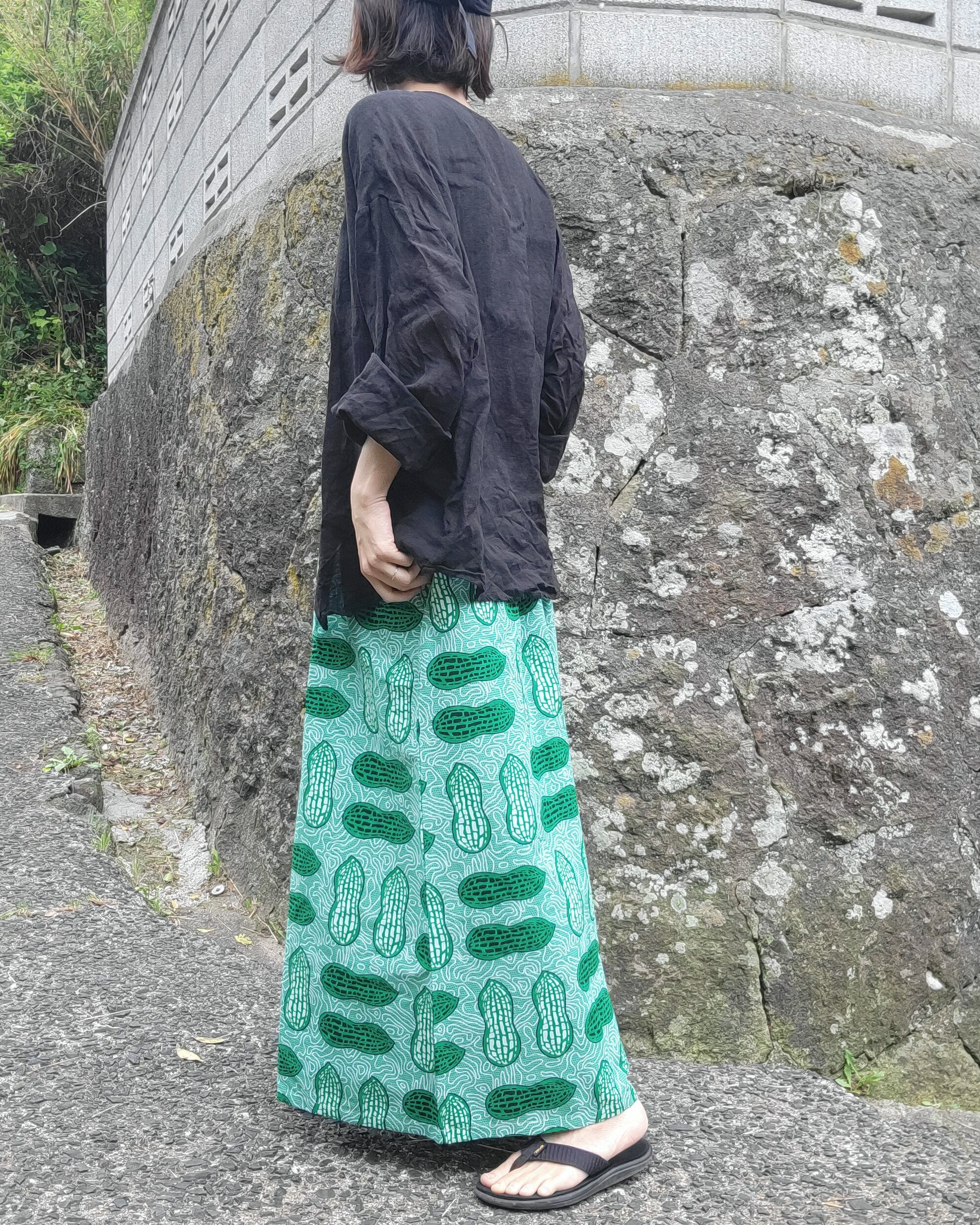 アフリカ布のギャザースカートになります。ギャザースカートですがボリュームを控え、コーディネートしやすいシルエットにしました。