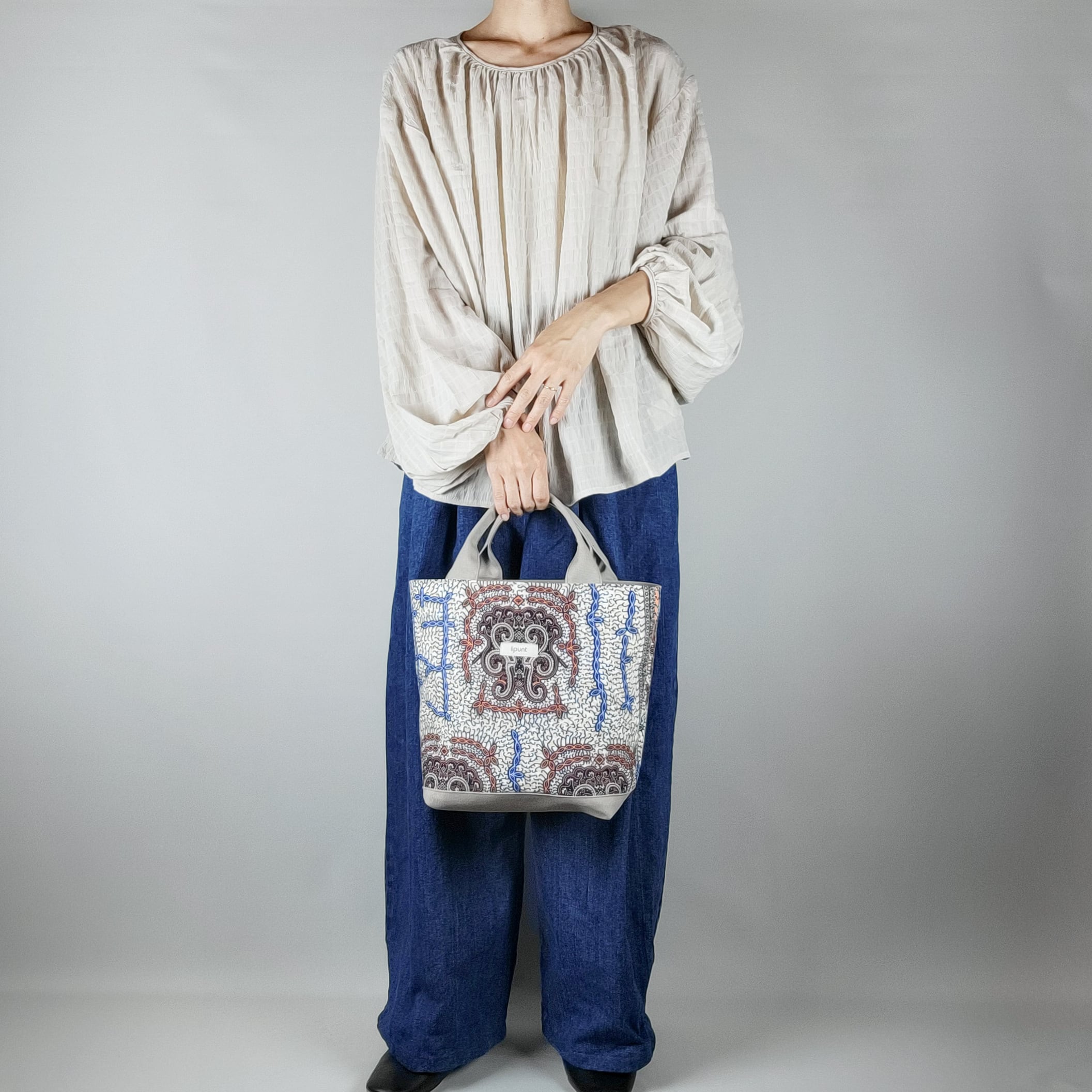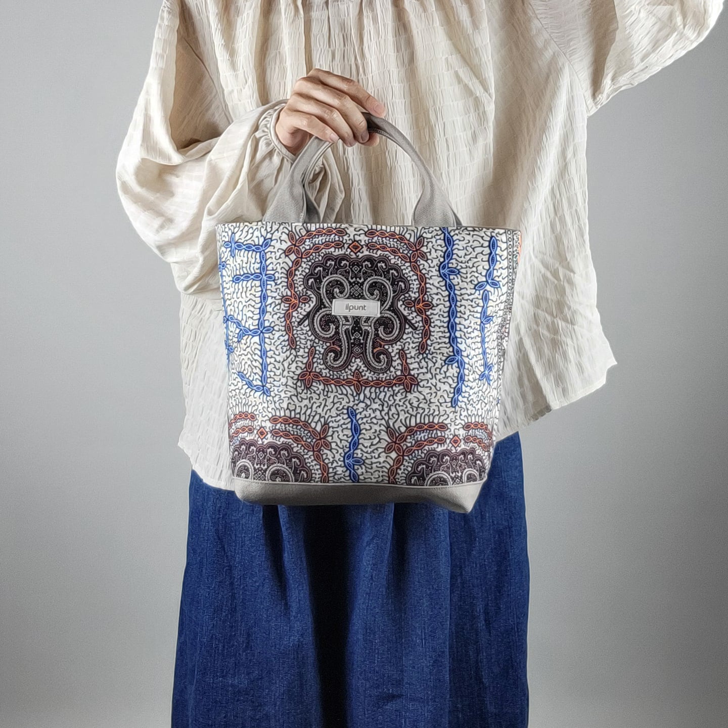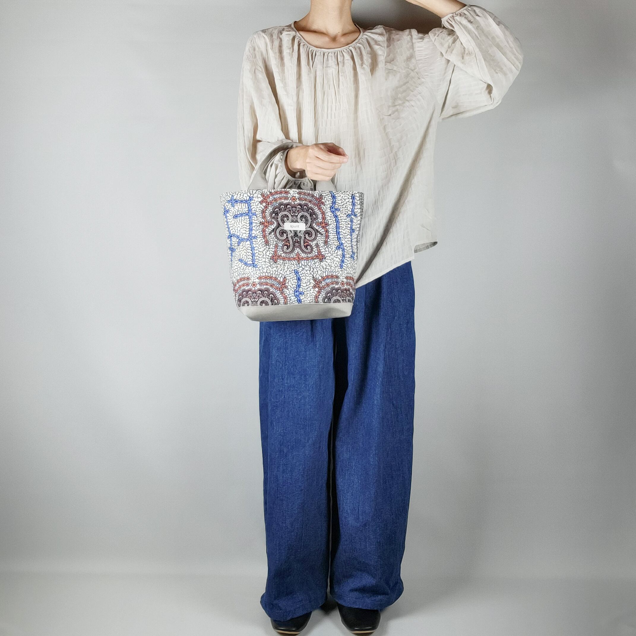 コーディネートしやすい柄をセレクトし、仕立てたハンドバッグです。