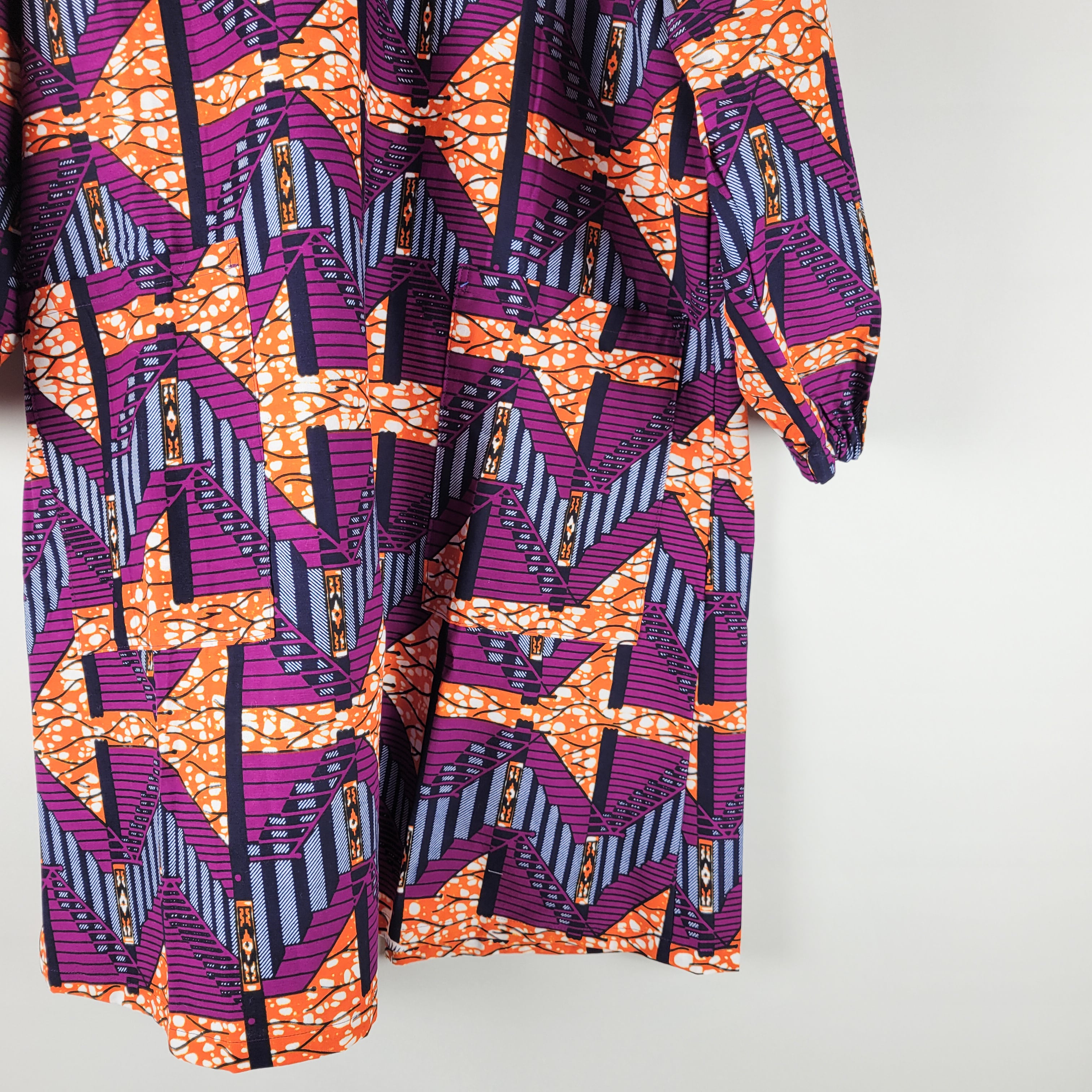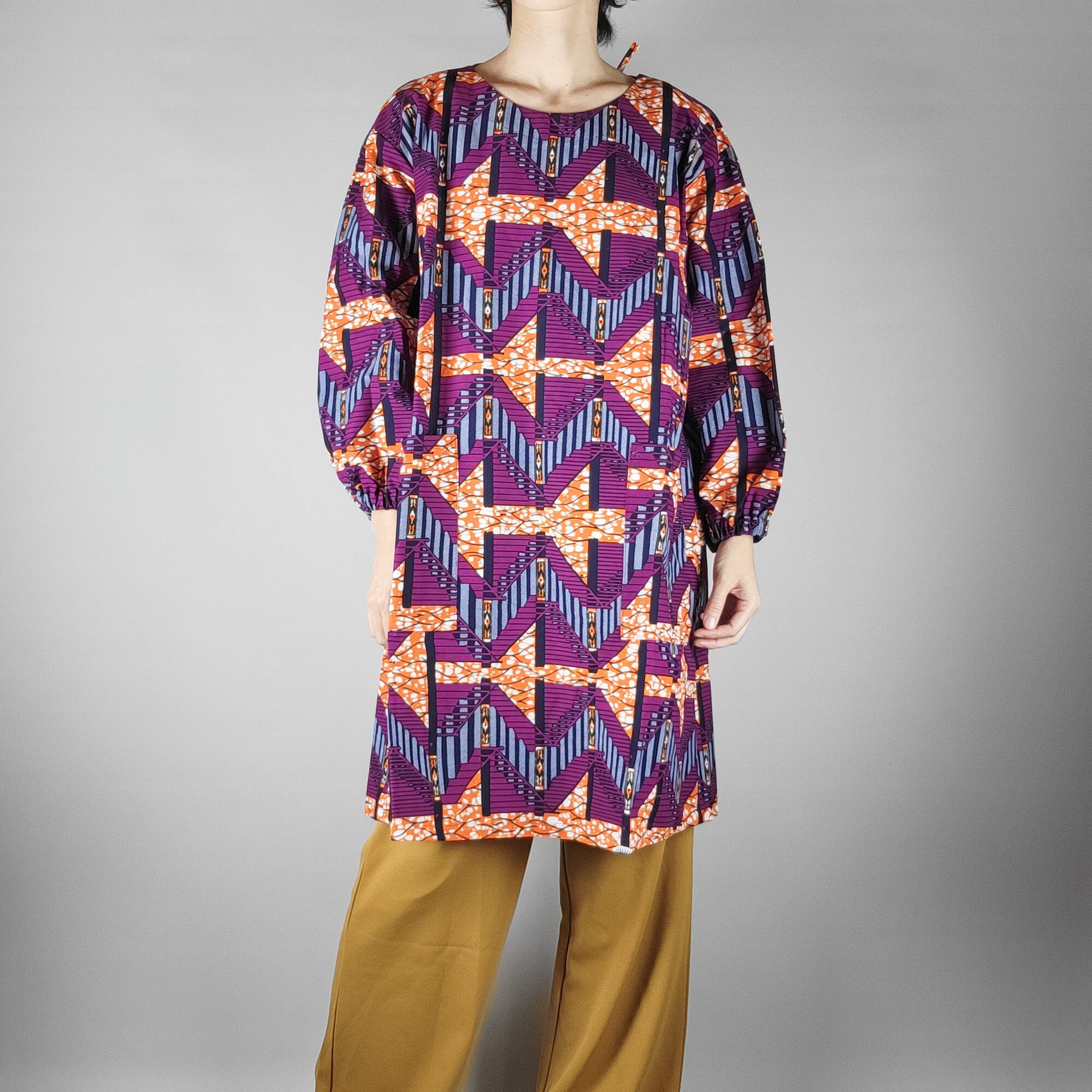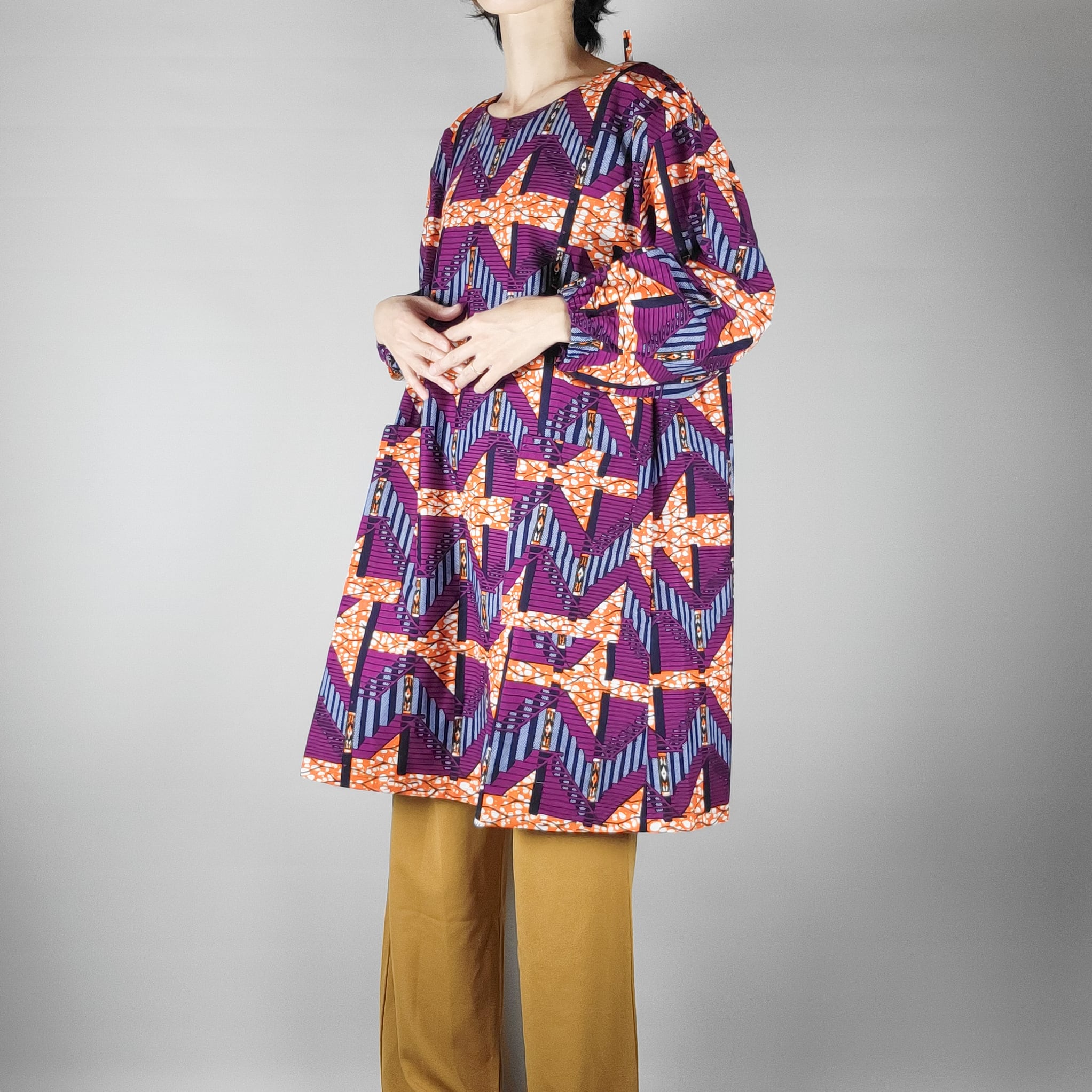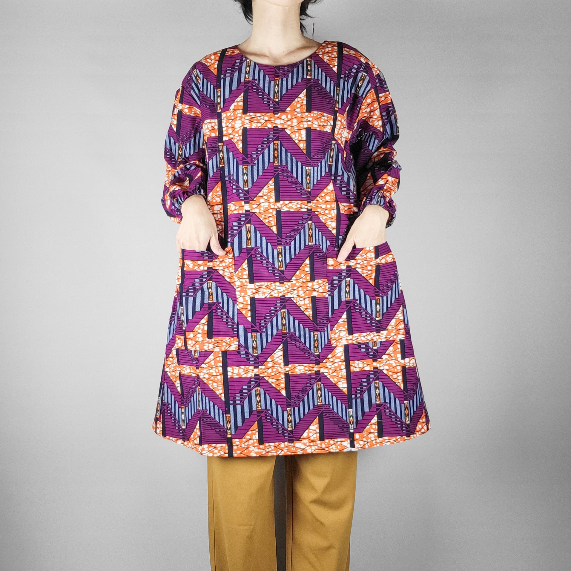 アフリカ布でお仕立てした割烹着になります。日常のホームワークを楽しくして頂けるような柄達をセレクトしています。