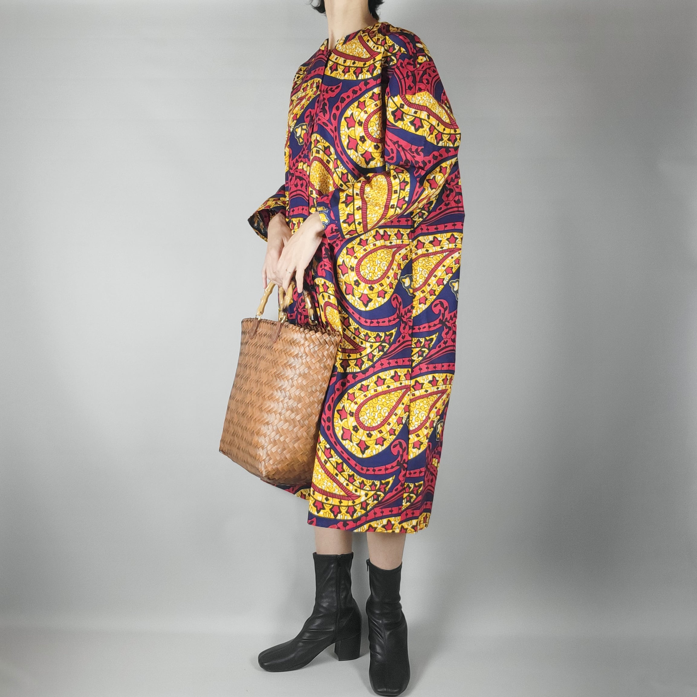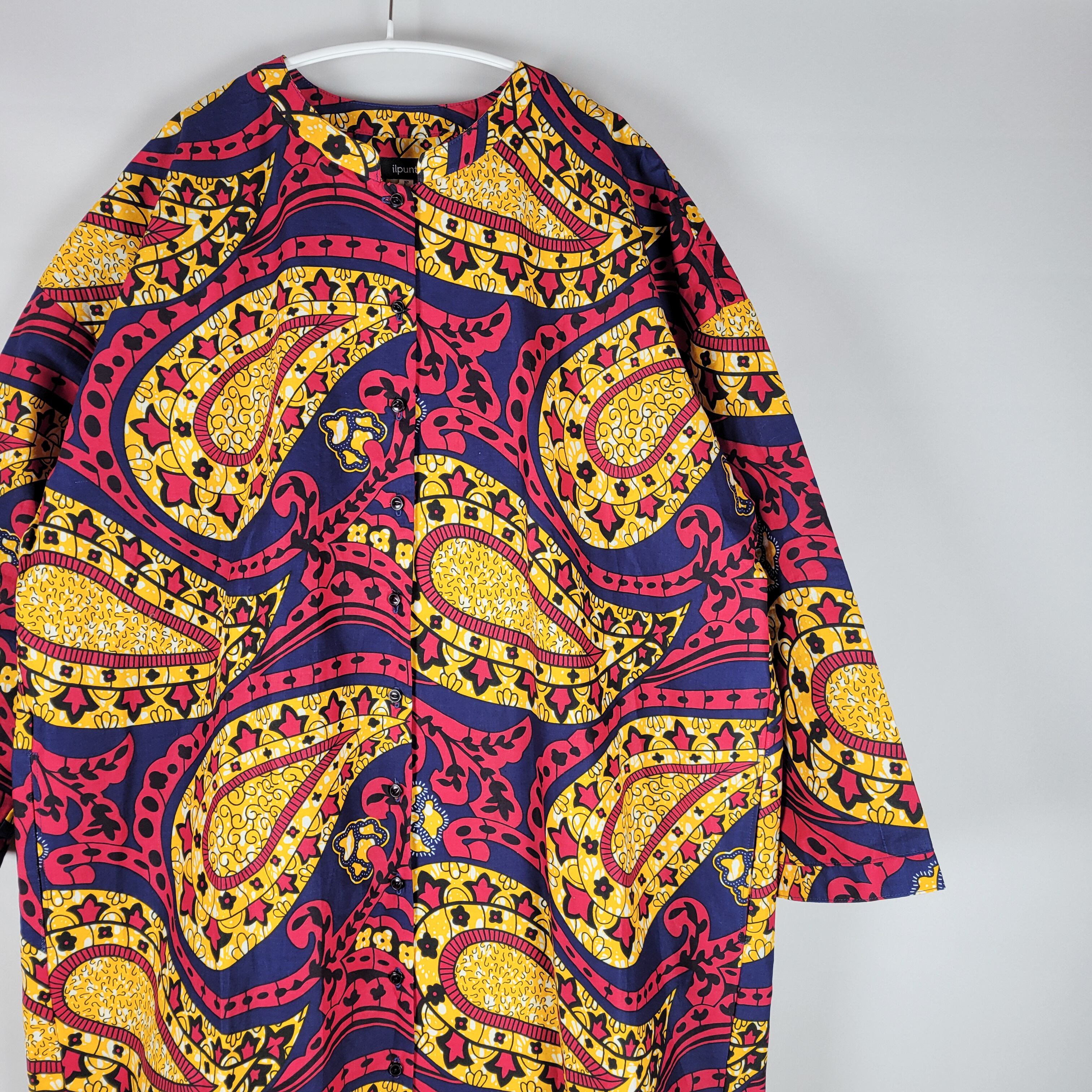 アフリカ布で仕立てたフロントオープンのワンピースになります。