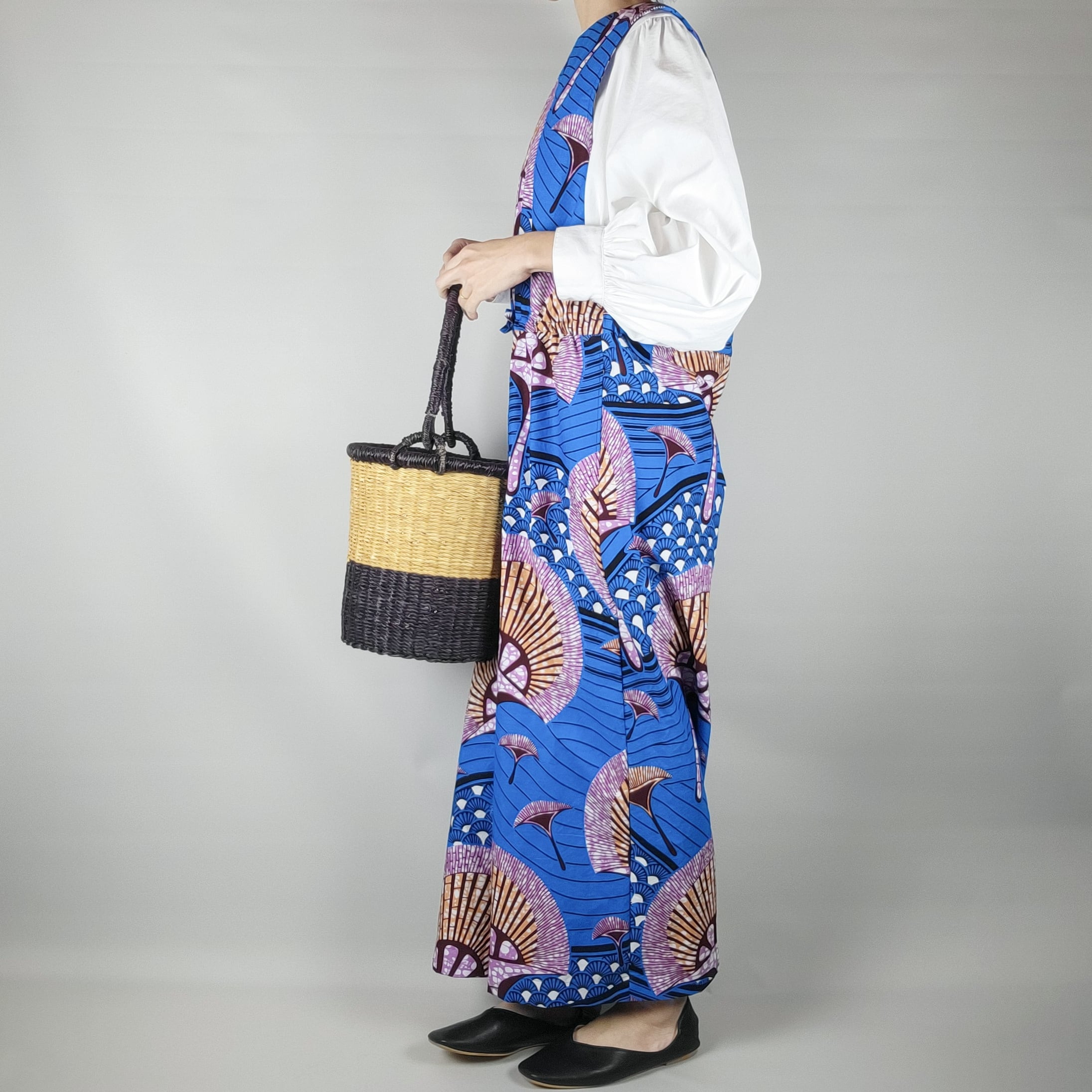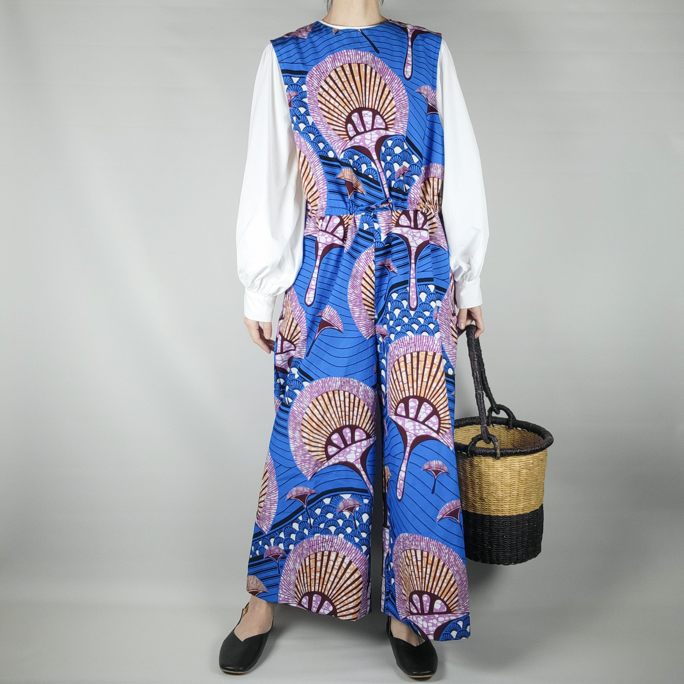 着心地にこだわったアフリカ布のクルーネックのサロペットパンツになります。